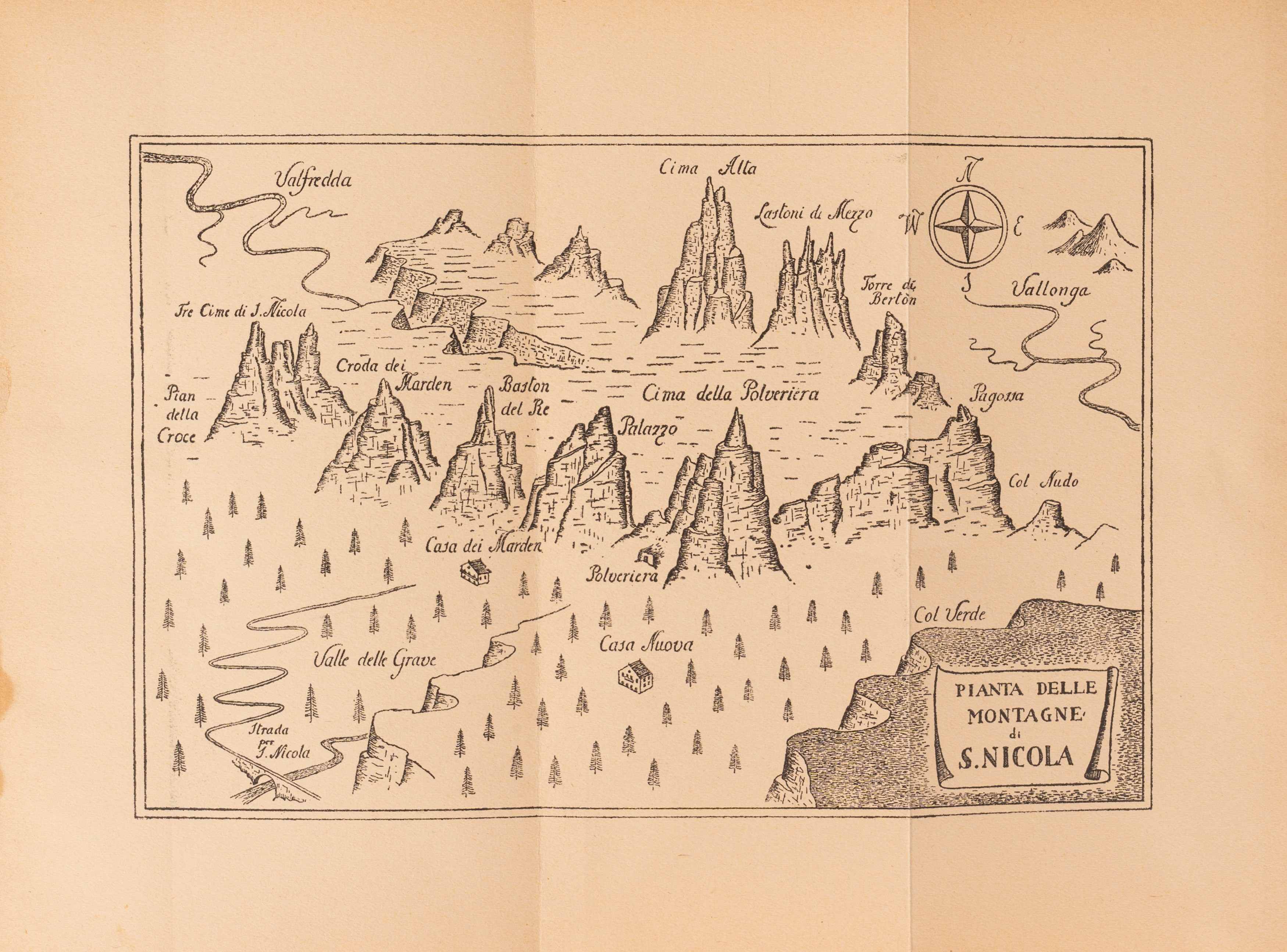 Milan - Rome, Treves, 1933. In 8°. A folded plate depicting the "Plan of the mountains of San Nicola". Editorial paperback printed in blue, front cover partially detached, gap.