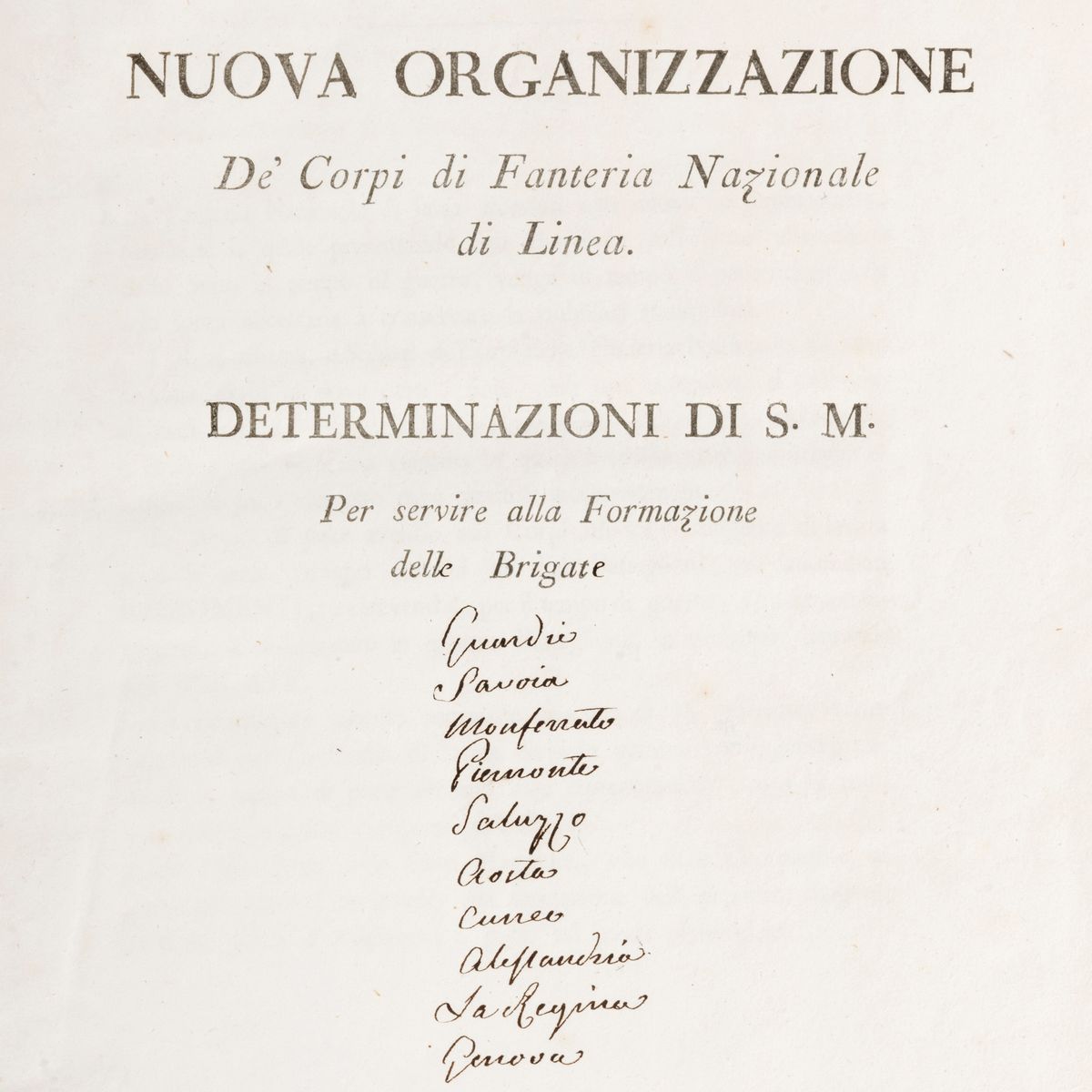 Uniform Regulations + SM Decisions for the new formation, 1814