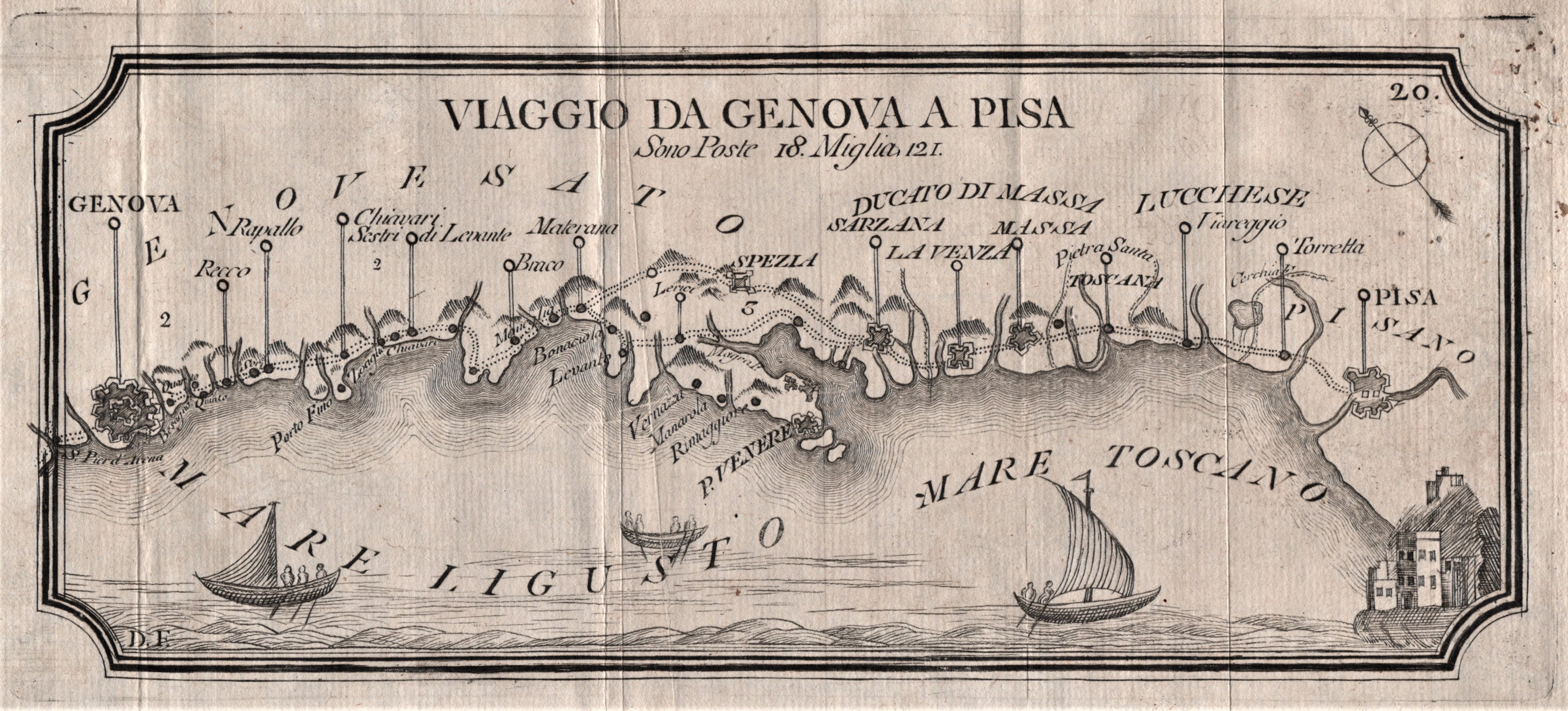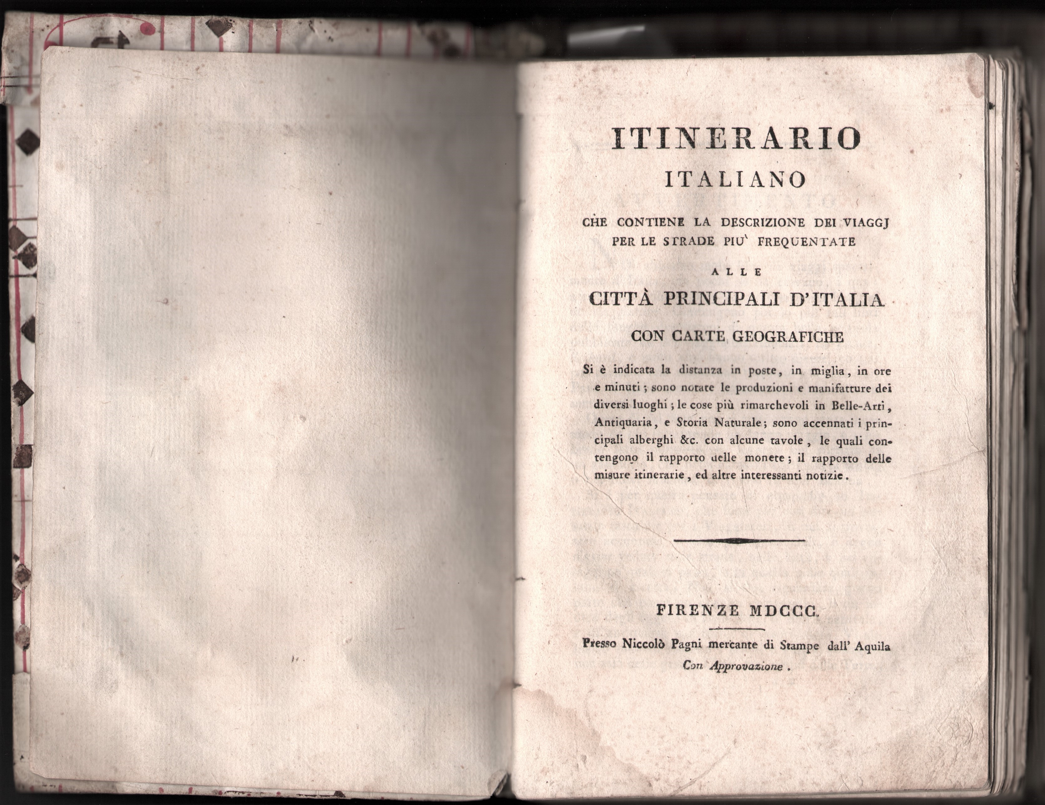 Thus begins the Warning of the Guide by Lorenzo Baroni ( Italian Itinerary , Florence, 1803 – Third edition), which in 5 pages contains the meaning of these practical travel manuals, collected here with passion and love by a sensitive collector. Sensitive because it takes the right sensitivity to understand the value of these practical works, intended for the use and consumption of those who travel for pleasure, for consultation often quick and precarious that compromises their integrity and editorial beauty, but which are able to convey to us the profound meaning of travel, even in remote times. They are not aesthetically beautiful books to browse, (some are, but that is by chance) but rather reference works that were meant to help the traveler on his journey, and therefore conceived to be practical to use, comfortable, small in size, resistant, full of useful information. “For this reason, it was thought to compile an ITINERARY that would be, so to speak, a pocket manual for Travellers, in which the most notable and worthy things to be seen on the roads, in the Lands, in the Villages, and in the Cities, through which one passes, and in which some stop, would be mentioned. (…) The aim that the Author has proposed is to publish a Description of Italy, in which the personal details of Travellers, aided by local Works… will find the indications they need set out exactly and clearly.” And so, once again if there was ever a need, the practical and effective value of the guide is underlined, intended for REAL travellers, not for those passionate about the beauties of Italy from the drawing room. And in this perspective, these Guides/Itineraries are a very precious mine of socio-economic information, if one wants to read them and contextualise them in the era. “The comforts and economy of the traveler have not been lost sight of: for we have mentioned the good and bad hotels not only of the large cities, but also of the lands, villages, and other smaller places. (…) The numbering of the Post Offices, the distance in miles, the time required for each journey (Note: It should be noted that only the time of the journey has been indicated, without considering the time spent changing horses at the post office, which can vary according to the circumstances), the nature of the countries, the quality of the roads, the character of the different populations, and other similar information (…).” A wonderful summary of the purpose of these guides, that of providing valid support to the traveler especially for the practical and daily problems he finds himself facing every day during the journey. All enriched also with Tables: "The Tables prefixed to this Itinerary expressing the expenses in detail, the price of the post horses, the Ratio of the coins, the Ratio of the Itinerary measures, the heights measured with the barometer from various points above the level of the Mediterranean sea, the surface area of the various Countries of Italy in square geographical miles, can be of great use especially for foreigners. (...) But there is even more, something that makes this guide (and many of the others presented in the lot) precious and useful: "What makes this ITINERARY of Italy especially advantageous to Travellers, and increases its value, are the Travel Maps drawn with precision by skilled Geographers and engraved with the greatest possible clarity. In them you can see at a glance the postal roads, the postal signs, the secondary main roads, the names and the position of the Cities, the Lands, the Villages, the Castles, the Lakes, the Rivers, the Torrents, and everything else that can be desired in a good topographical map. These alone would be sufficient in themselves to guide the foreigner on the main roads of Italy.”