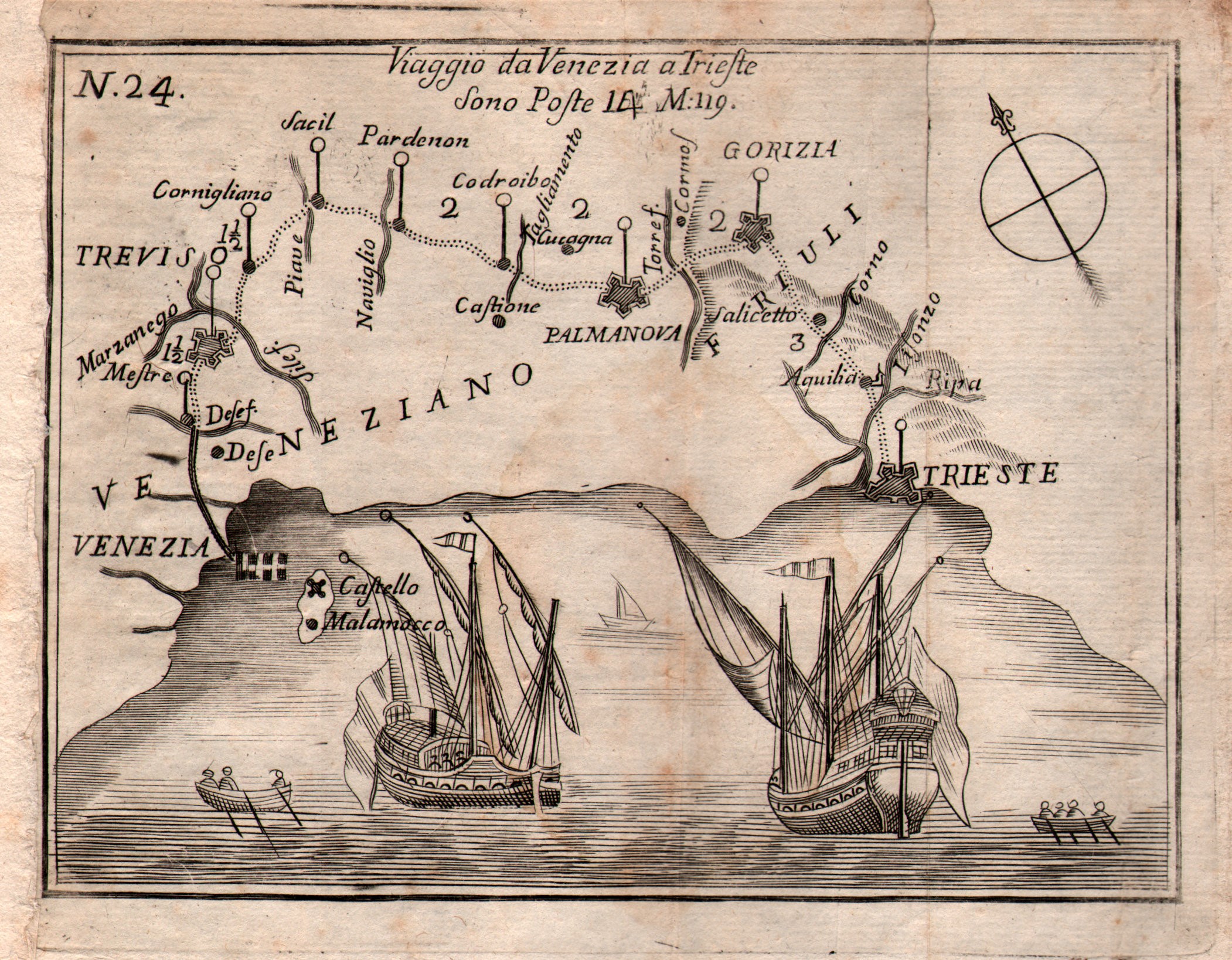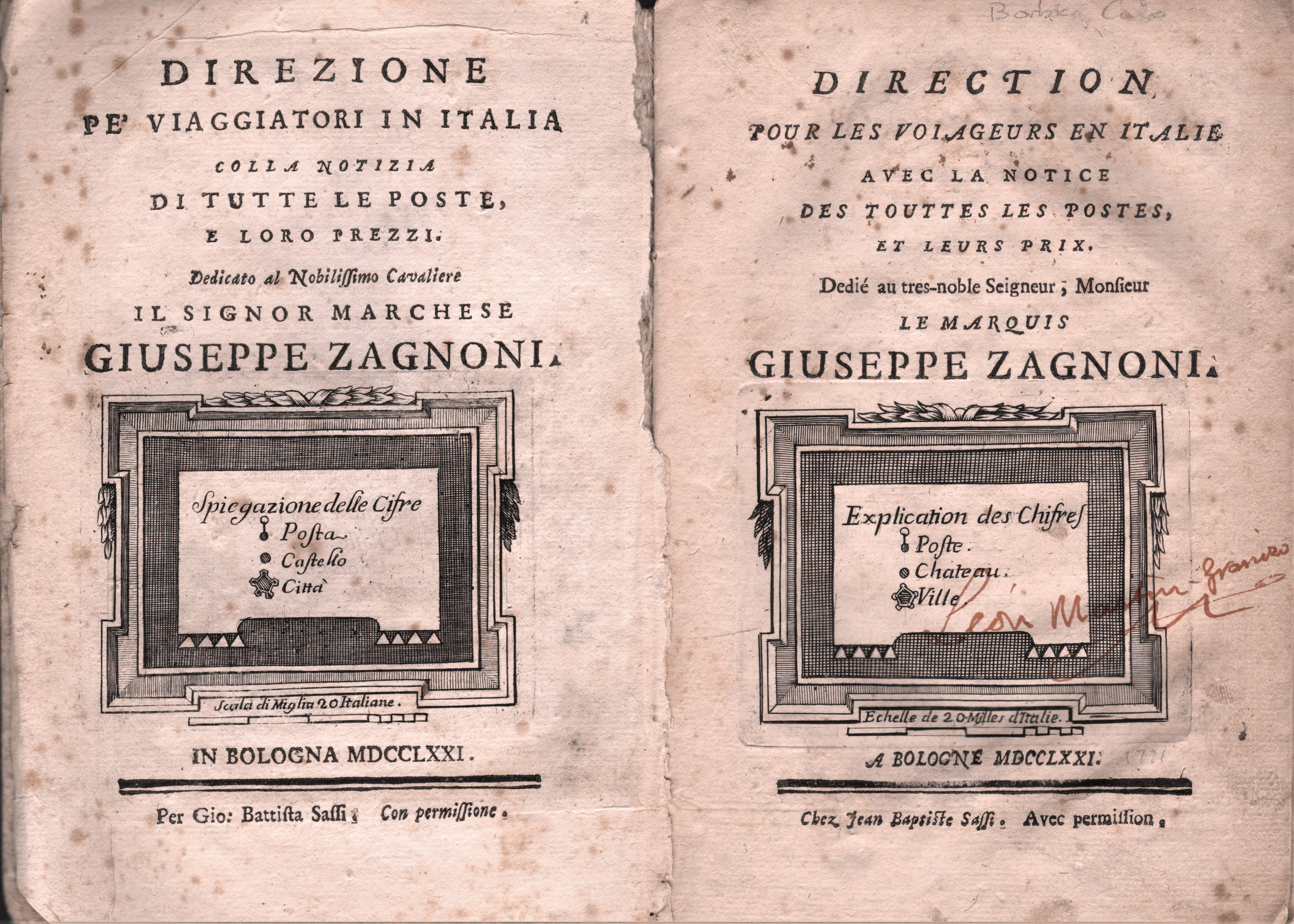 This is one of the many Guides contained in the lot, the other 79 do nothing but resume amplifying, reducing, modifying, the different entries contained in this introduction: each author, at his pleasure, emphasizes the historical-artistic aspects, the political ones, the practical ones, the illustration of the different cities or the descriptions of the population, diversifying the product often also for marketing needs. But a common denominator can certainly be identified: they are guides and itineraries REALLY used for traveling, used and crumpled by the hands of those who traveled those roads, in the impervious and difficult ways of traveling at that time. They are therefore not perfect, immaculate or complete copies, because depending on the use that the travelers of that time made of them they can bear signs of the wayfarer, gaps, omissions but often annotations and additions. Like the one that appears in the little book that has acted as our guide up to now: "God accompany the illustrious Traveler, such being the most fervent wish of PC who offers this book as a memorial". The wish for a journey "blessed" by God, whose viaticum was to be this little book offered to the traveler, as a sign of good luck. The same wish to you readers curious to discover the world contained in these Guides; in every era, travel has always been a topical theme and even today each of us often dreams of going somewhere far away, but sometimes you don't need trains or planes, a nice (used) guide that smells of times gone by and a little imagination is enough.