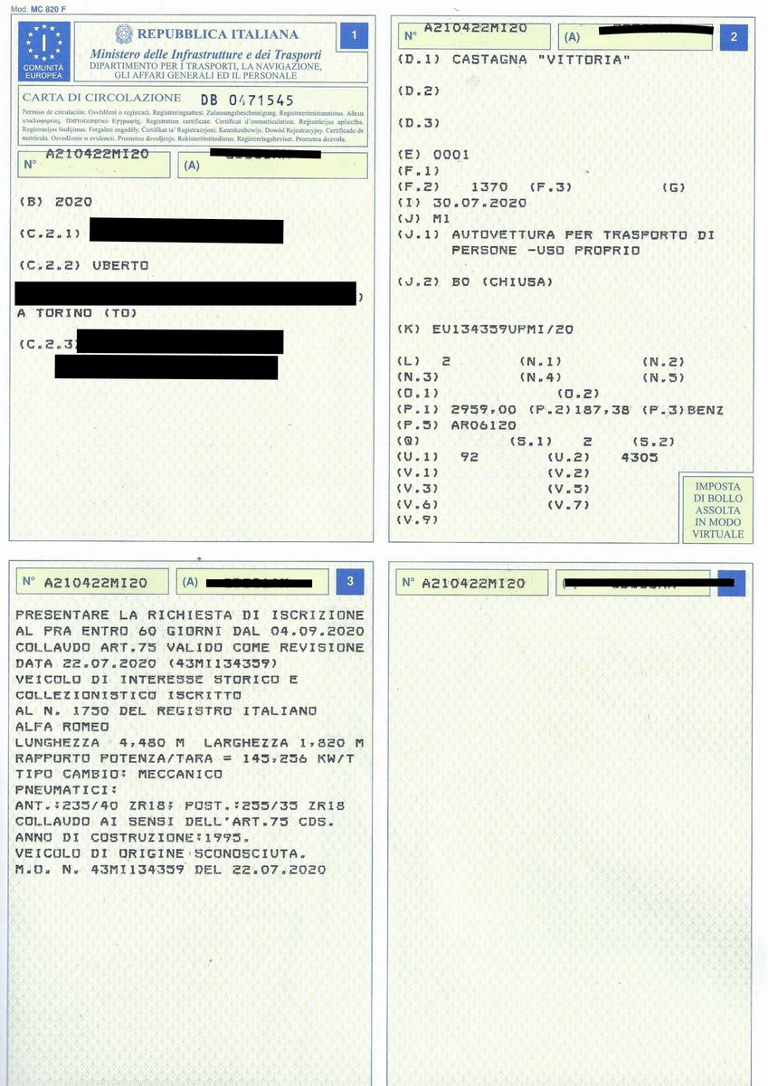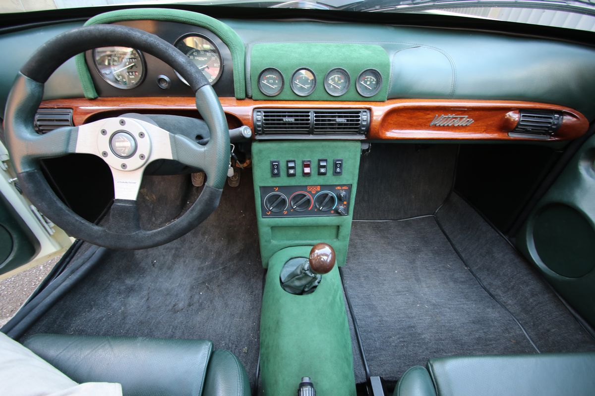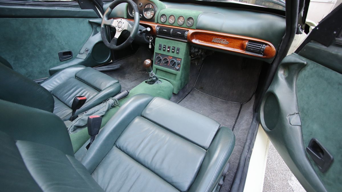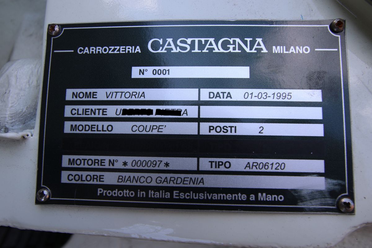 In 1994 Uberto Pietra, expert car connoisseur and collector, and Gioacchino Acampora, architect-designer, took over the rights to the Castagna brand, which had expired for forty years, and wanted to resume the philosophy of the famous Carrozzeria of the early century, that is to propose cars in a unique example and built entirely by hand. Thus, between 1994 and 1995 they built this prototype called "Vittoria", named after Pietra's daughter, based on the Alfa Romeo SZ/ES 30 sports car and on the platform and mechanics of the upgraded Alfa Romeo 75 V6 3.0. To move everything, the famous Alfa Romeo “Busso” heart. The name Alfa Romeo “Busso” refers to a family of petrol engines with V6 architecture for automotive use produced from 1979 to 2005. The name derives from the name of its designer Giuseppe Busso. This engine is considered (and has received official recognition) as one of the best naturally aspirated petrol engines, and in particular it has often been regarded as one of the best with V6 architecture. There are numerous parameters in which the "Busso" is considered excellent, such as in delivery, performance, elasticity, efficiency, reliability and also in sound. This engine was the last component built at the Alfa Romeo plant in Arese. The car in question has an engine developed by a company specializing in the preparation of racing car engines for the "DTM" championship. This engine delivers 254.8 hp at 5740 rpm, as specified by the dyno test table (compared to 180 hp for the production car). During 1994 and part of 1995 this base on the Alfa Romeo 75 was built to the specifications of the SZ/ES 30, with front wishbone suspension and De Dion rear with specific geometry. The shock absorbers have been updated with stiffer Koni and brakes with Brembo 6-piston calipers, perforated and ventilated discs. "Tecnomagnesio" magnesium alloy wheels in 8 x 18" front and 9 x 18" rear sizes. The petrol tank is racing safety, patented. The bodywork is all in hand-beaten aluminum and riveted to a specific steel structure, produced by a famous sheet-beater company in Turin. The final construction and painting were entrusted to the Carrozzeria Sonnino of Busto Arsizio (VA). Inside, seats from the BMW 8 series have been fitted with integrated seat belts, specific instruments and accessories from Momo, all interiors are upholstered in dark green leather and matching Alcantara. The styling was considered controversial at the time, the car had a stunning shape for those times, with an interesting extra feature being the all-glass roof, in fact from the double-curved windshield (built specifically) to the rear window is everything seamless glass. The front and rear ends alternate full and hollow shapes. The front part encloses a very particular and personal reworking of the traditional Alfa Romeo shield, which stands out in the void, between a subtle headlight (of Opel Calibra derivation). The Alfa Romeo Gardenia color contrasts with the front and rear ends detailed in black and produced specifically in carbon, the overall appearance is made up of joined shapes and others violently broken. Definitely a personal design and with few concessions to compromises. Perhaps at the time it was considered too futuristic. The Castagna Vittoria debuted at the Geneva International Motor Show in March 1995, in a specific stand. On March 14, 1995, the car appears in an article in the Italian newspaper "Corriere della Sera" with flattering comments during its presentation at the "Bagatti Valsecchi" Museum in Milan, while many positive comments appeared in the world press after the Geneva Motor Show. The car was stored by Uberto Pietra for many years in the surroundings of Milan and was then restored to its original splendor in 2020-2021.