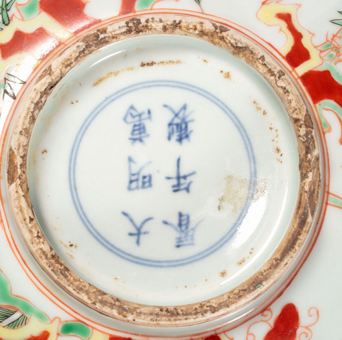 Ancient ceramic bowl decorated inside with phoenixes, China