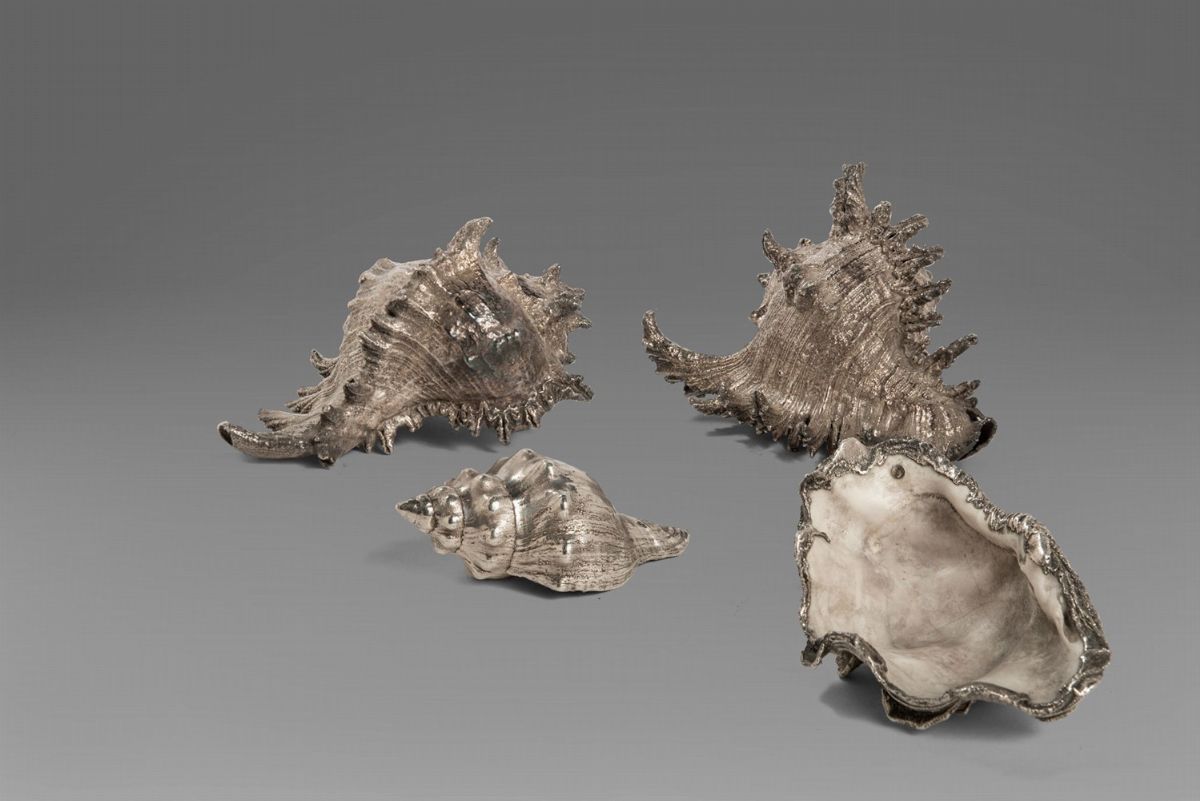 Lot of four shells covered in silver, the smallest signed Federico Buccellati