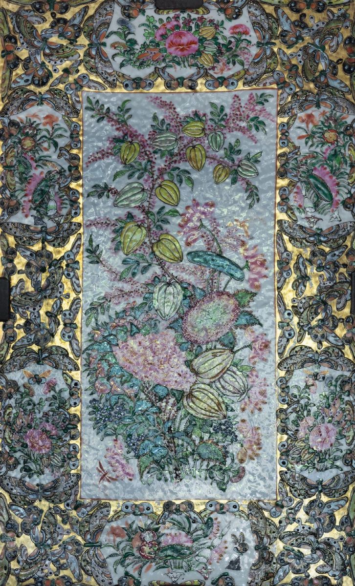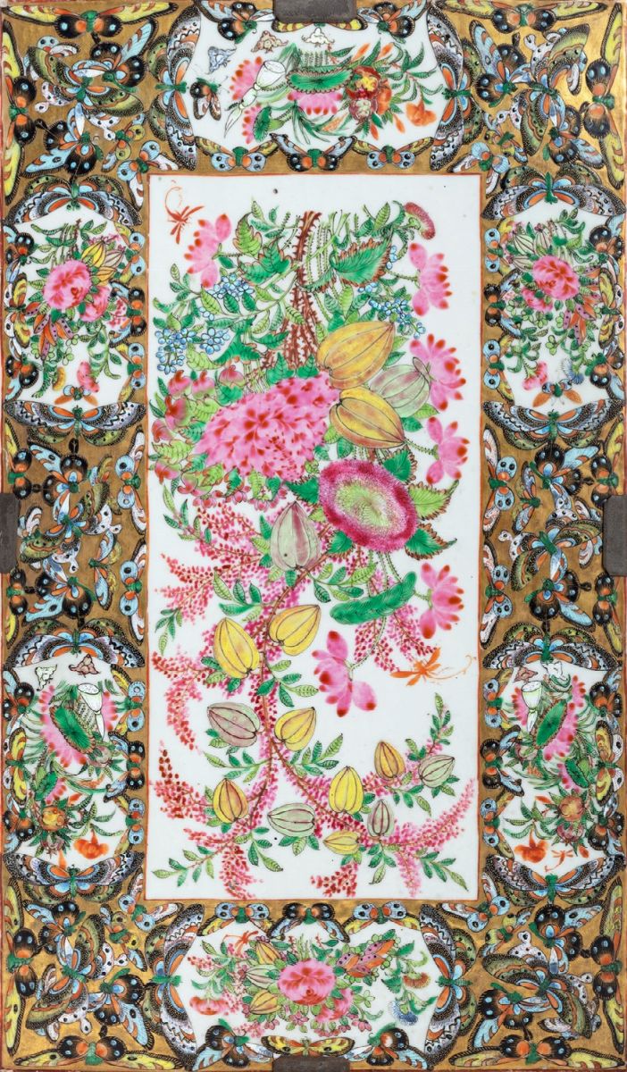Pair of small porcelain plaques, Pink Family, 19th century China