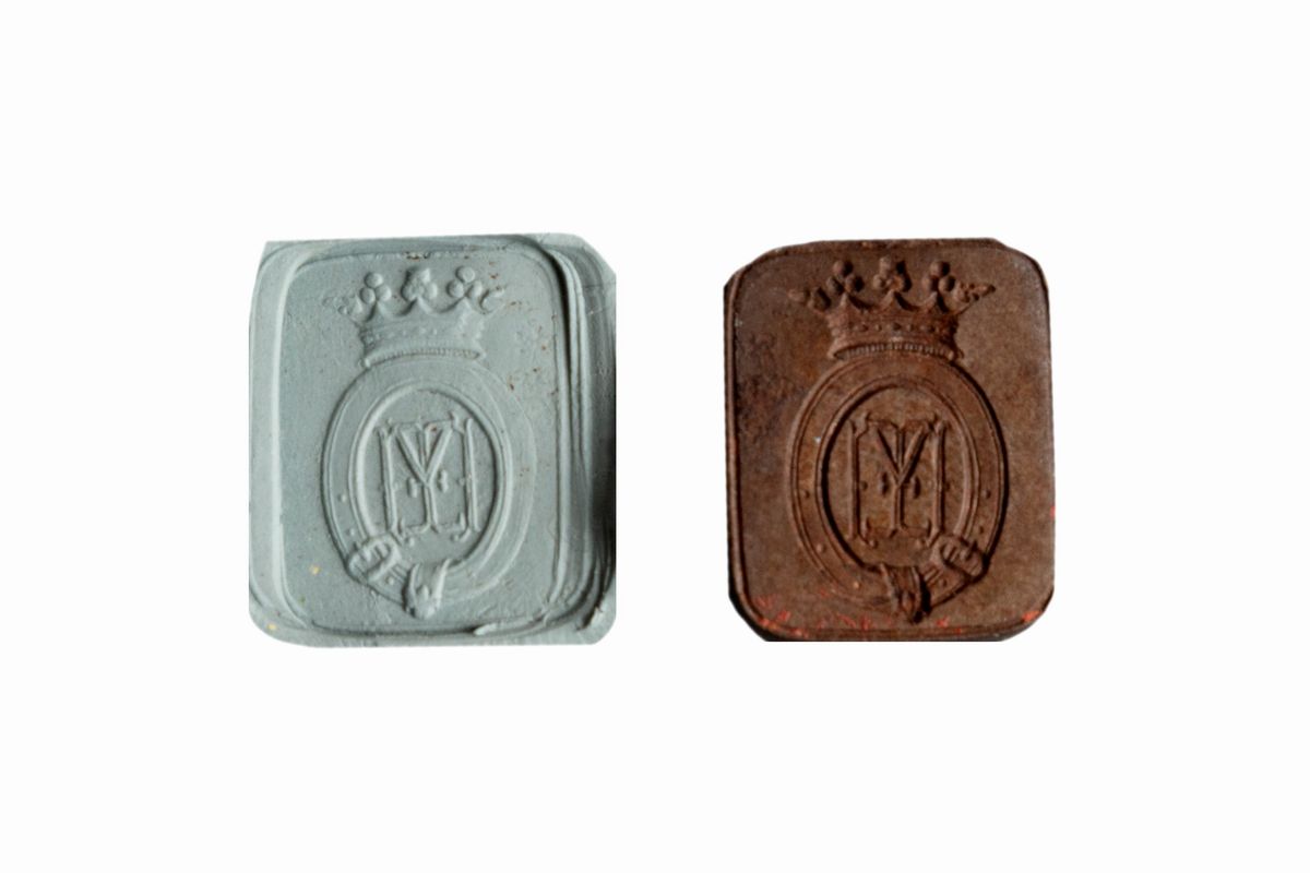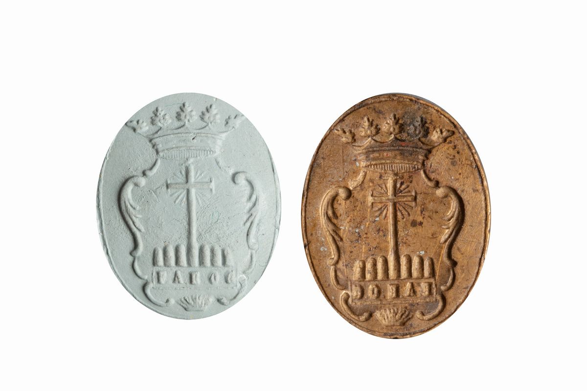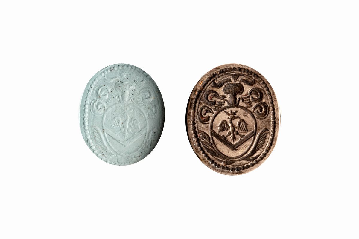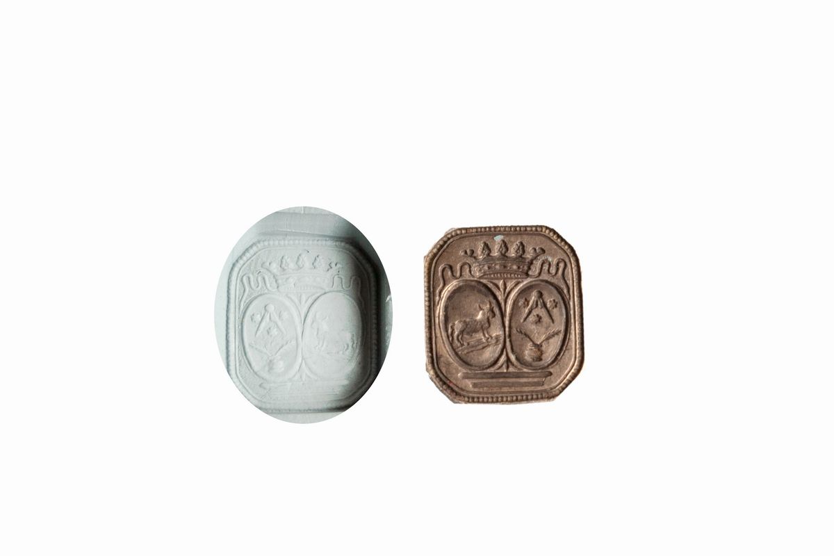 Two ofthe seals in bronze, one in iron and two in silver, without handle, with noble coats of arms