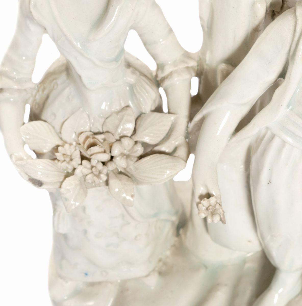 Lot consisting of three white majolica sculptures by Nove di Bassano, depicting a gallant couple...
