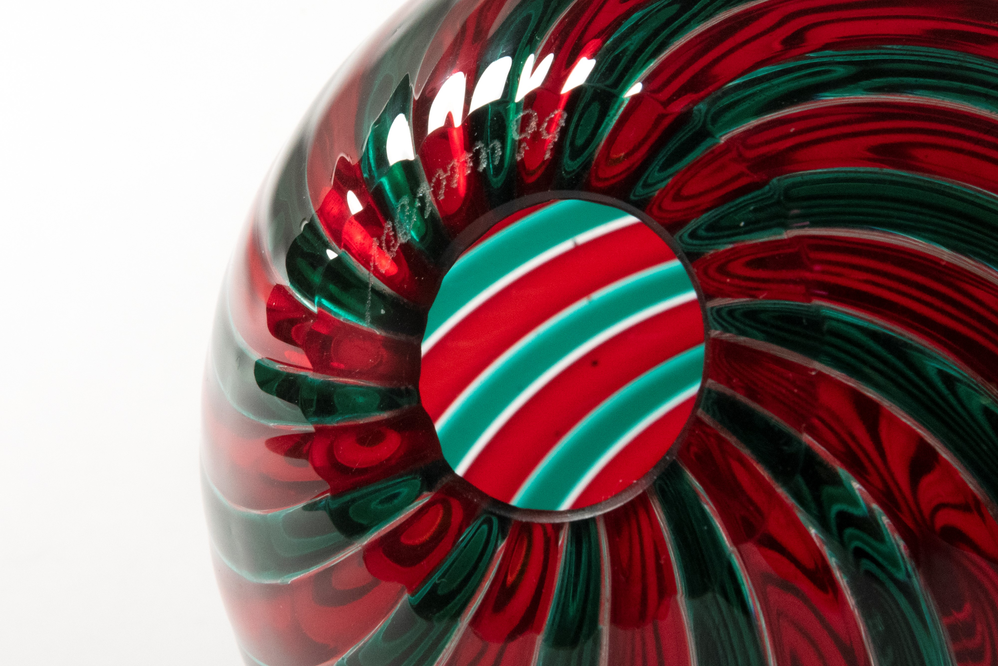 Murano glass egg with red and green spirals, Venini, 20th century