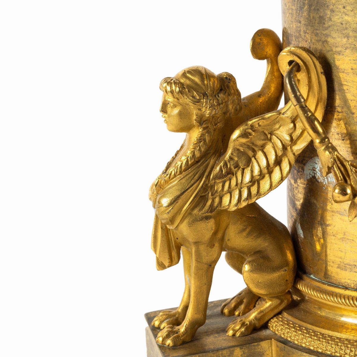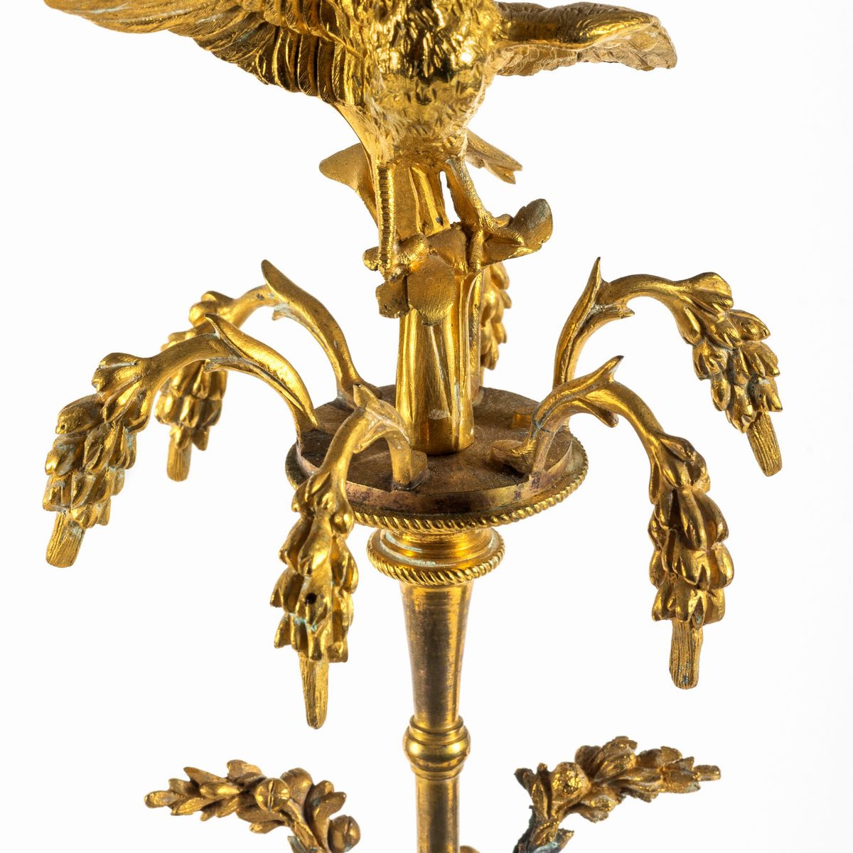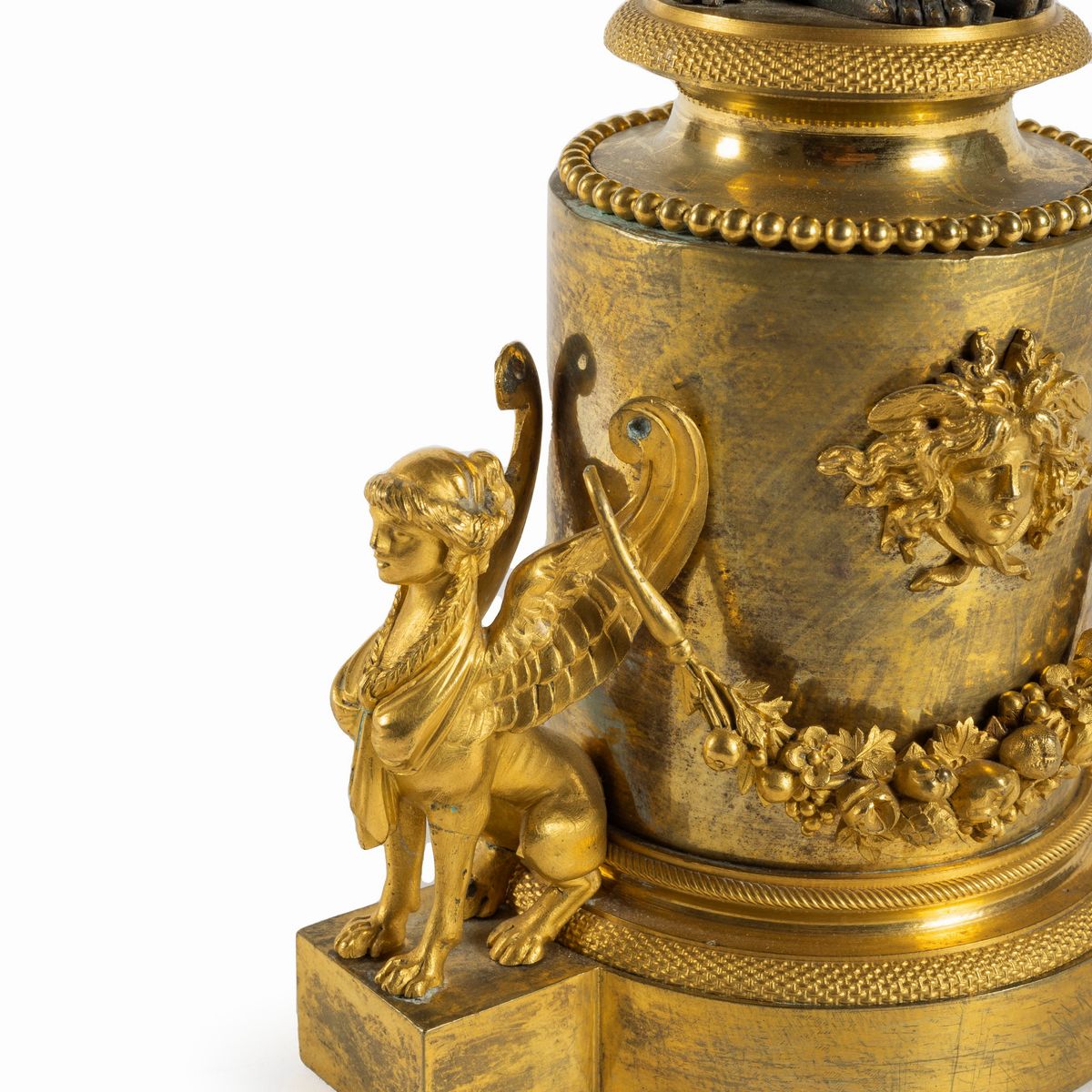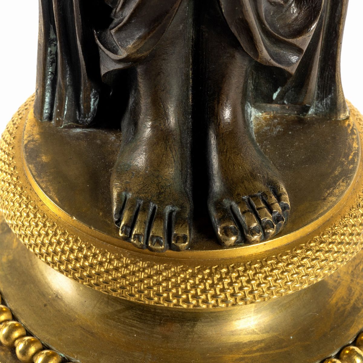 Pair of two-armed Empire candlesticks in gilded bronze and dark patina with caryatids, France, early 19th century