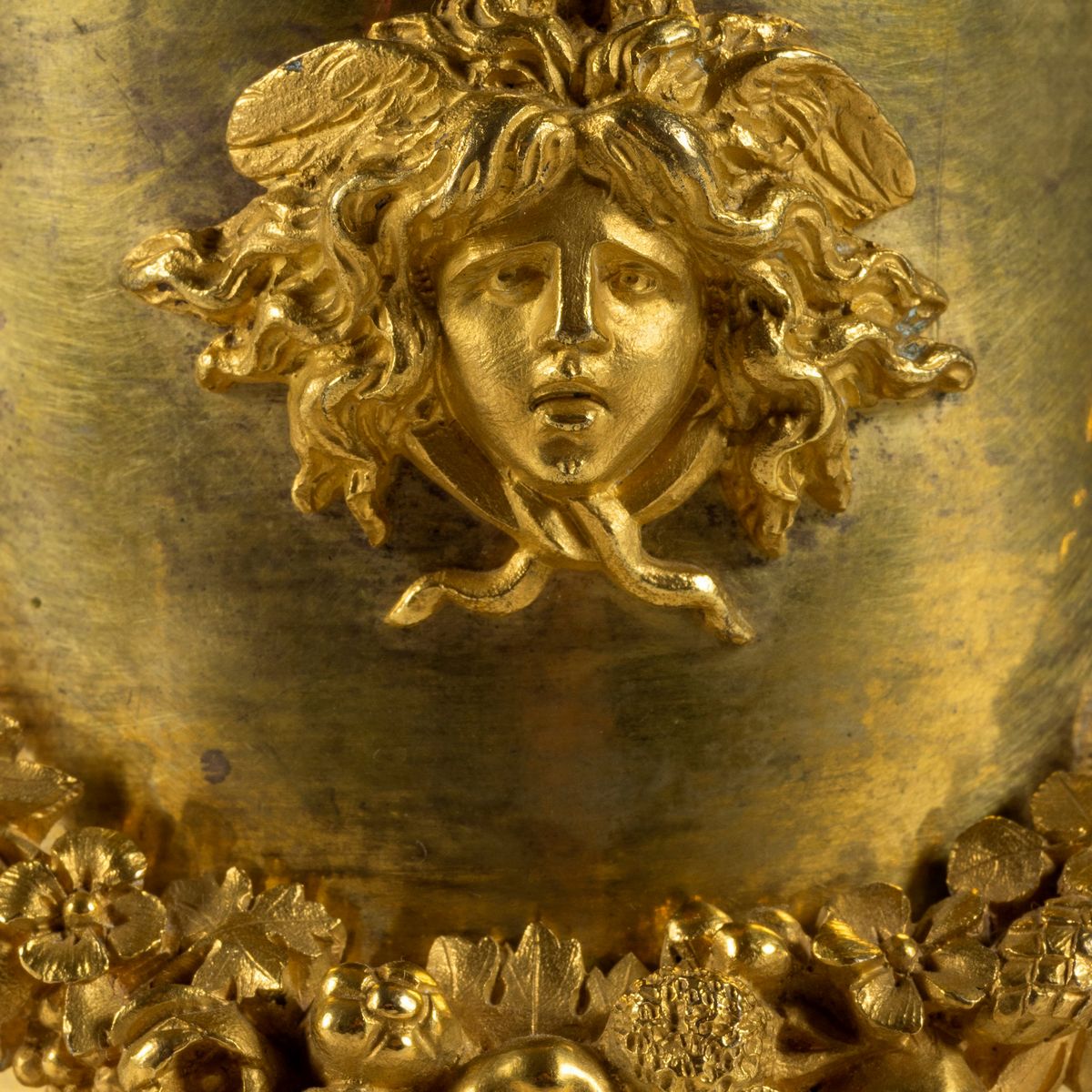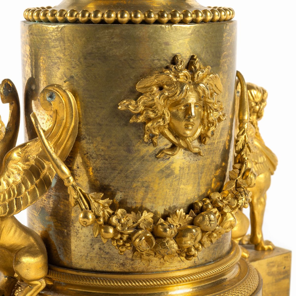 with sphinxes and central mask adorned with festoons on the base, doves on the top