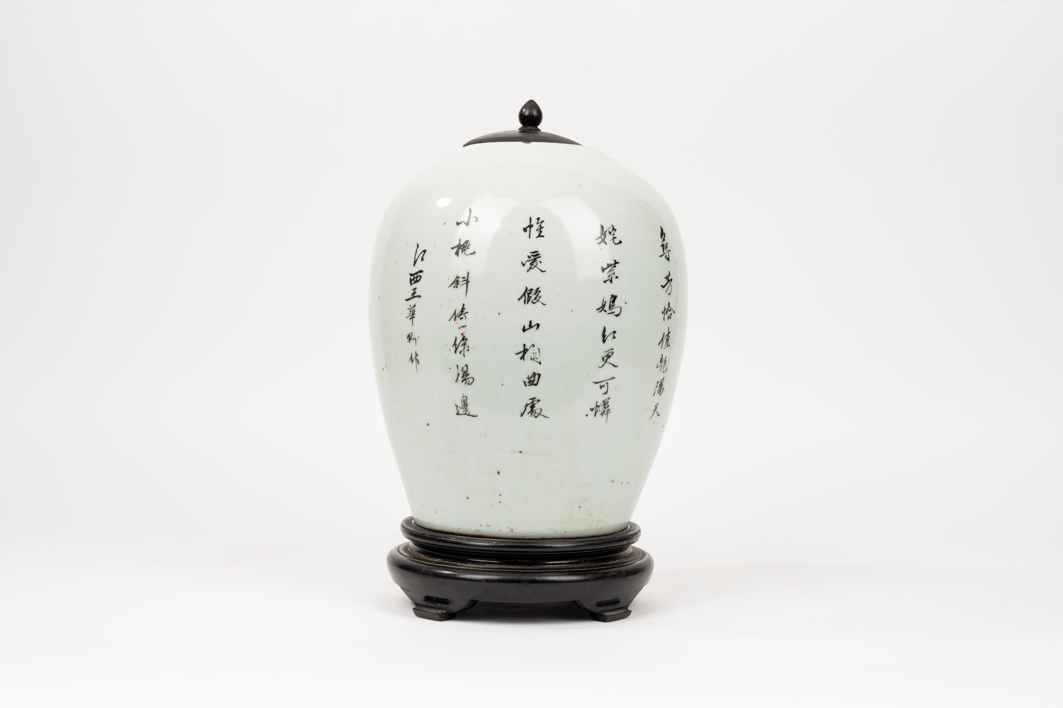 with wooden lid and inscription on the back