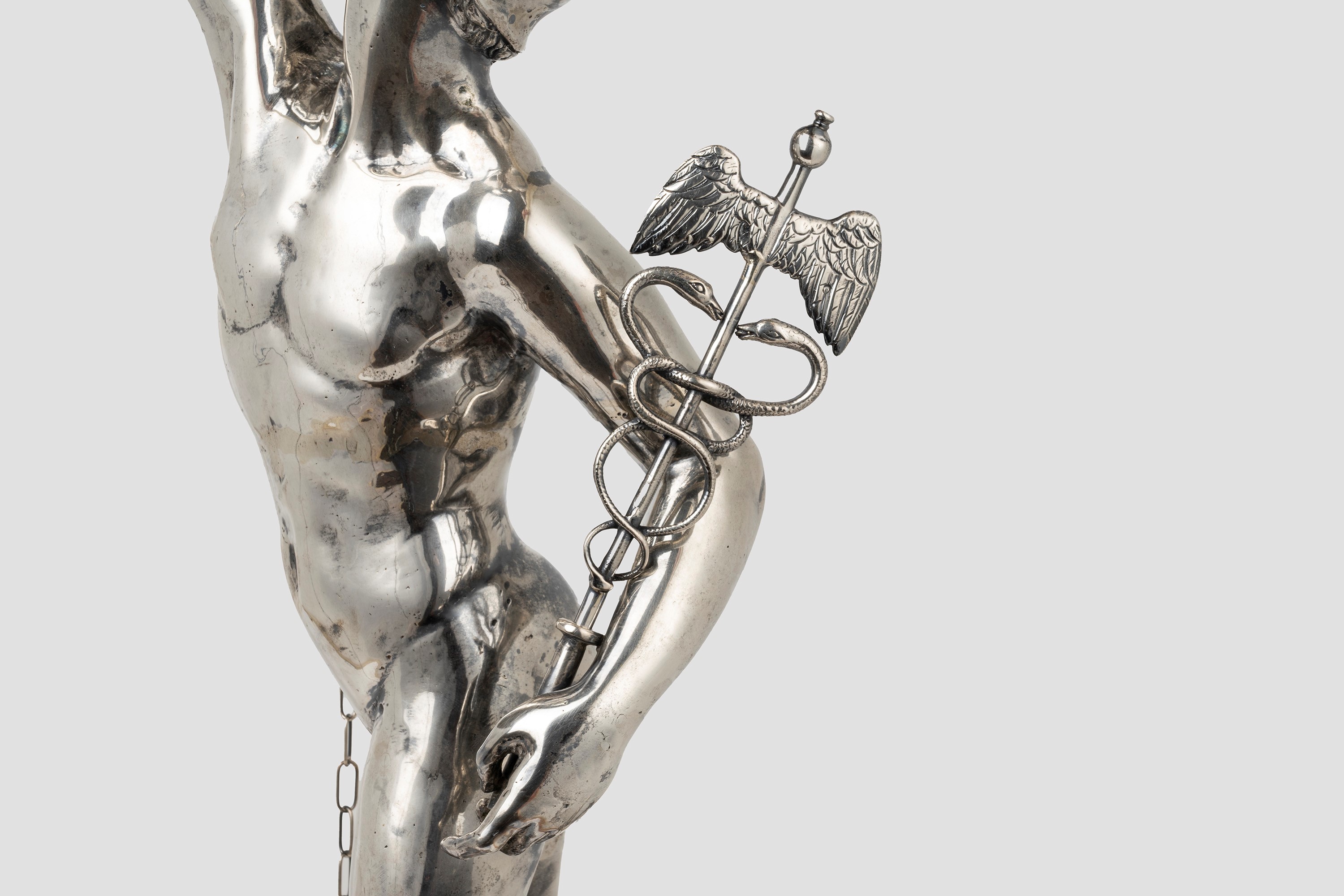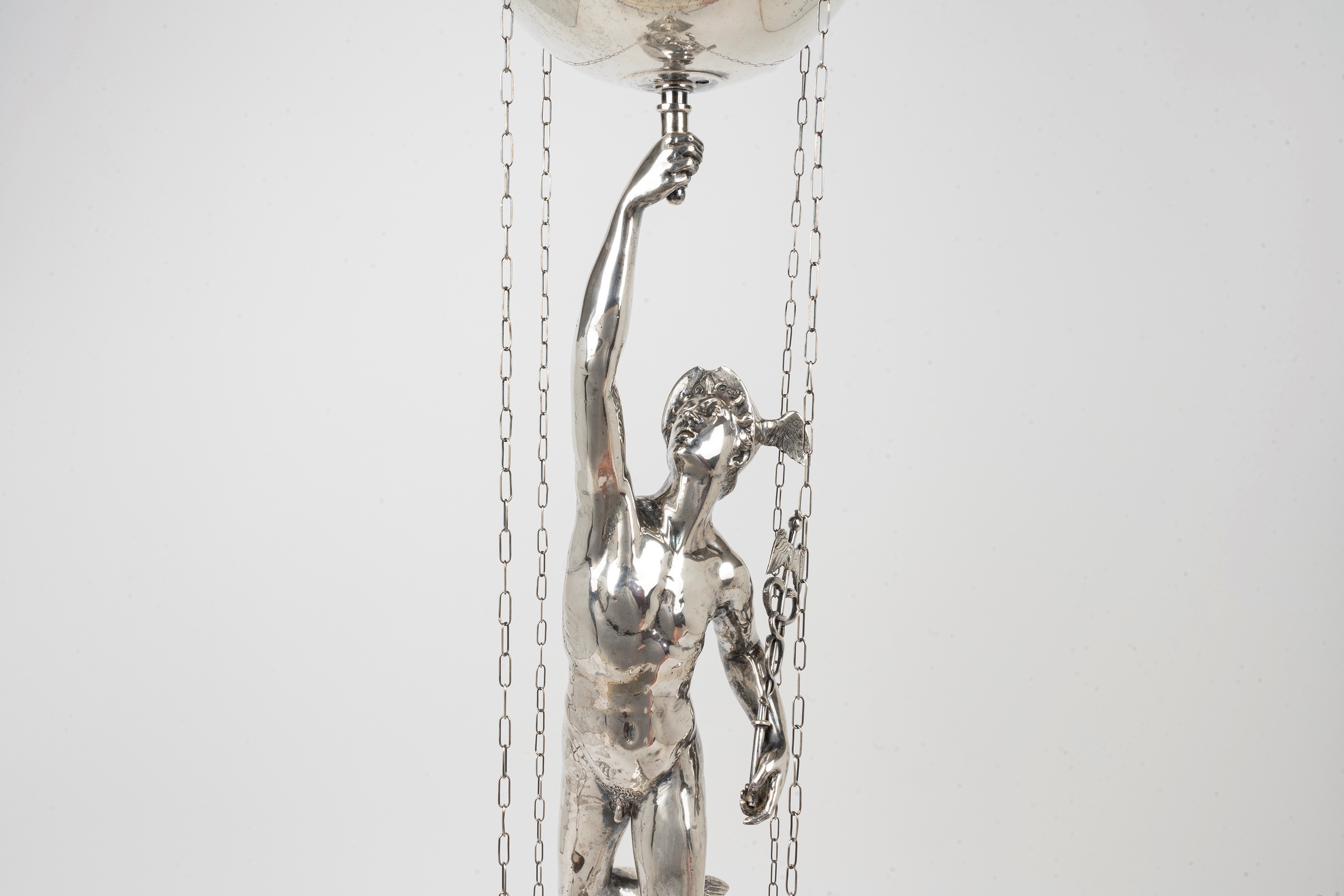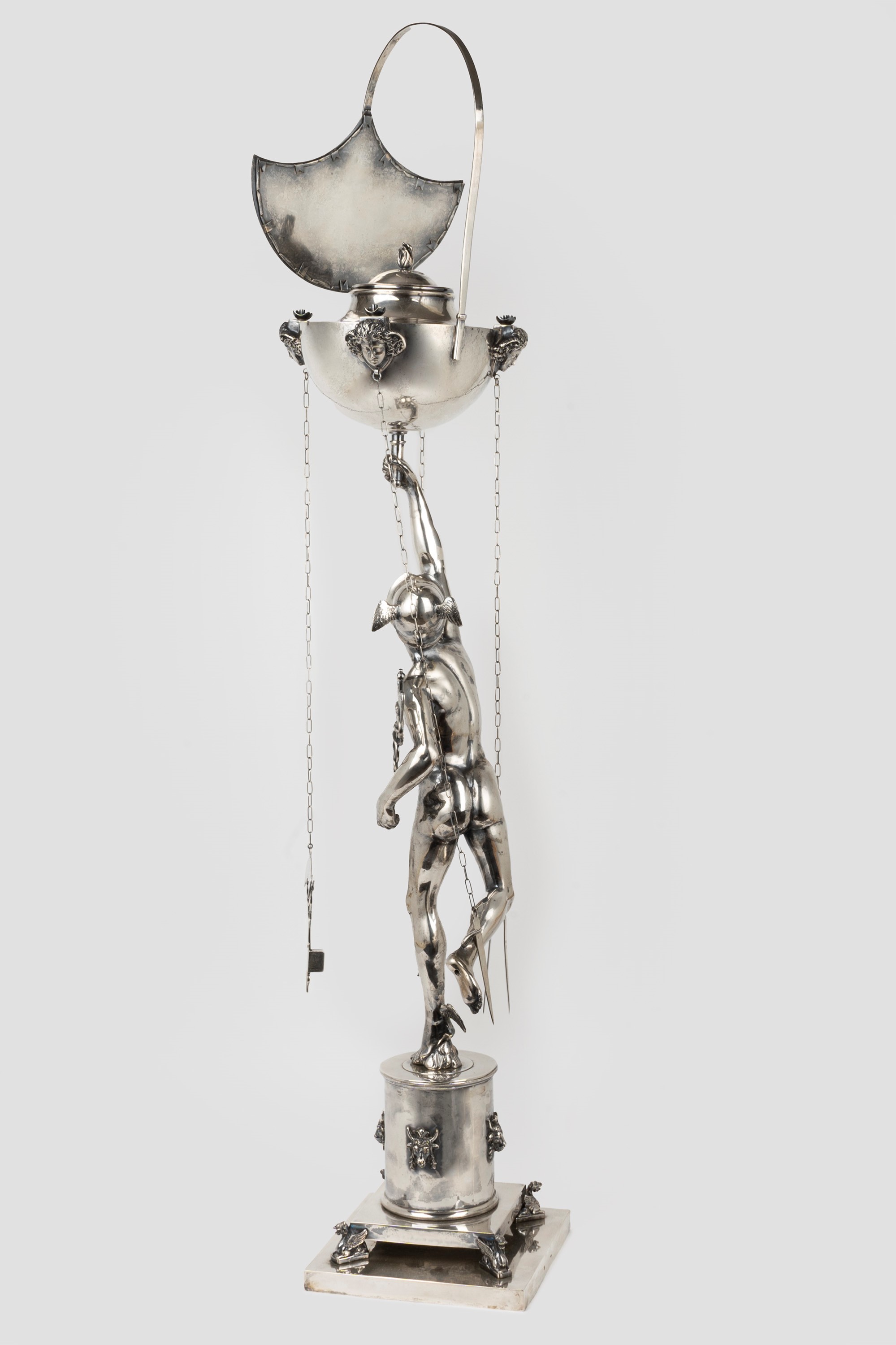 Roman silver oil lamp representing Mercury, by Giambologna, 20th century