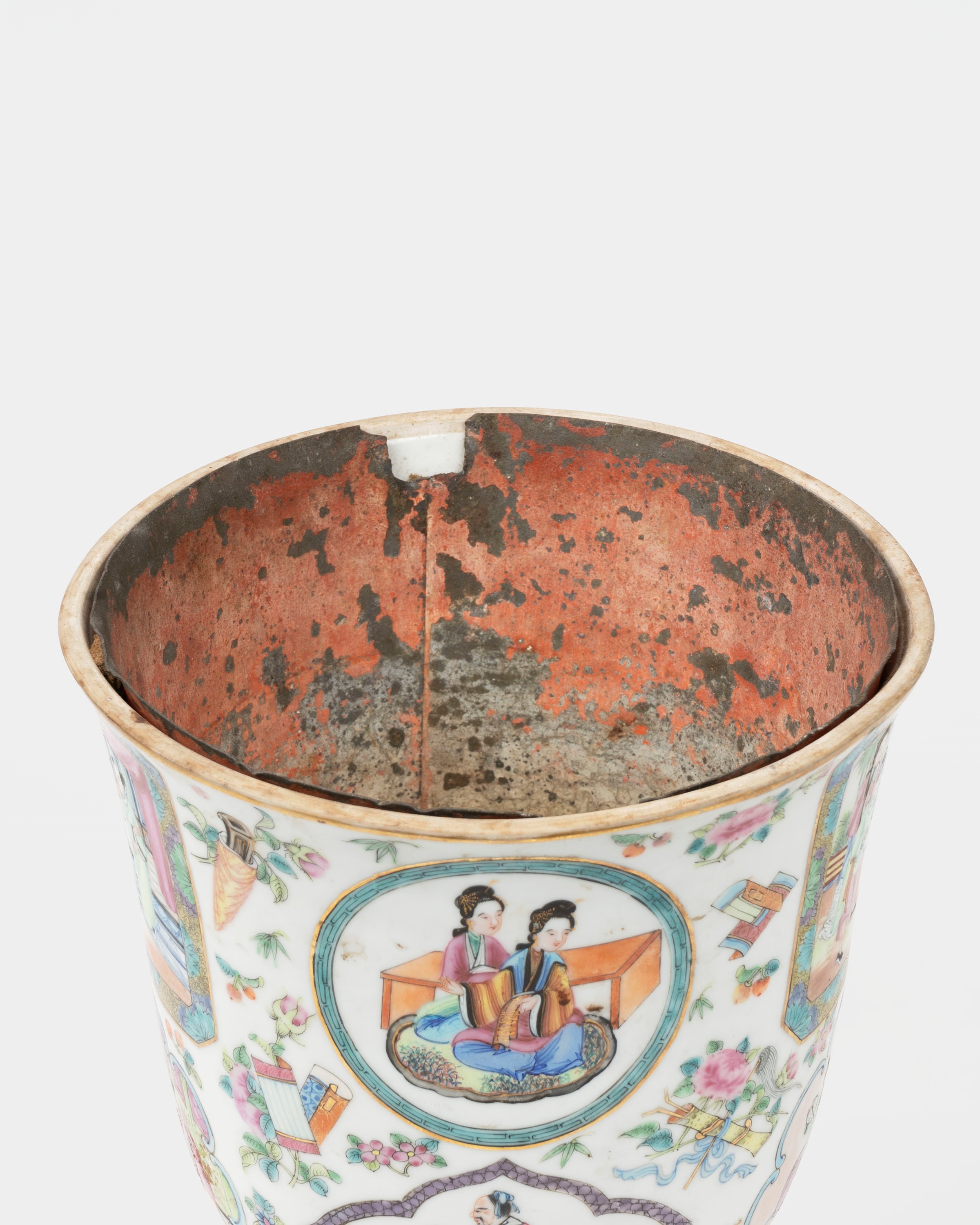 with a tin vase inside