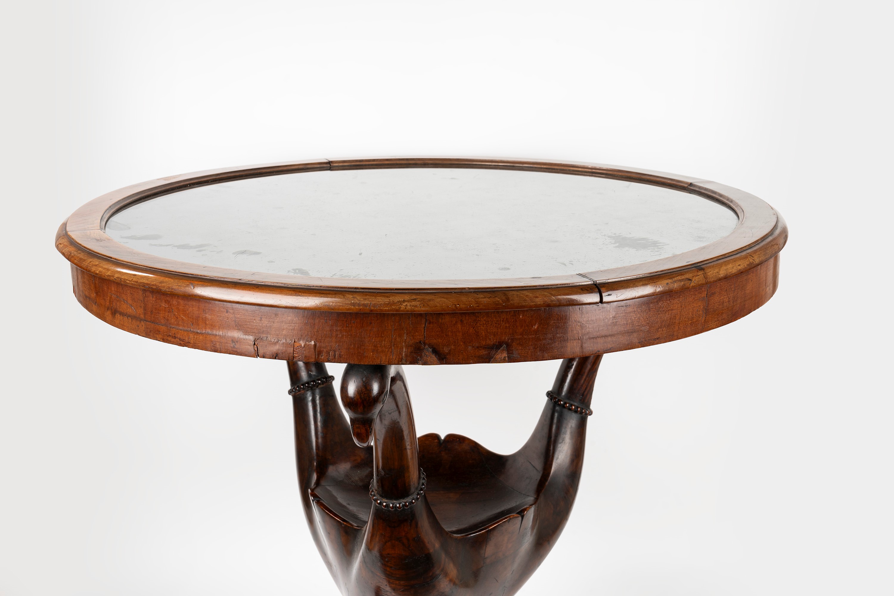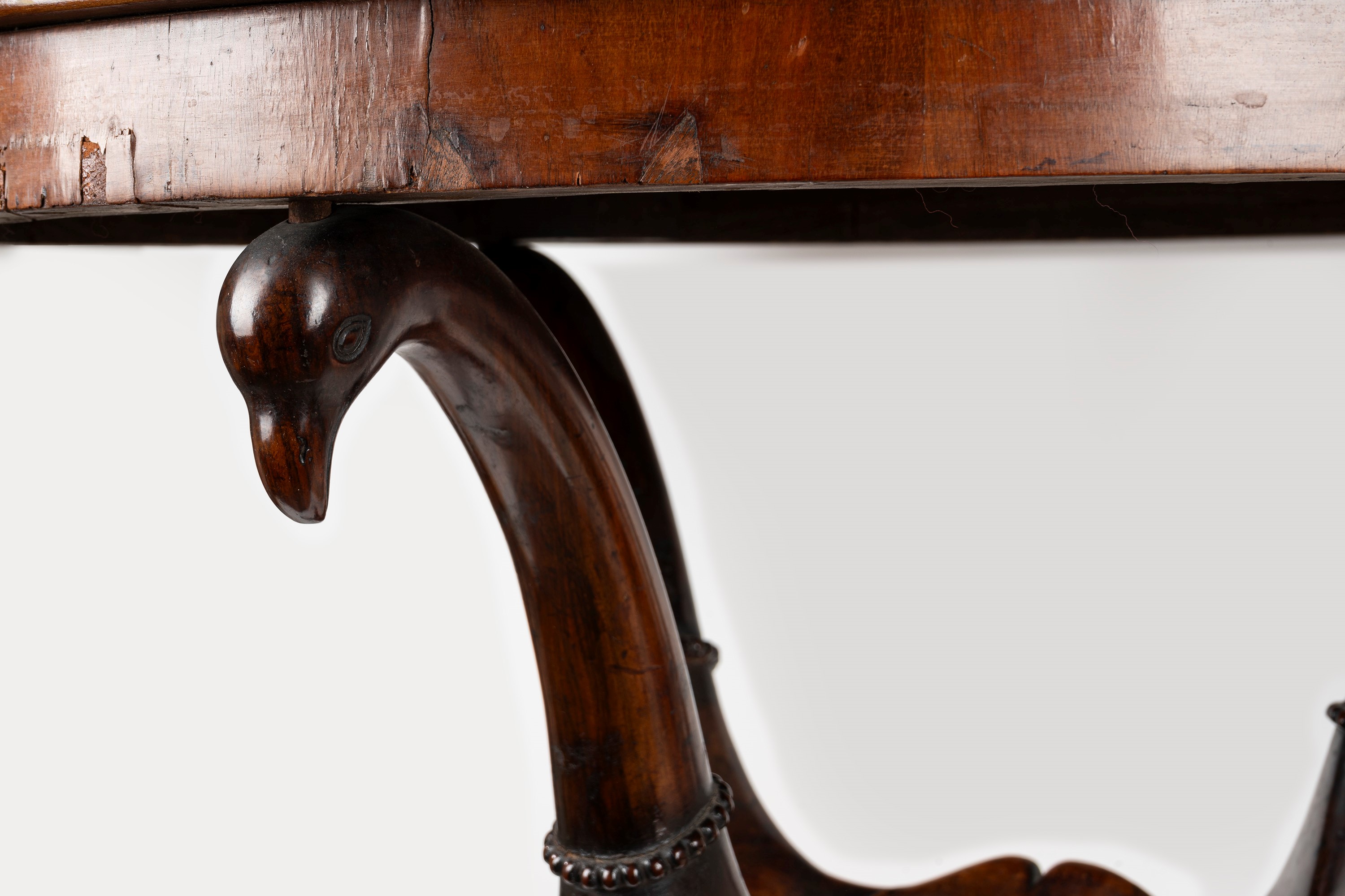 Round wooden tripod table, with central base under the top ending with three swans, 19th century