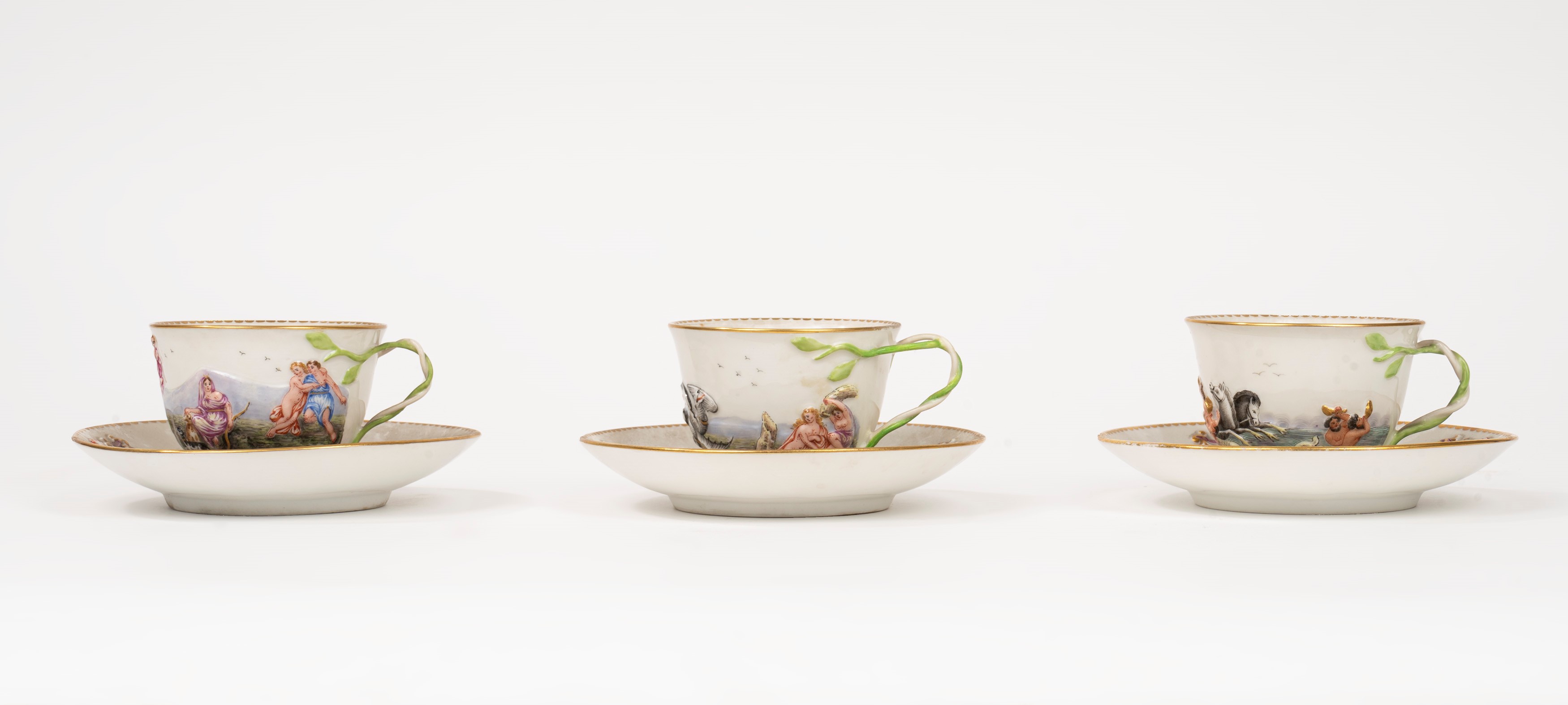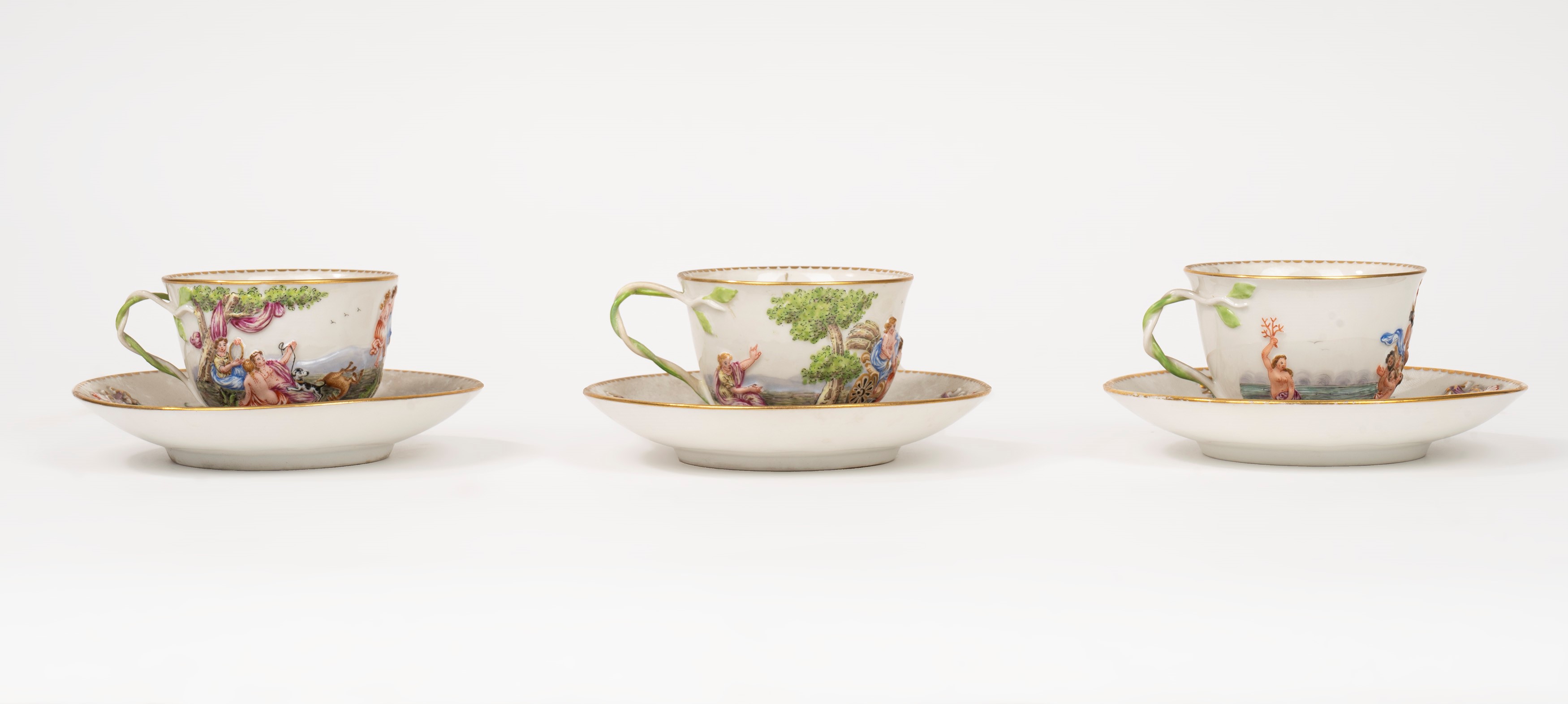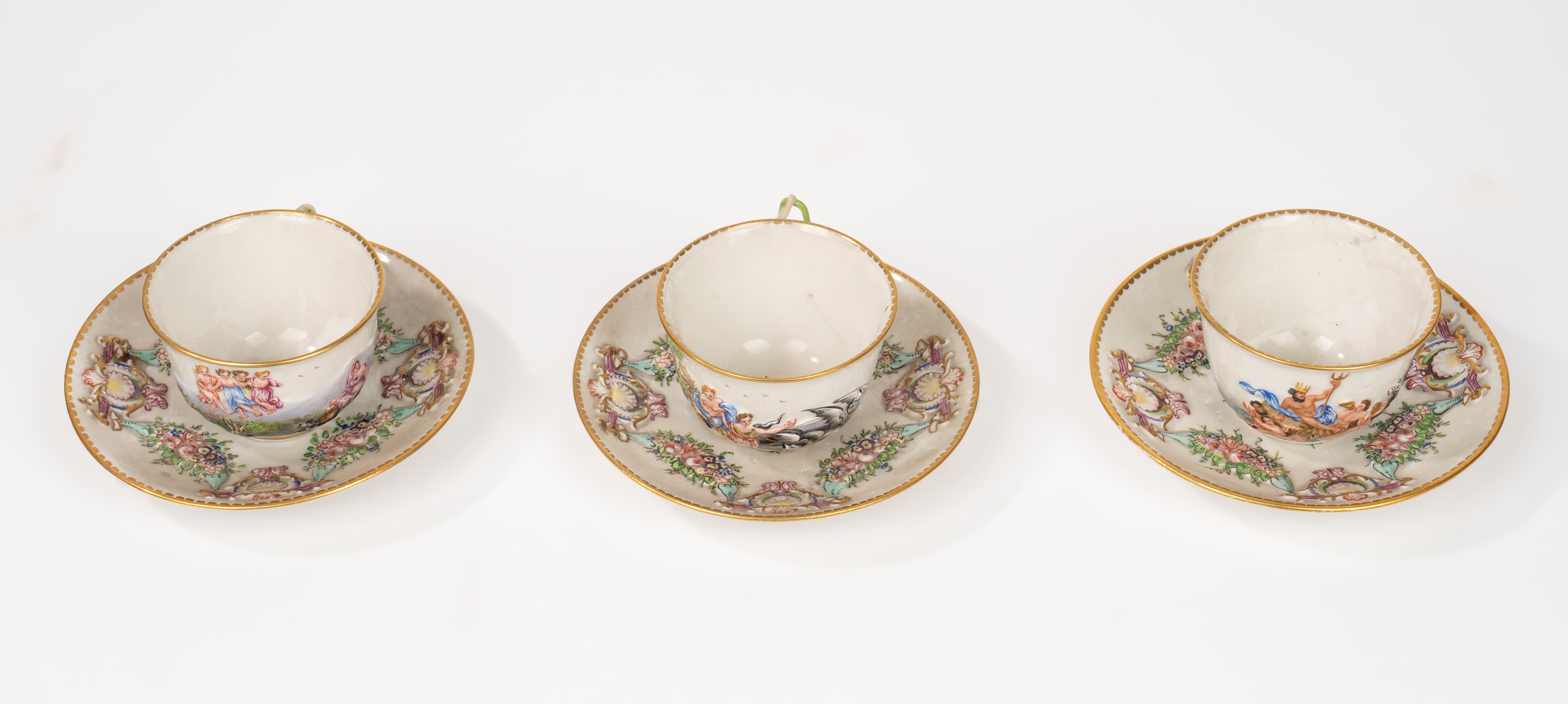 Three cups and saucers in Capodimonte porcelain, late 19th century - early 20th century