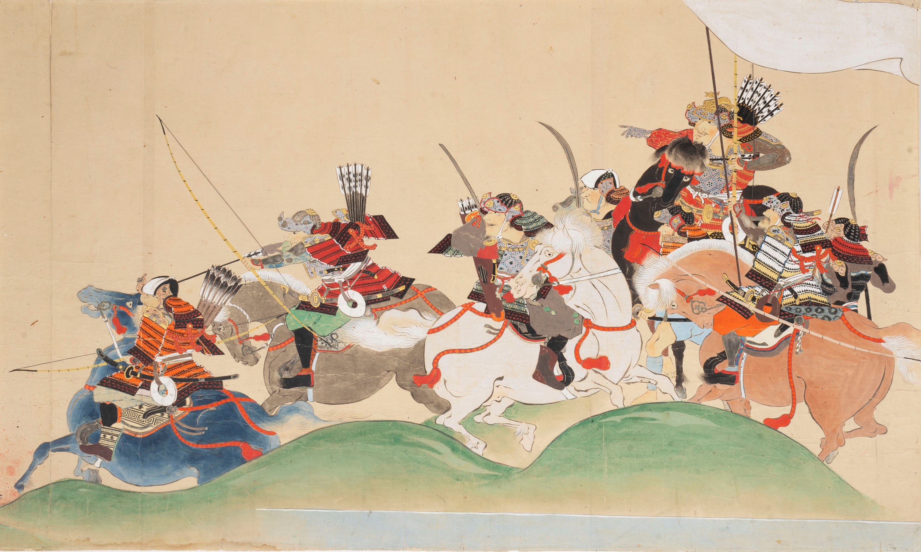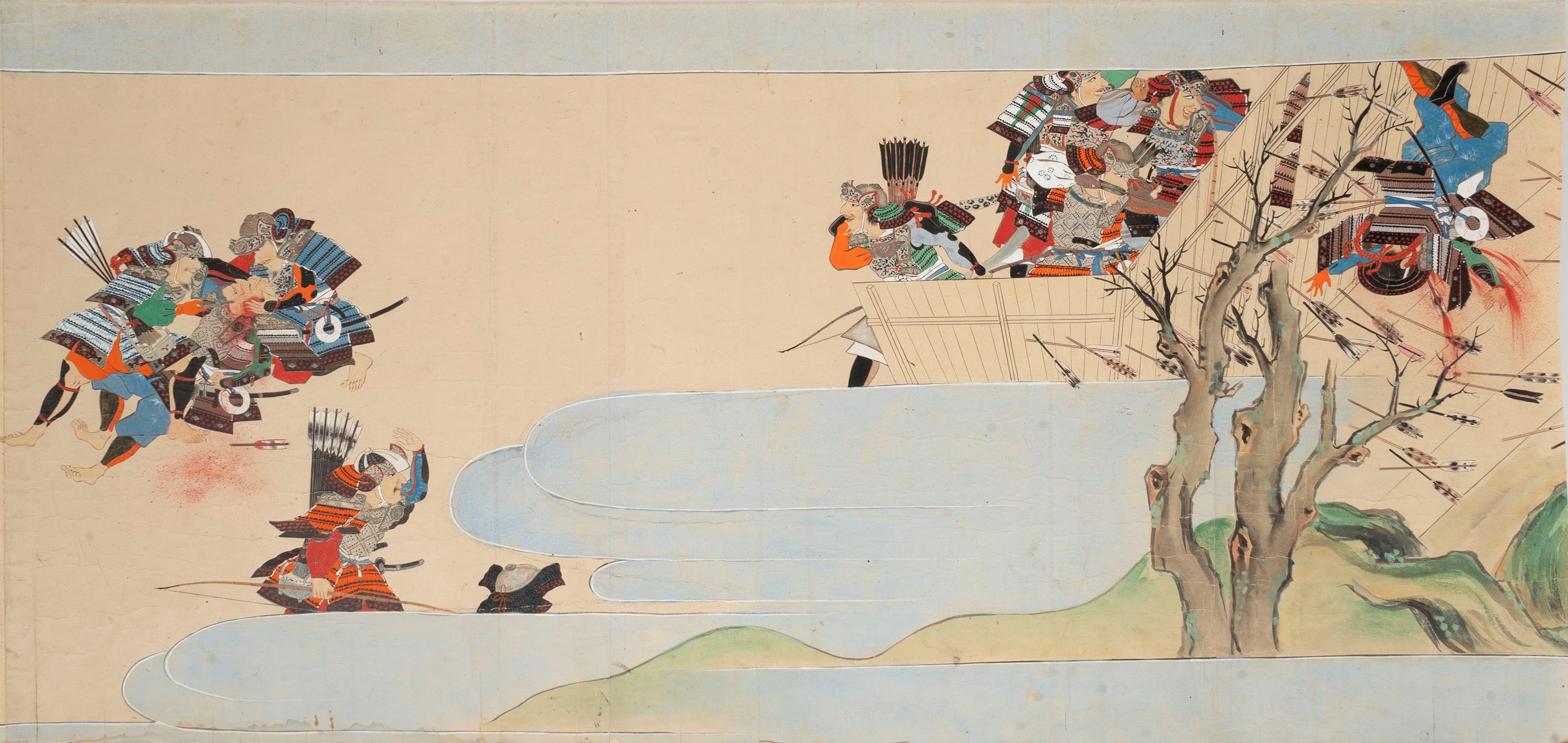 Three paintings depicting samurai scenes, Tosa School, 18th century Japan