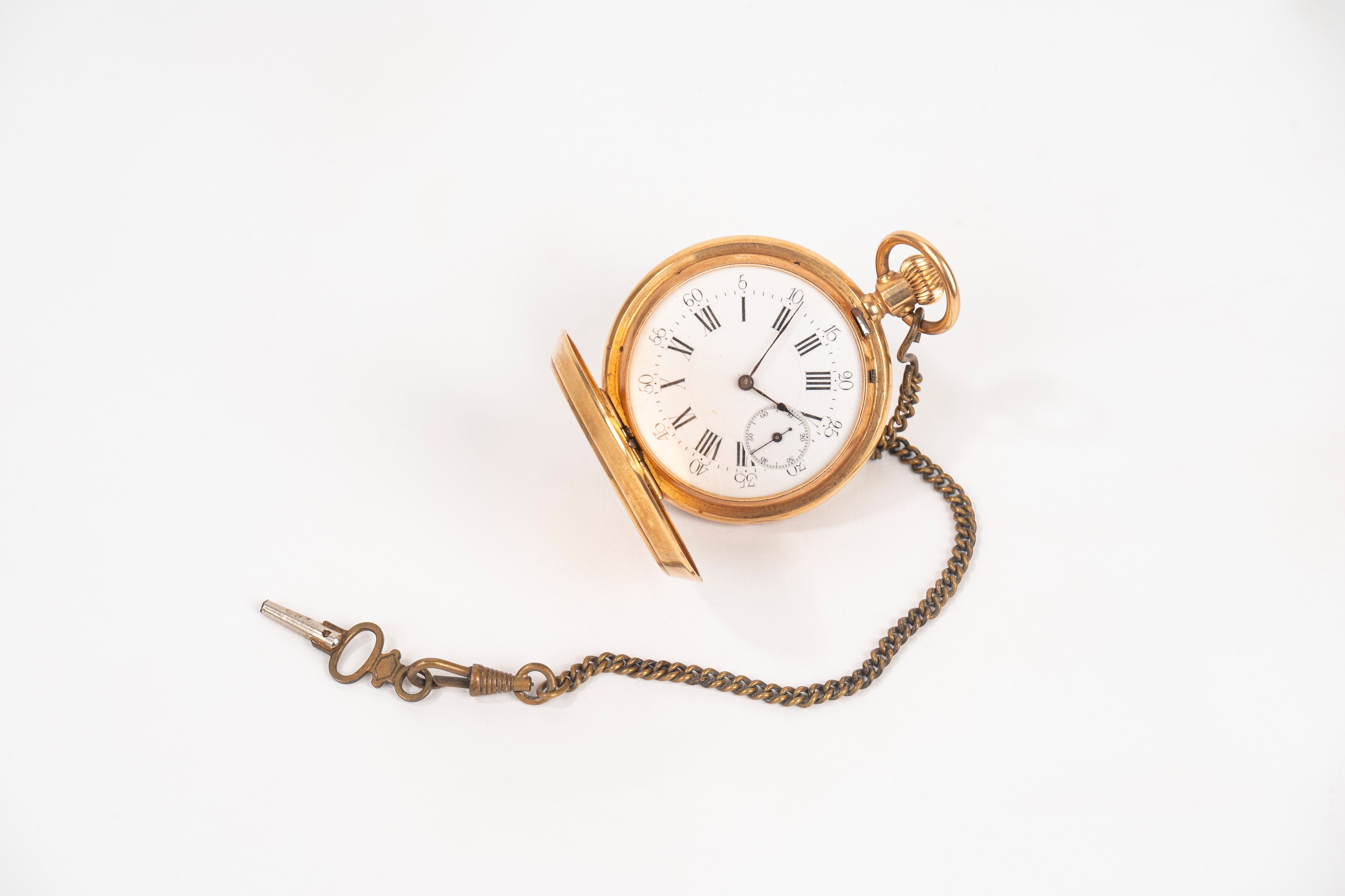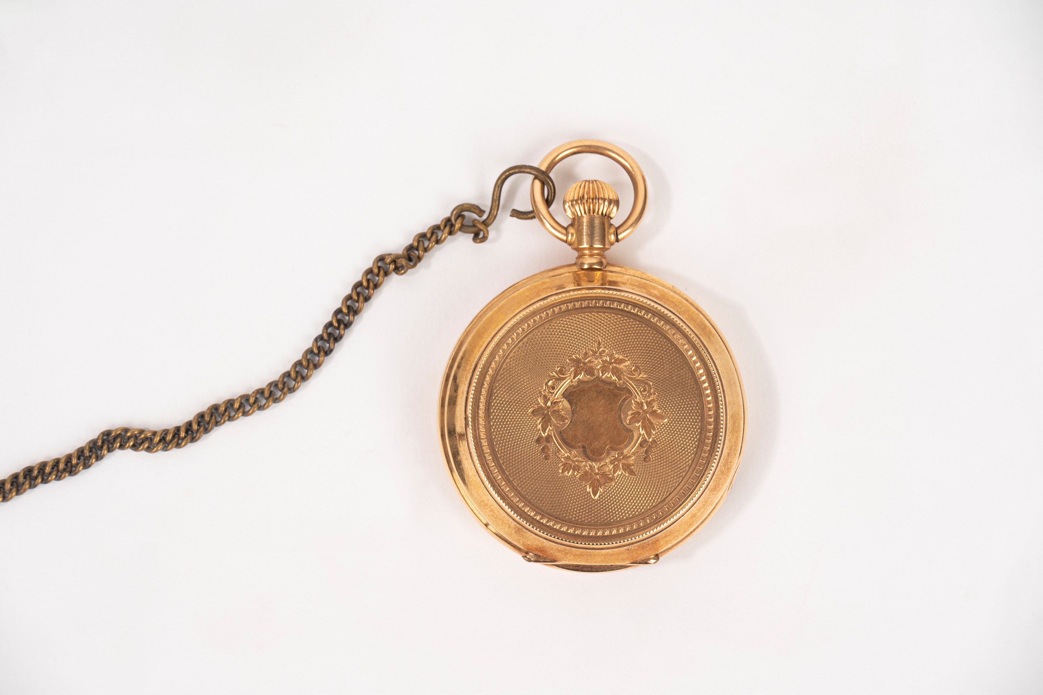 in wooden box, with metal chain