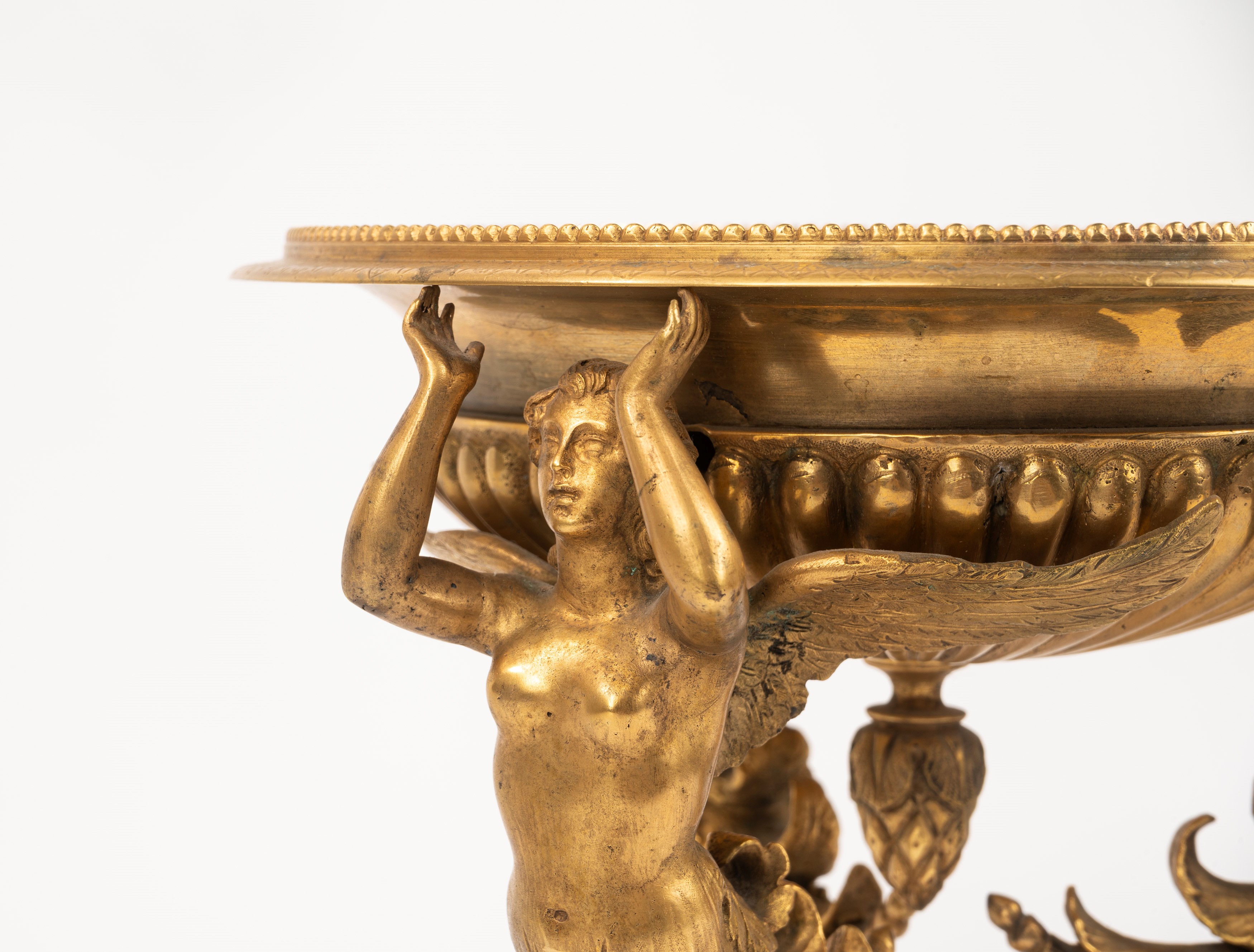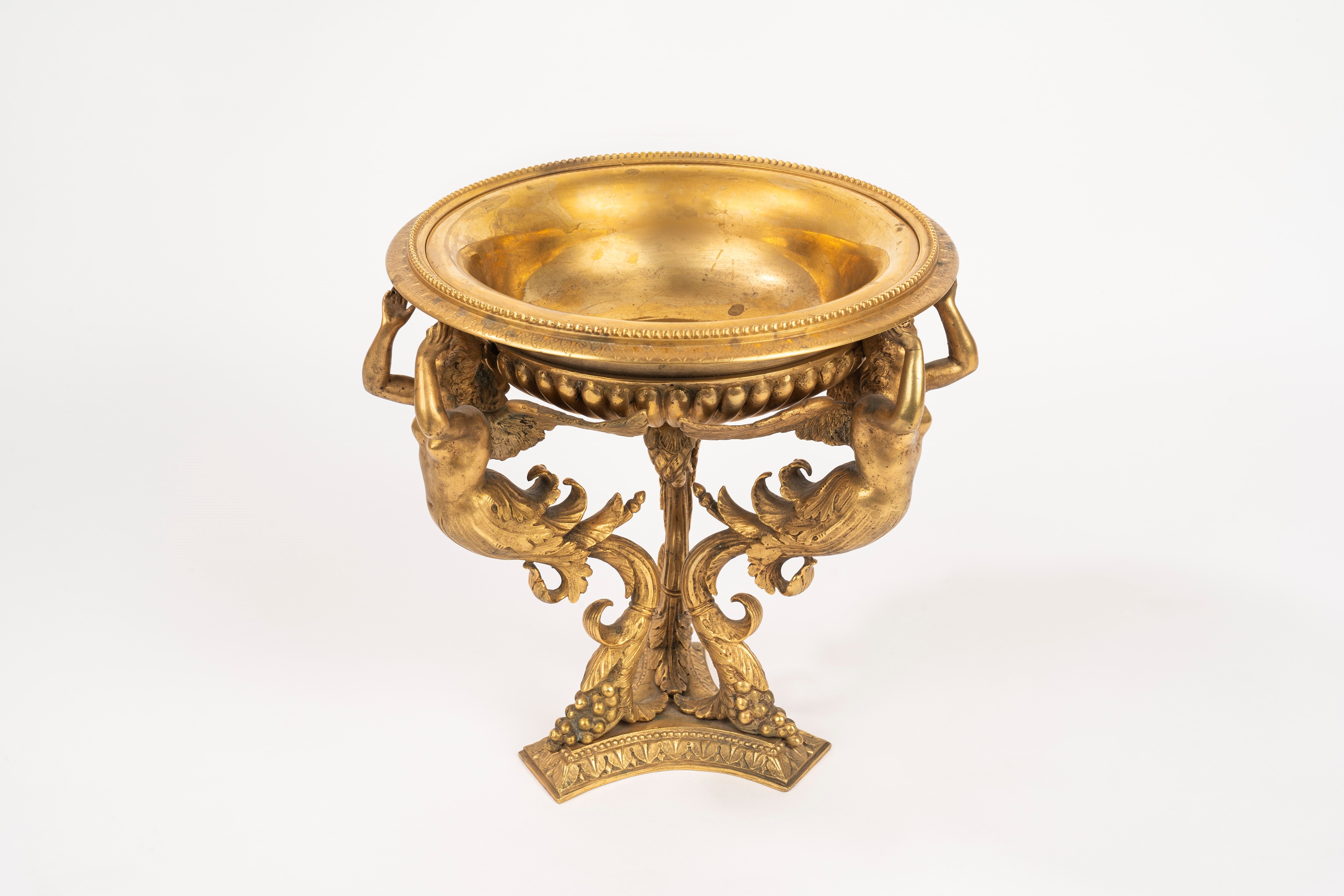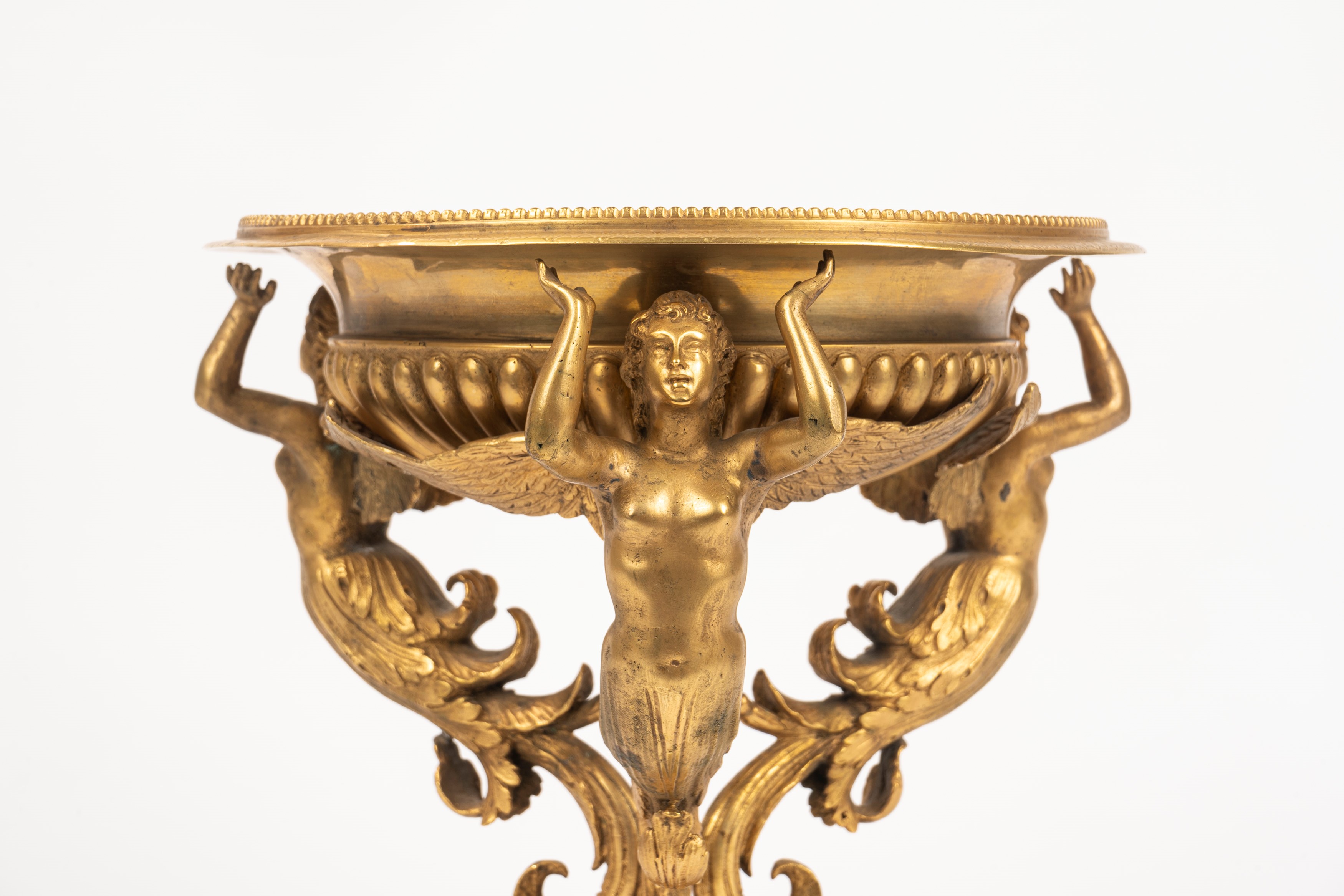 Gilt bronze tripod stand with three winged caryatids, 19th century