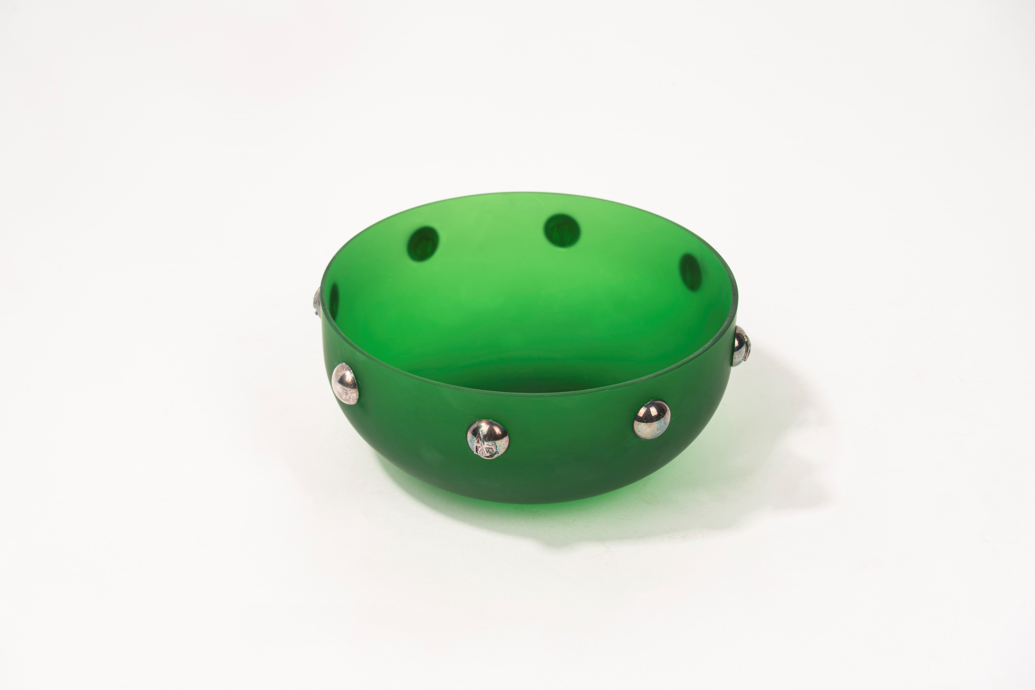 Green satin glass bowl from Murano, Cleto Munari