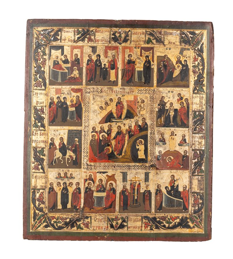 Icon depicting the twelve great feasts of the Orthodox liturgical year, 19th-20th centuries