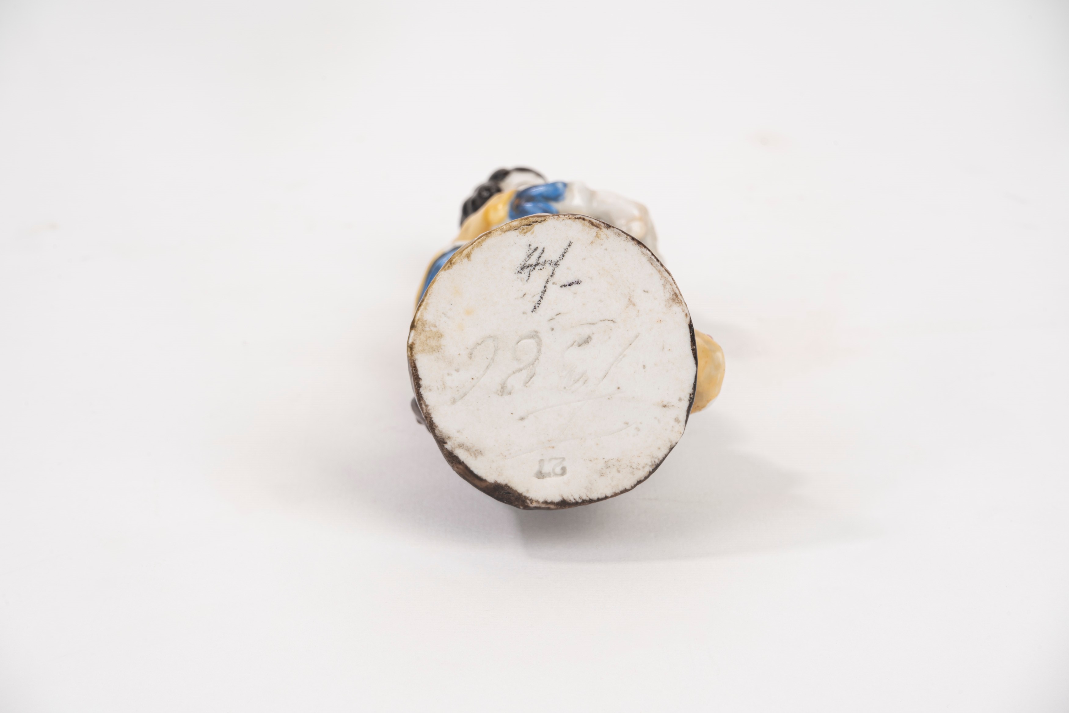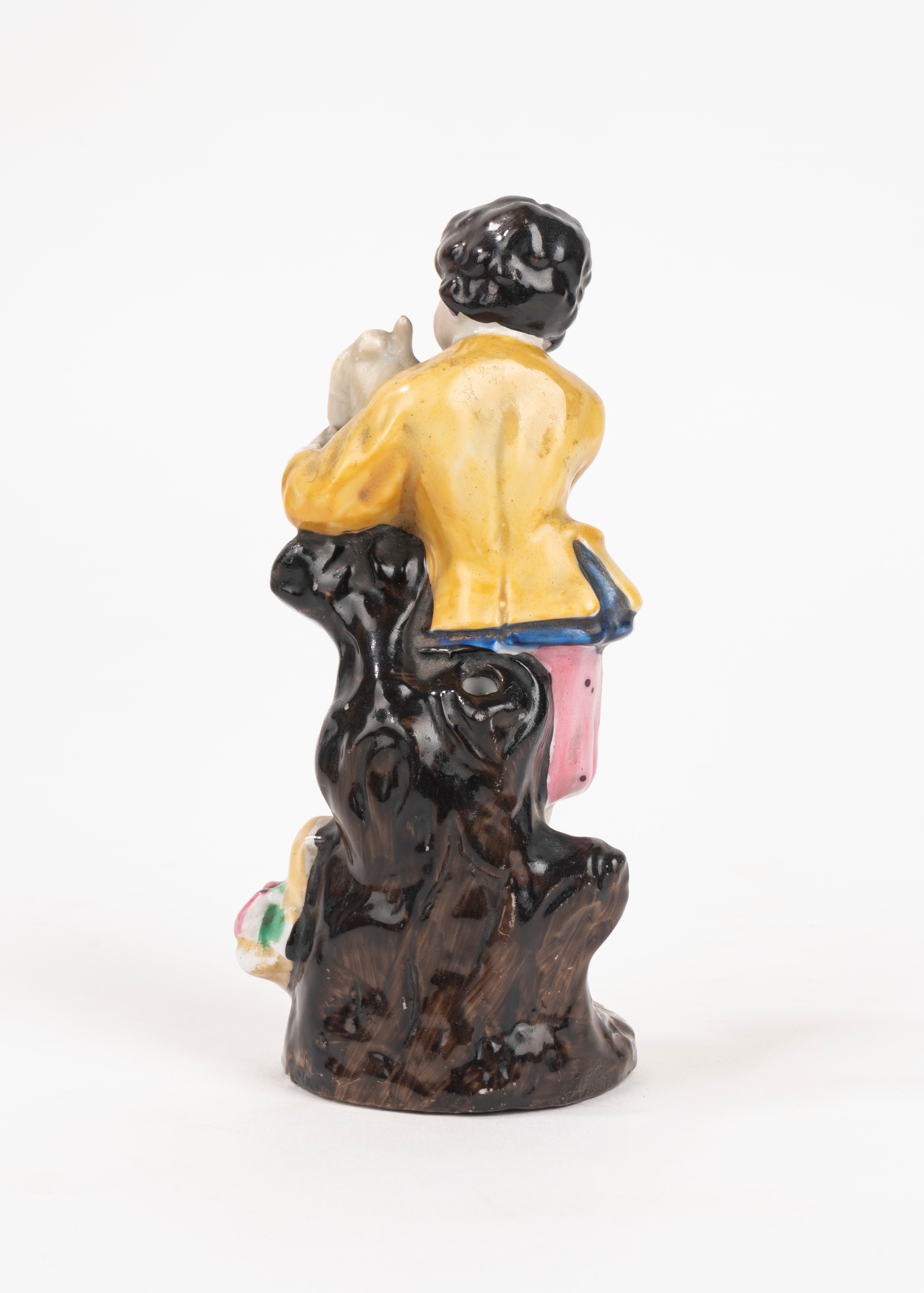 the bottles with silver caps, the plaque depicting Saint Joseph with the Child within a bronze frame, the polychrome porcelain figurine