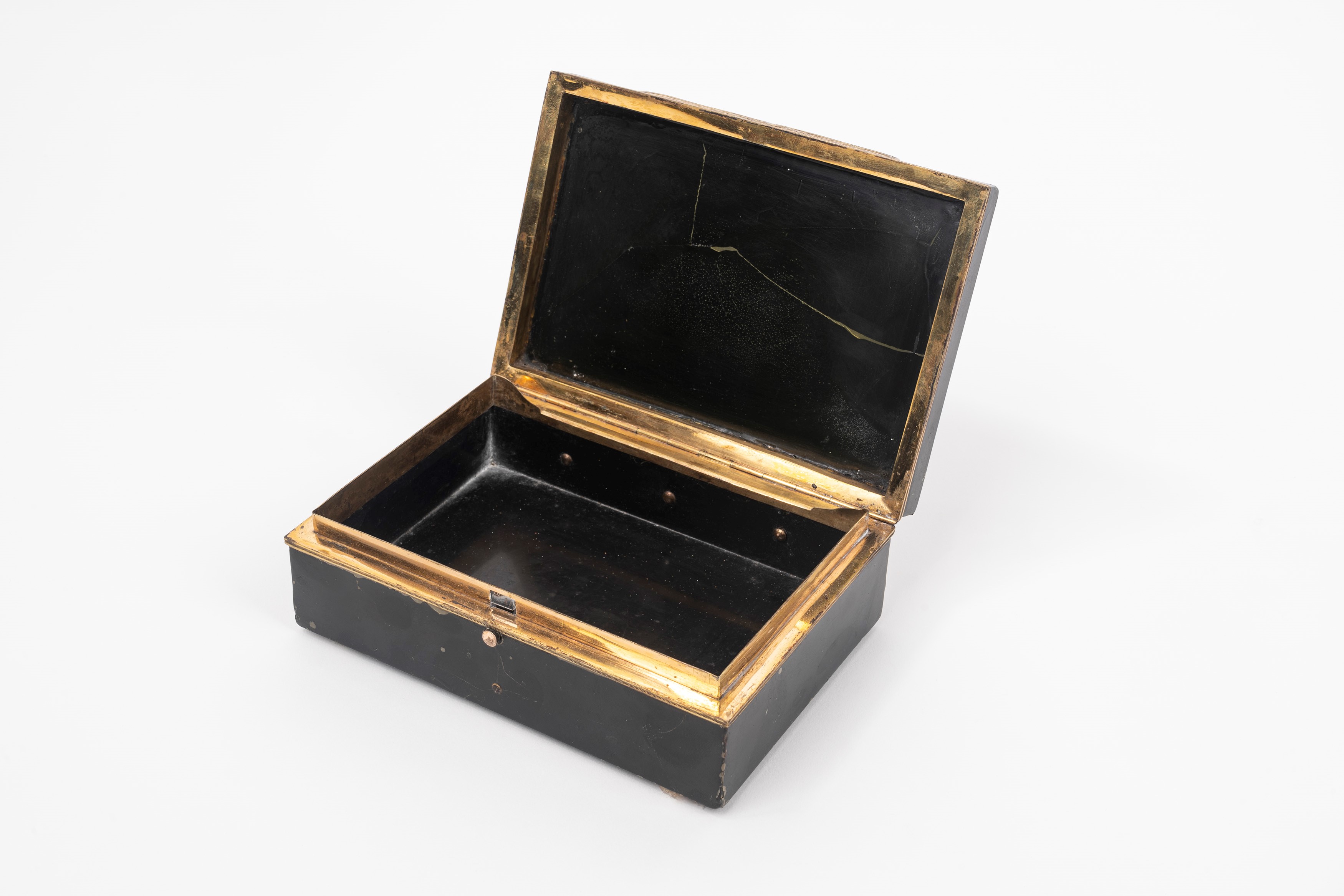 red lacquered lid with inserts in Florentine woodwork and semi-precious stones