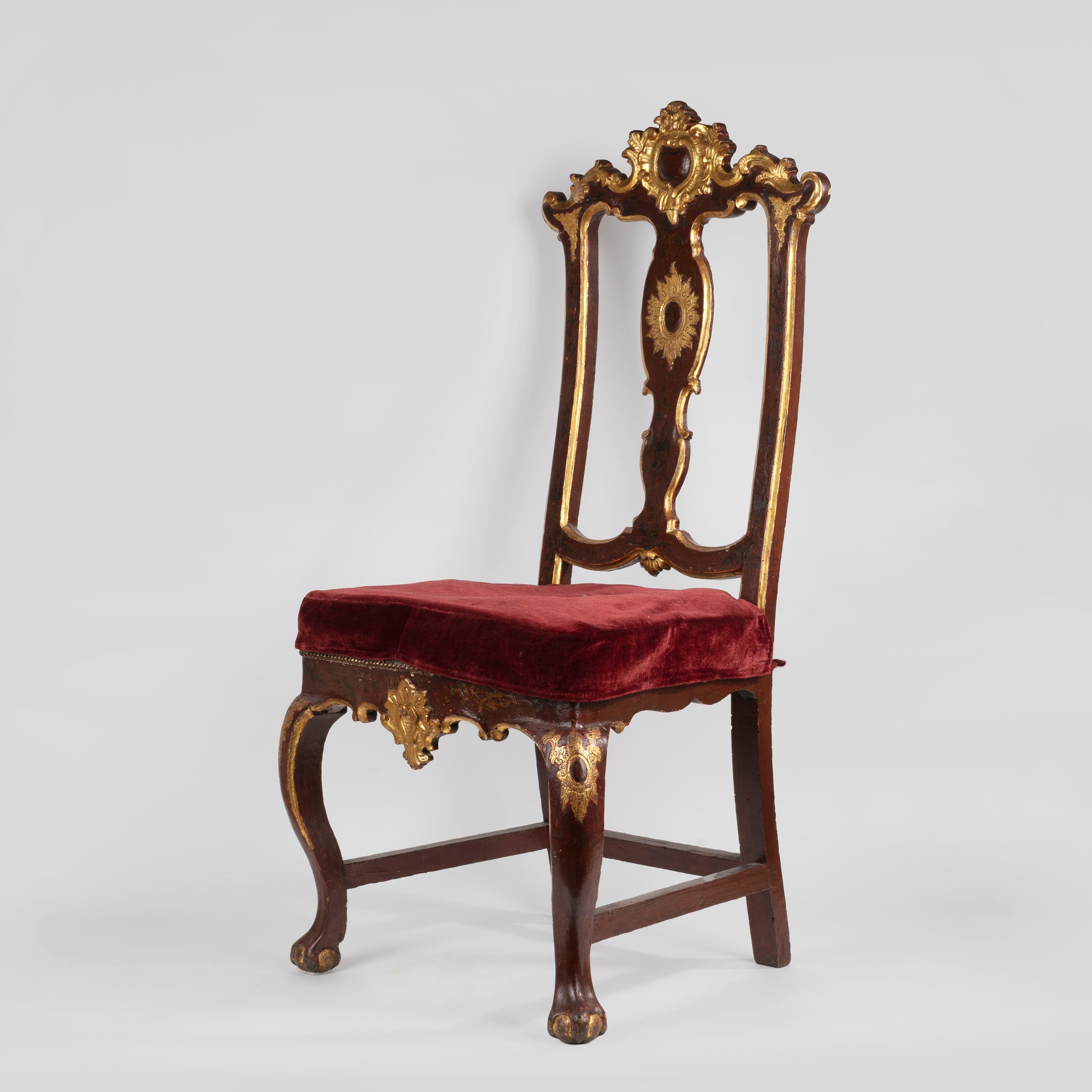 Pair of carved, gilded and lacquered wooden chairs, 18th century