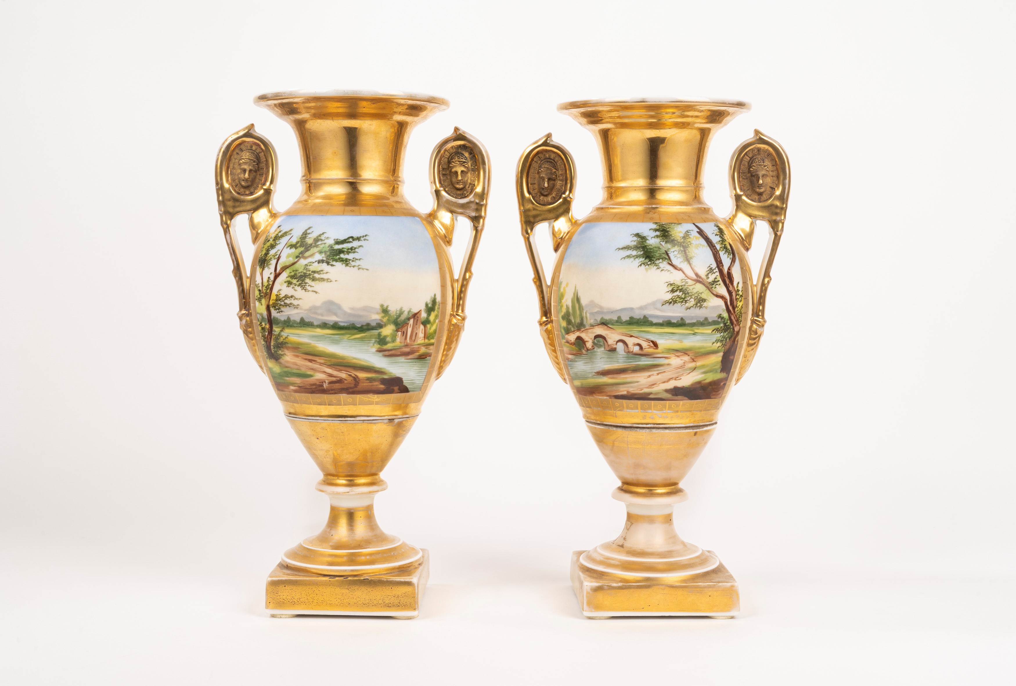 paintings on the front with tavern scenes and on the back with landscapes