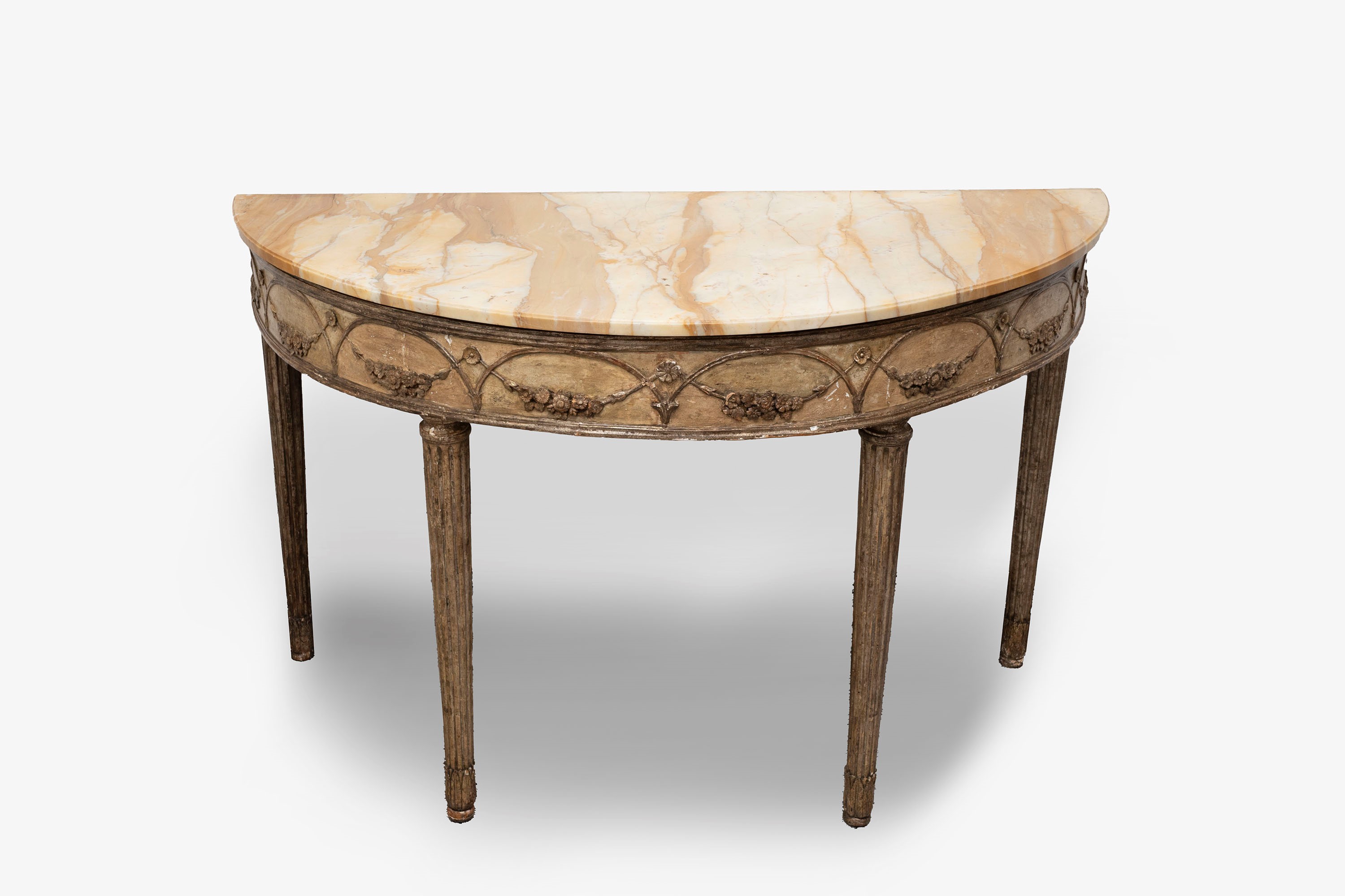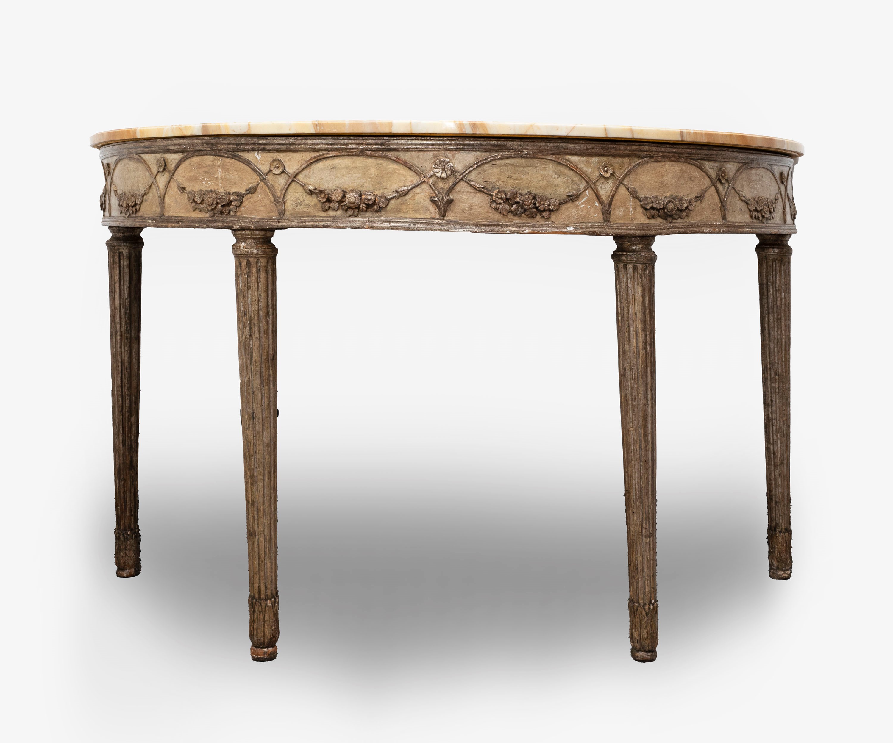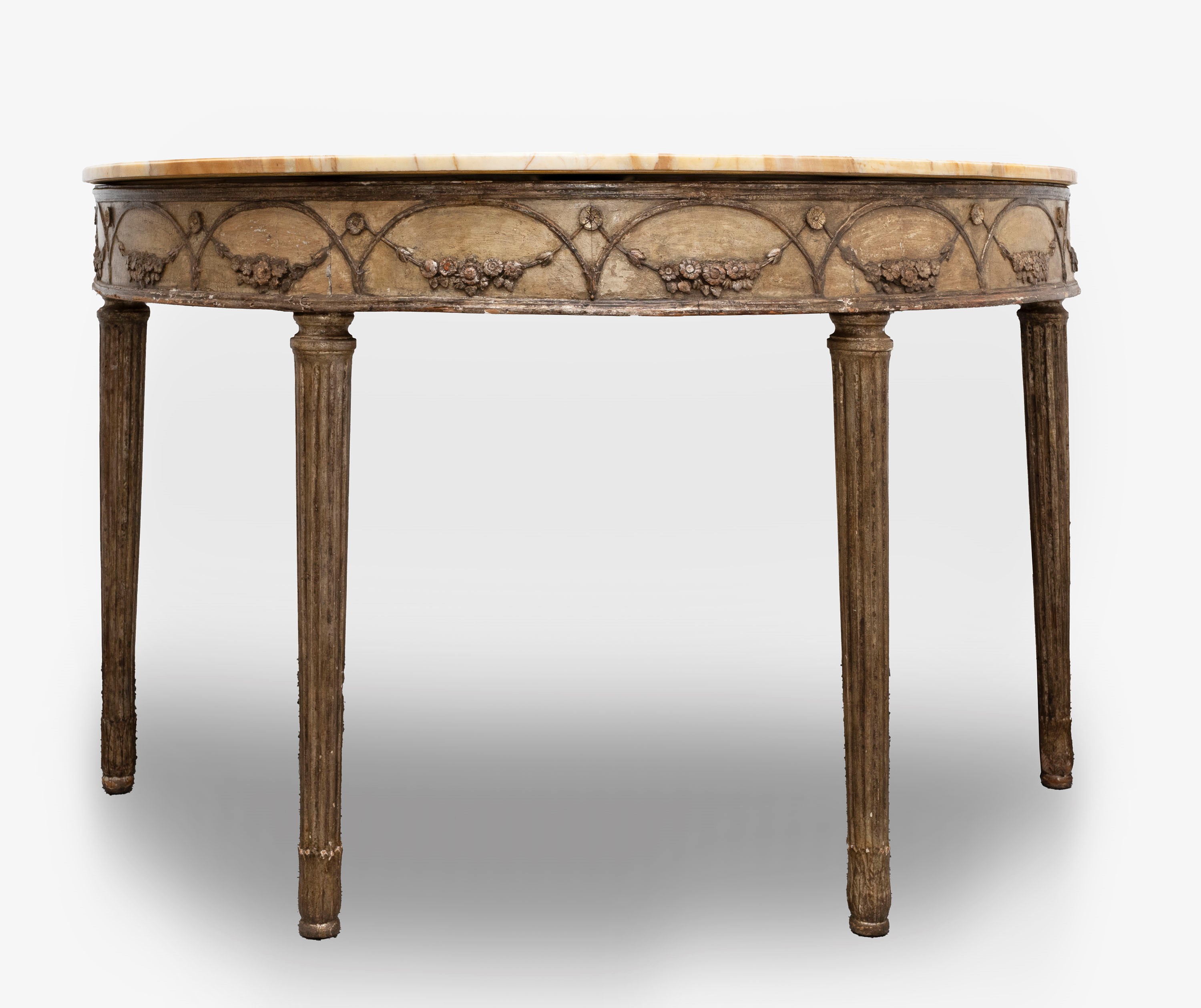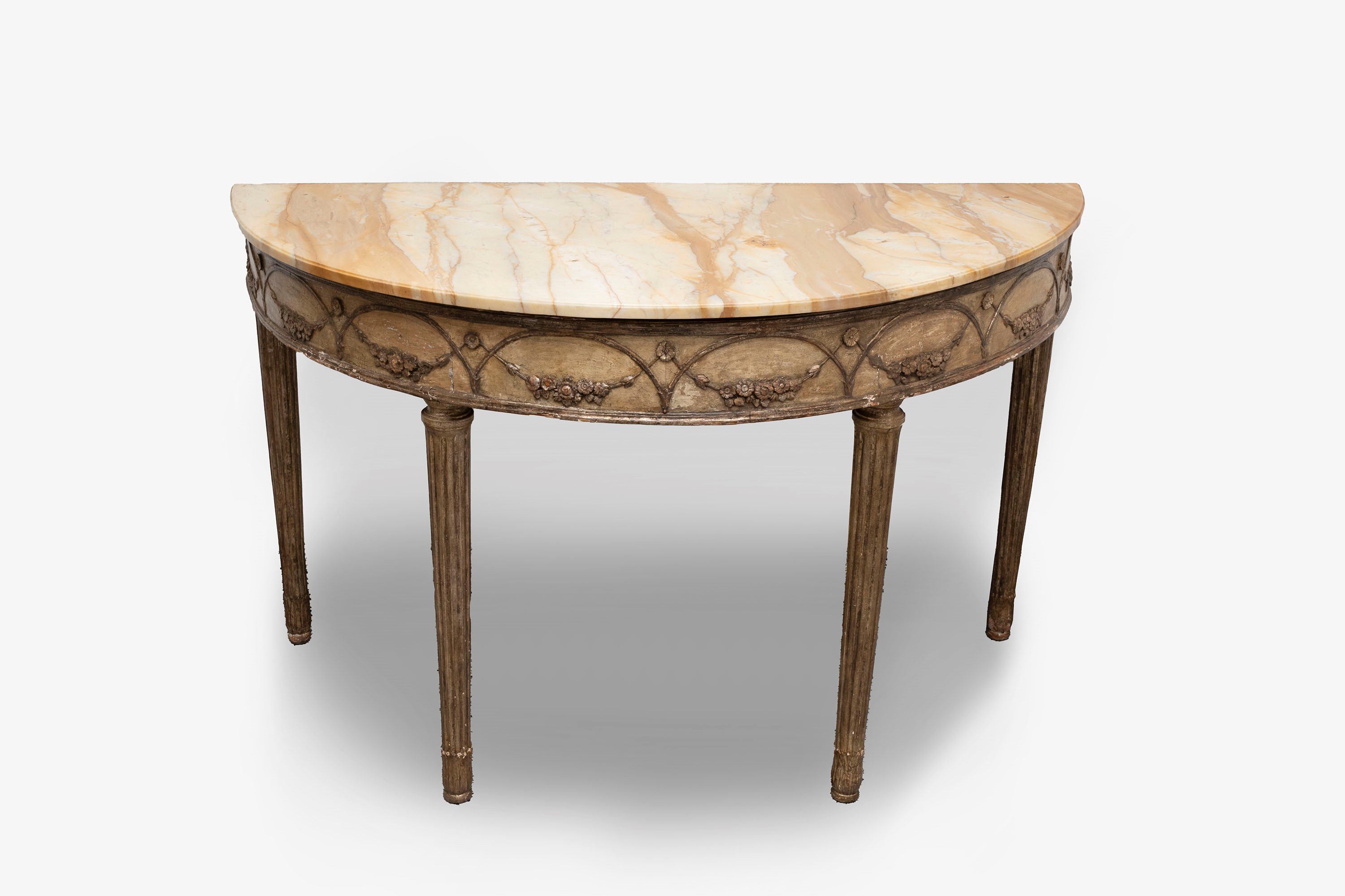 in lacquered wood, with fluted legs ending in palmettes, festoon motif on the front