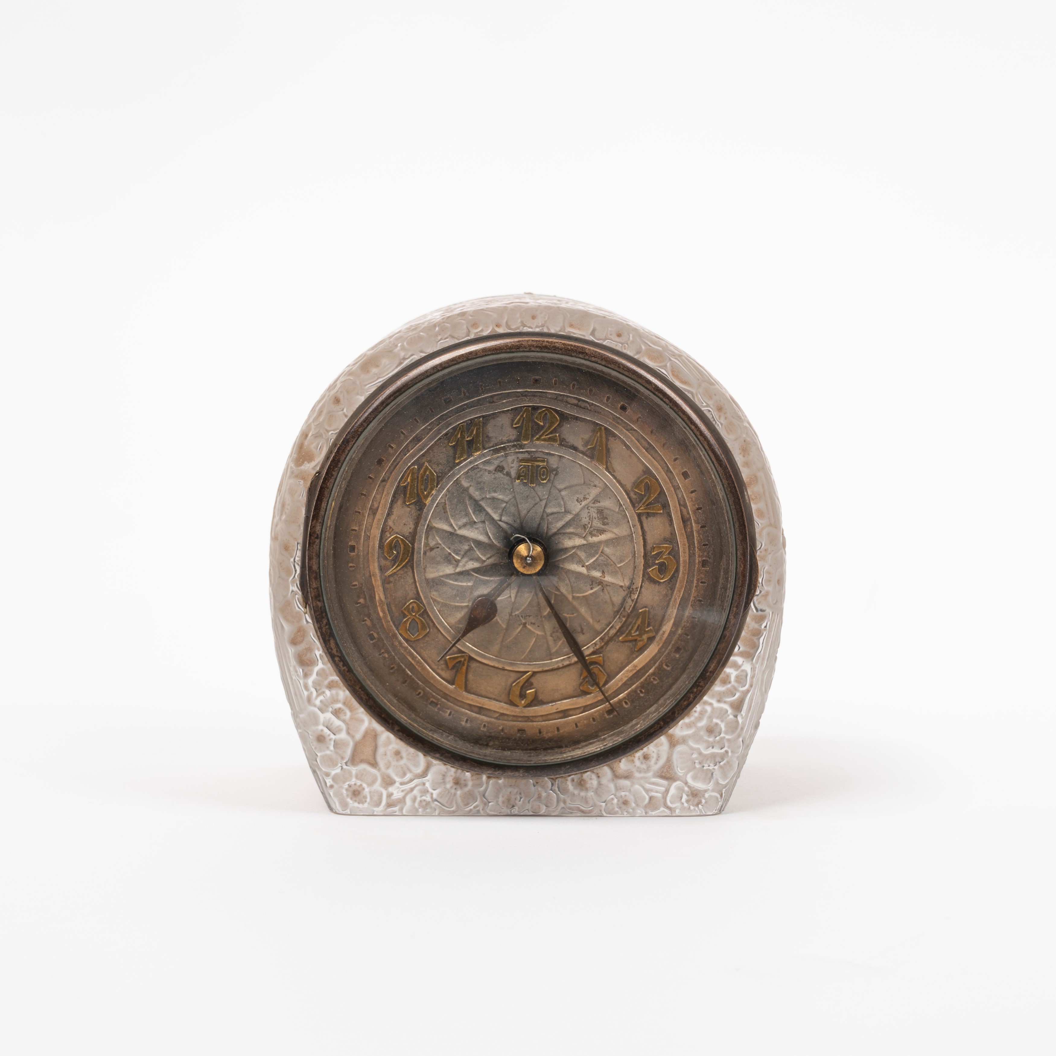 "Eglantines" clock in glass and silvered bronze with ATO mechanism, 1920s-30s