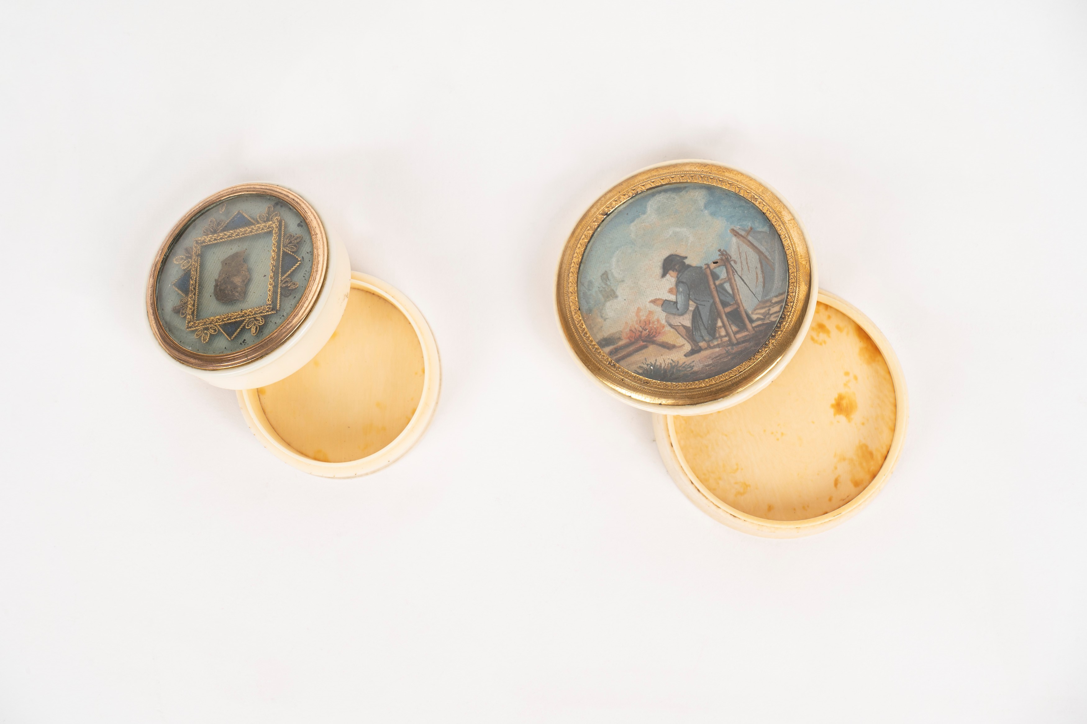 ☼ Two ivory snuffboxes with portraits of Napoleon on the lid, 19th century