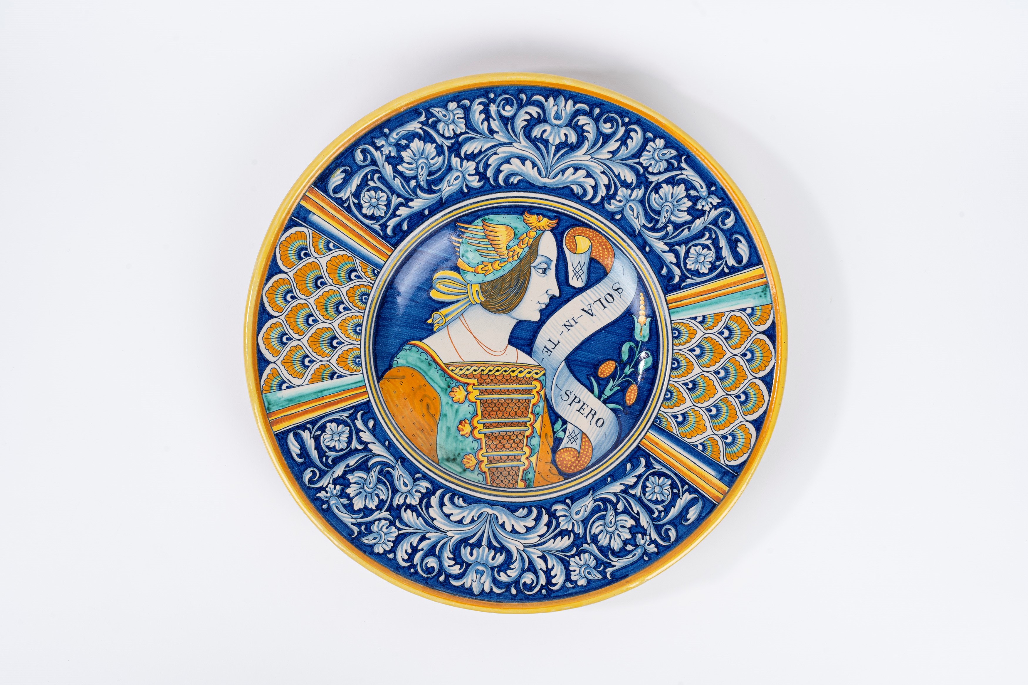 depicting a portrait of a gentleman and a portrait of a gentlewoman in neo-Renaissance style on the center and raceme motifs on the brim.