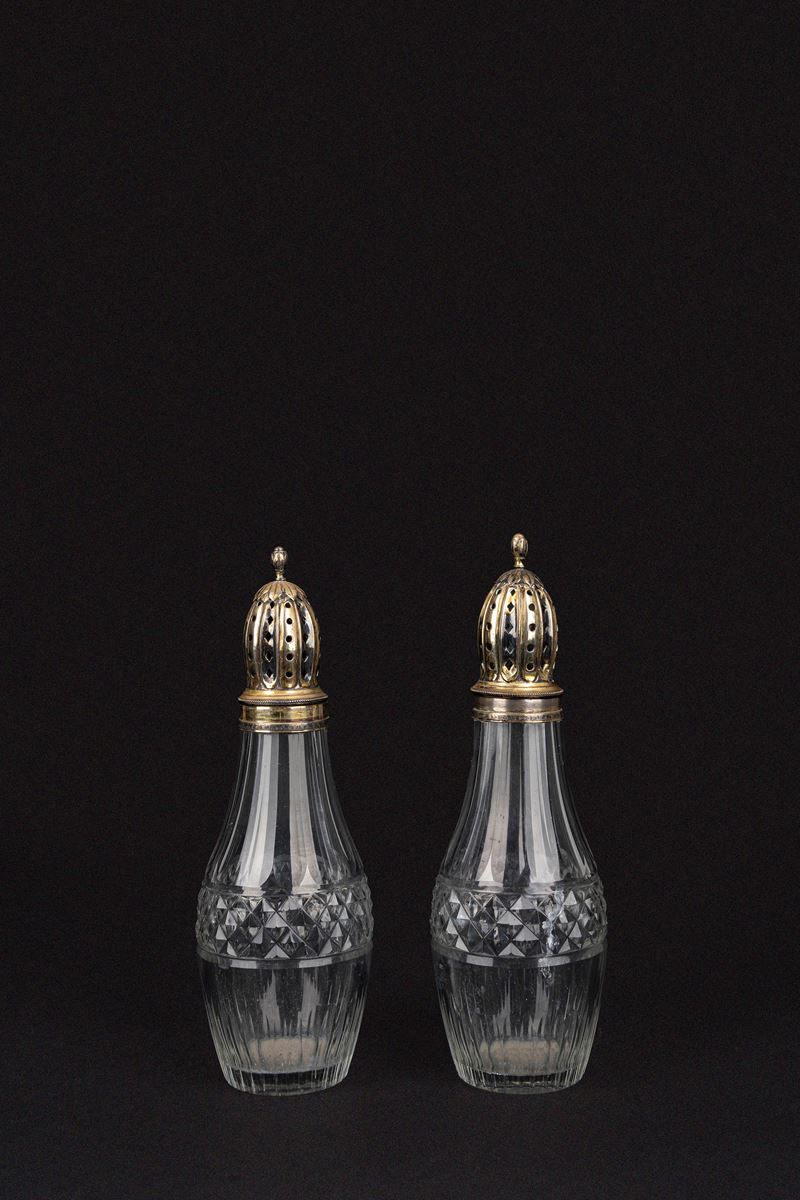 A pair of crystal and silver sugar shakers, Russia, 19th century