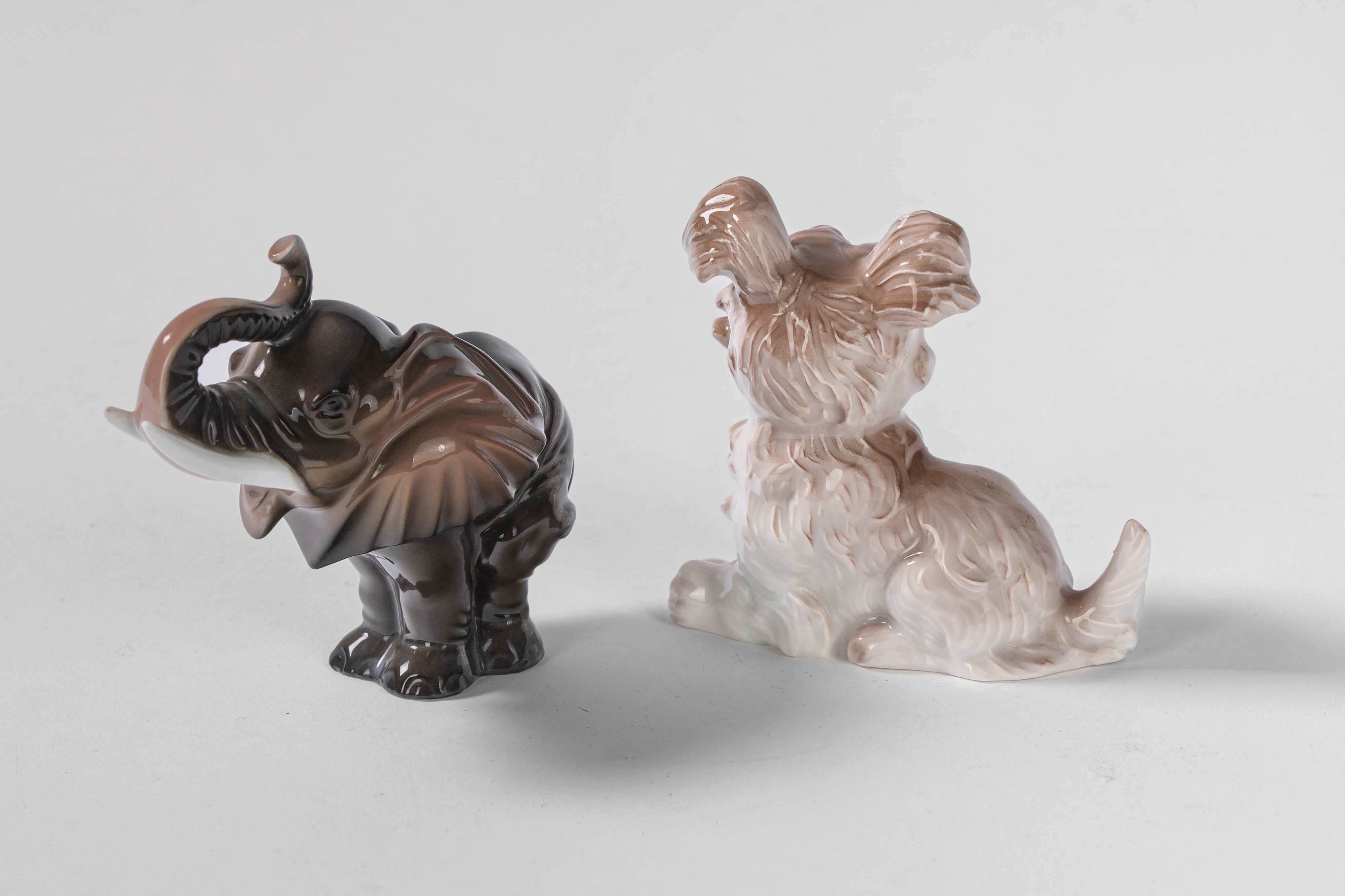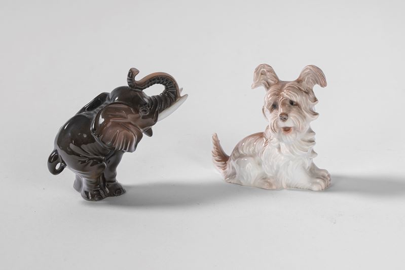 A polychrome porcelain elephant and terrier. Rosenthal, Bavaria, 20th century