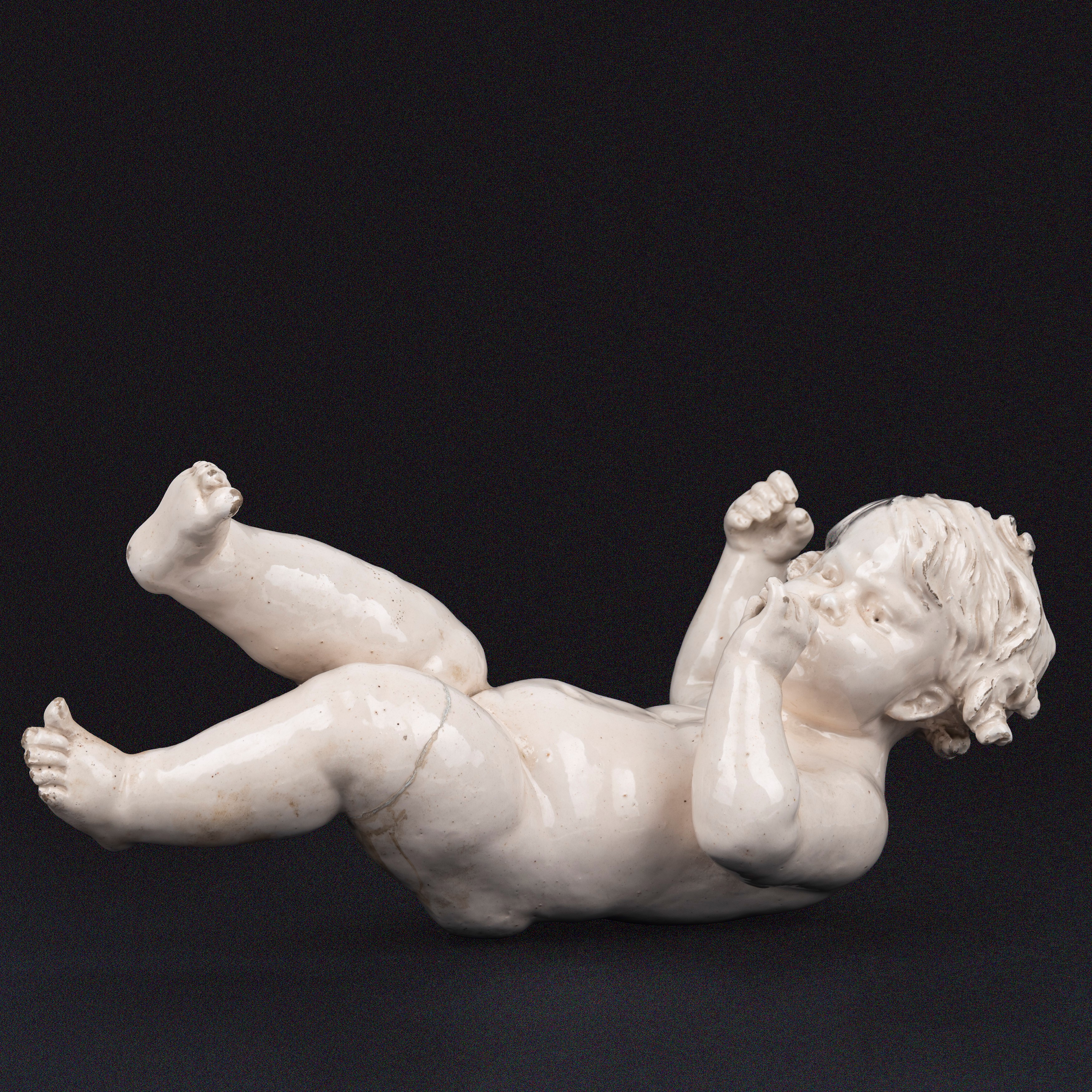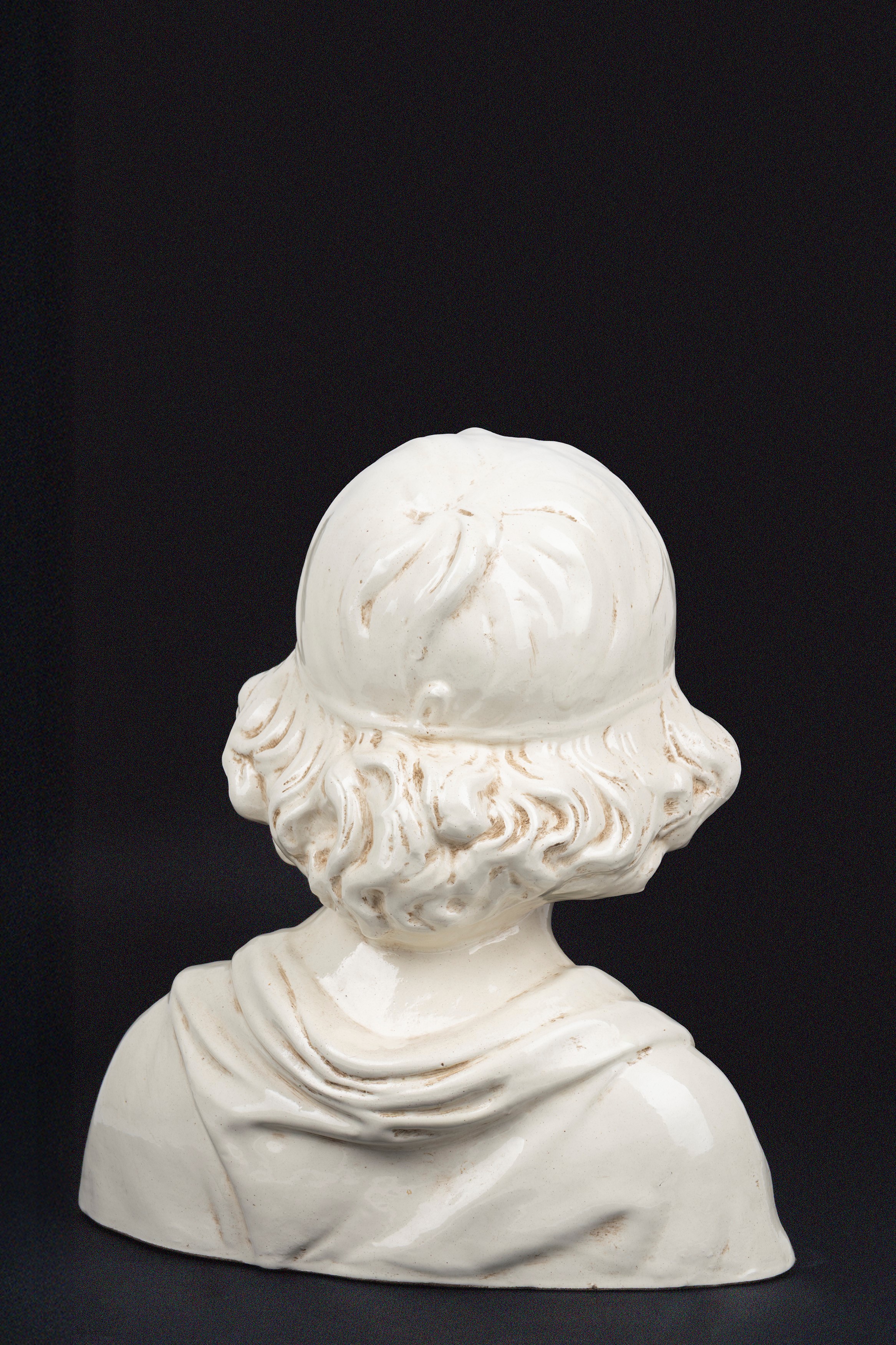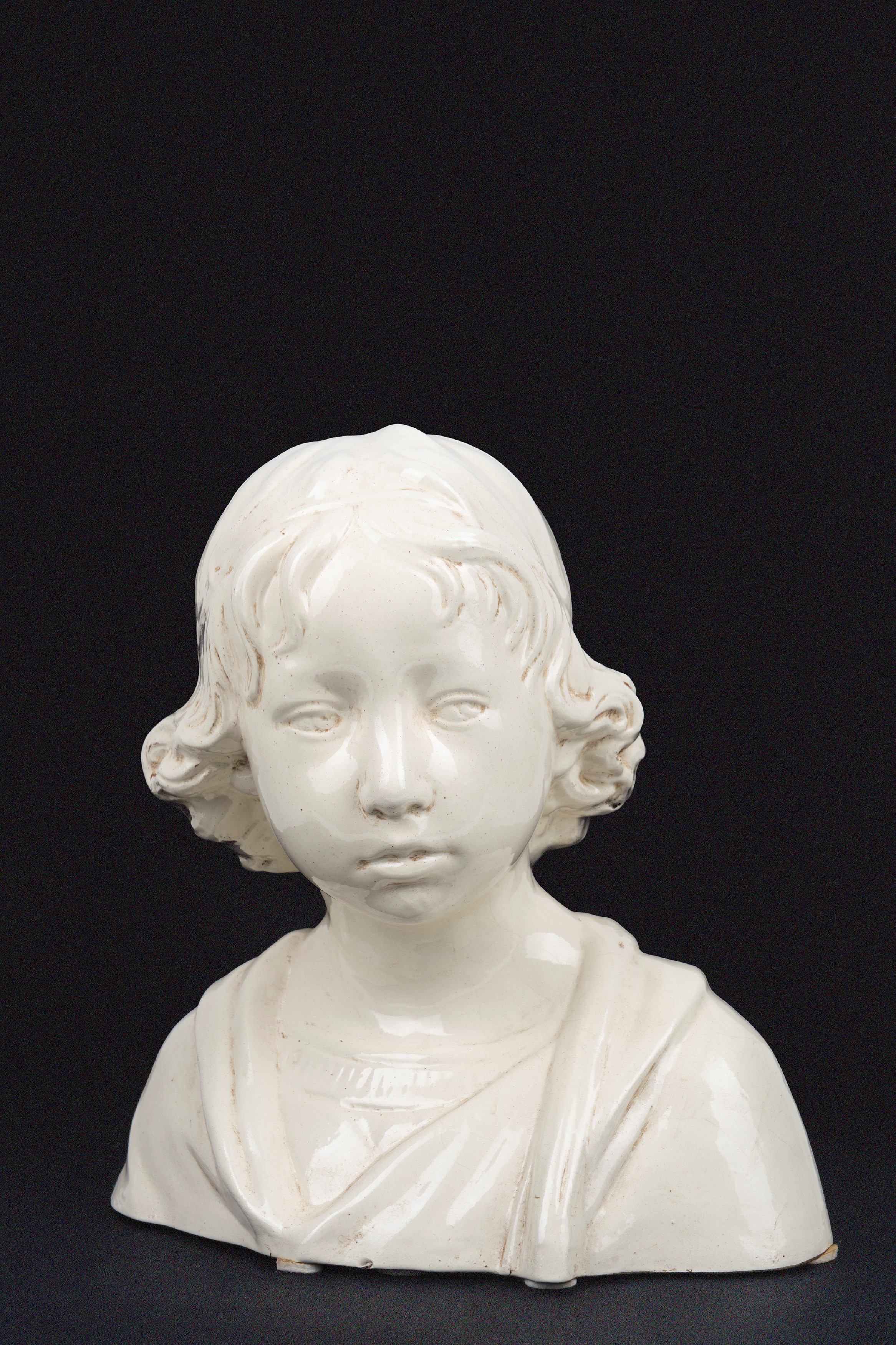 one depicting the bust of a child, by Della Robbia, the other depicting a musician cherub