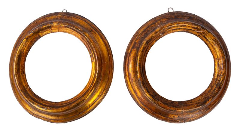 Pair of shaped frames in carved, gilded and black-lacquered wood, 18th century