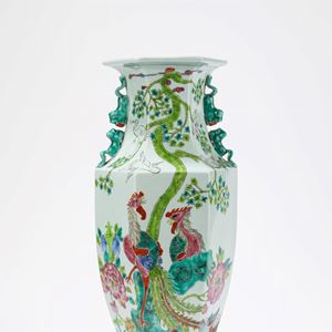 Vaso esagonale in porcellana Famiglia Rosa. Cina secolo XX