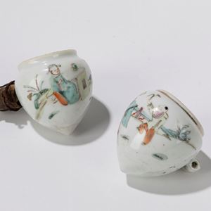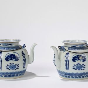 Coppia di teiere in porcellana bianche e blu. Cina, inizi secolo XX