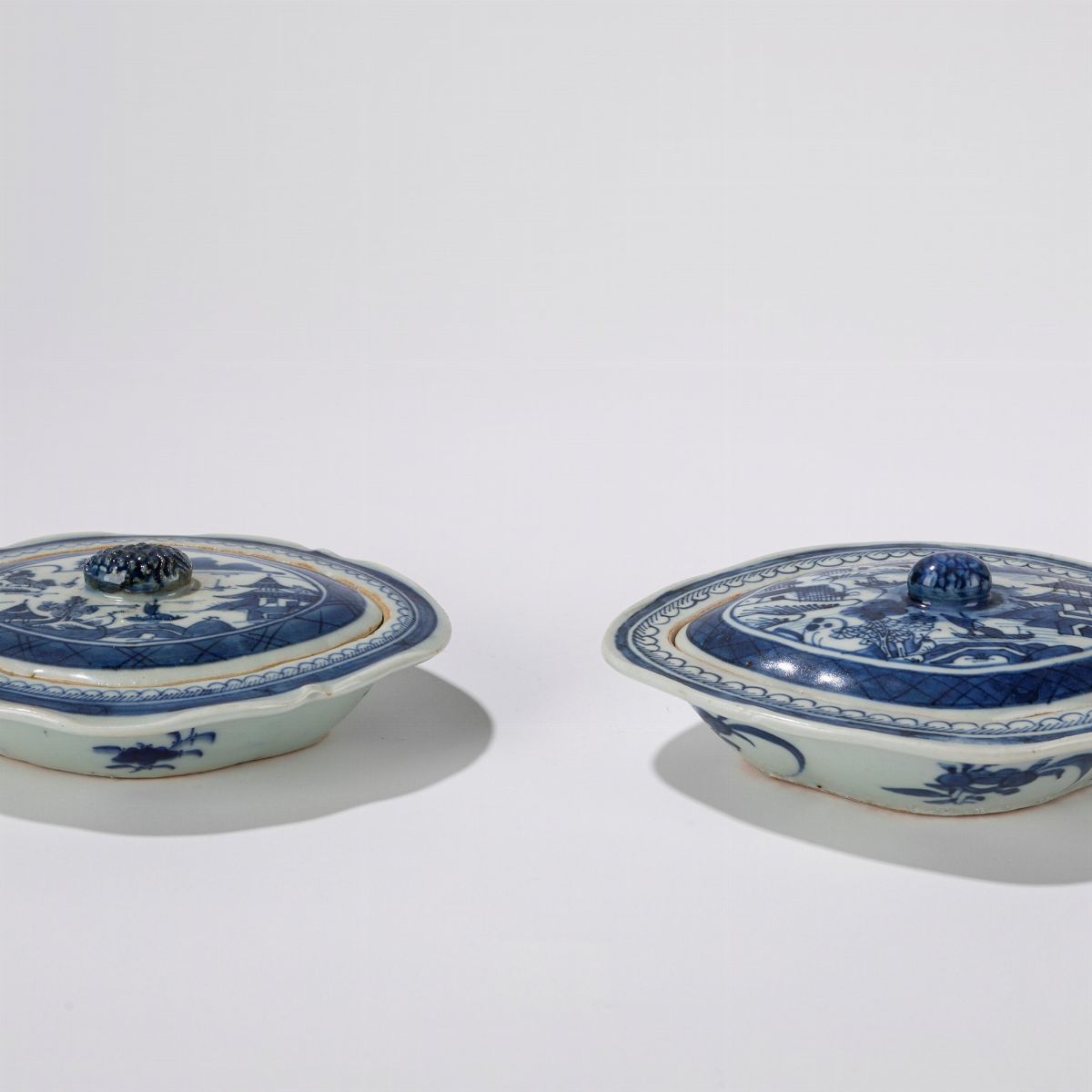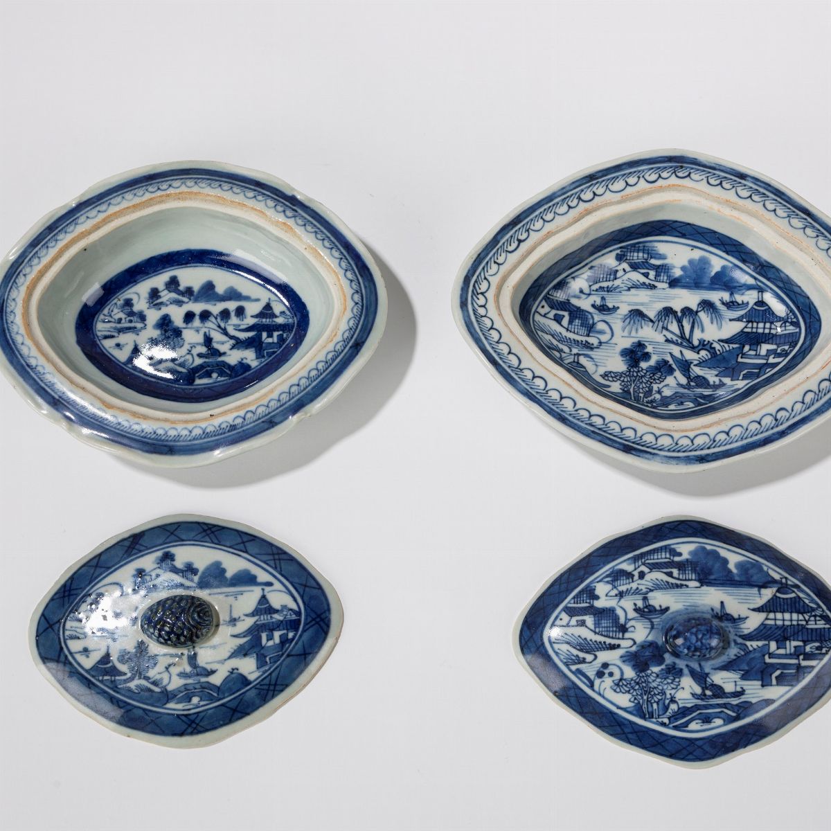 Due piccoli abbeveratoi per gabbie in porcellana. Cina, inizi secolo XX