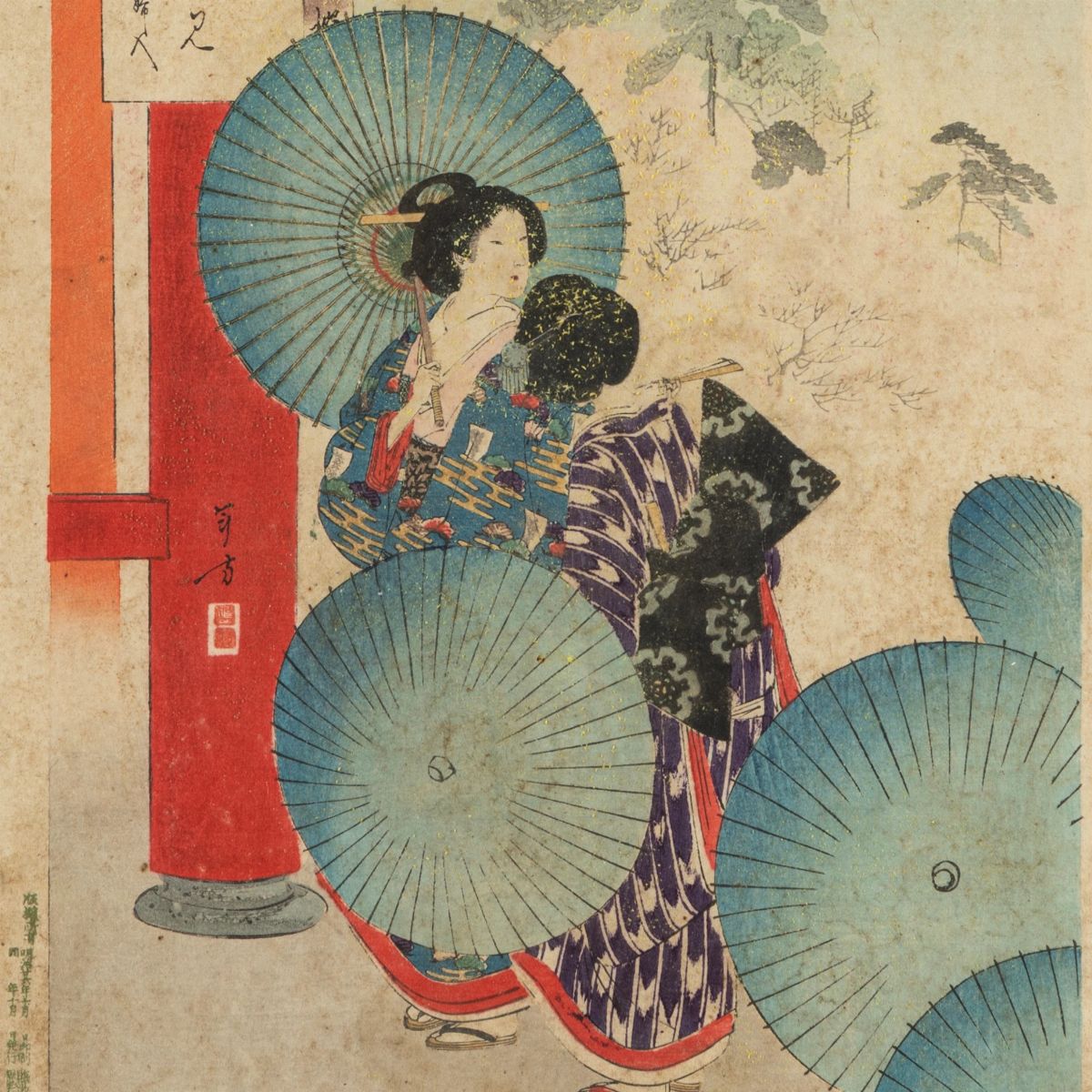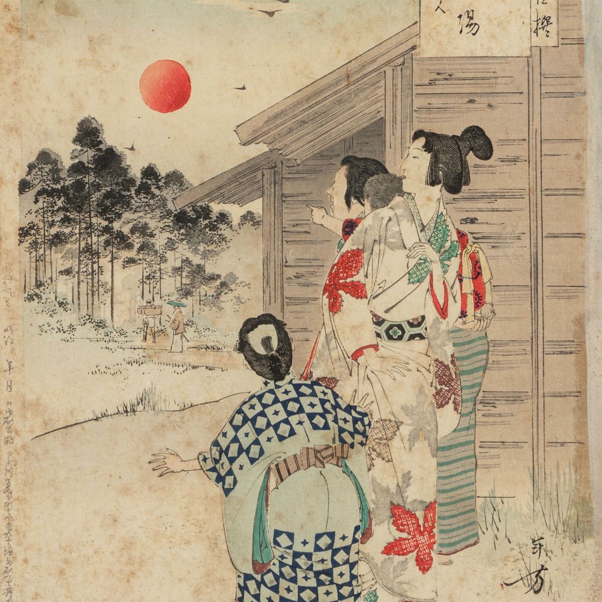 Lotto composto da sei incisioni di scuola Ukuyo-e. Giappone, periodo Meiji (1868-1912)