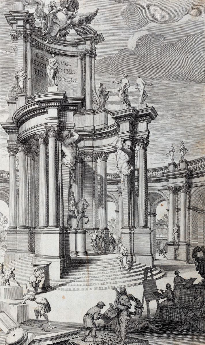 Rome, Antonio de Rossi, 1723. In 2°. Portrait, frontispiece, 102 full-page plates, plate 100 not printed, browning and marginal tears without loss, contemporary loose parchment binding. § Pars Secunda. Rome, Jacobus Komarek Boemi, 1700. In 2°. Frontispiece with restoration in the lower corner, title page with repair of a lower gap, 116 plates (of 119), plates 44, 47 and 59 missing, small tears and browning, contemporary loose parchment binding. This copy belonged to Antonio Maria Turri, a painter from Legnano (1769-1853).