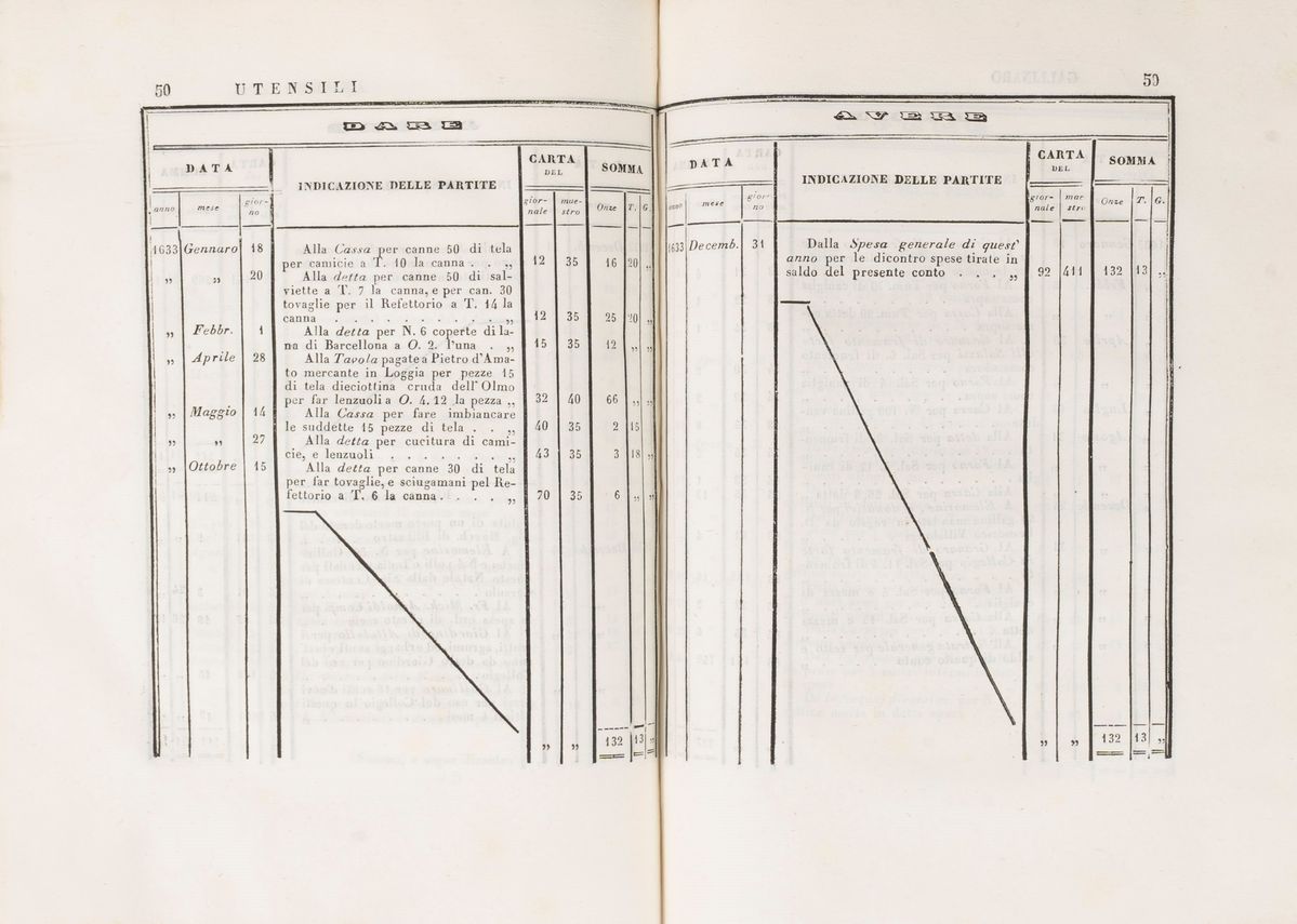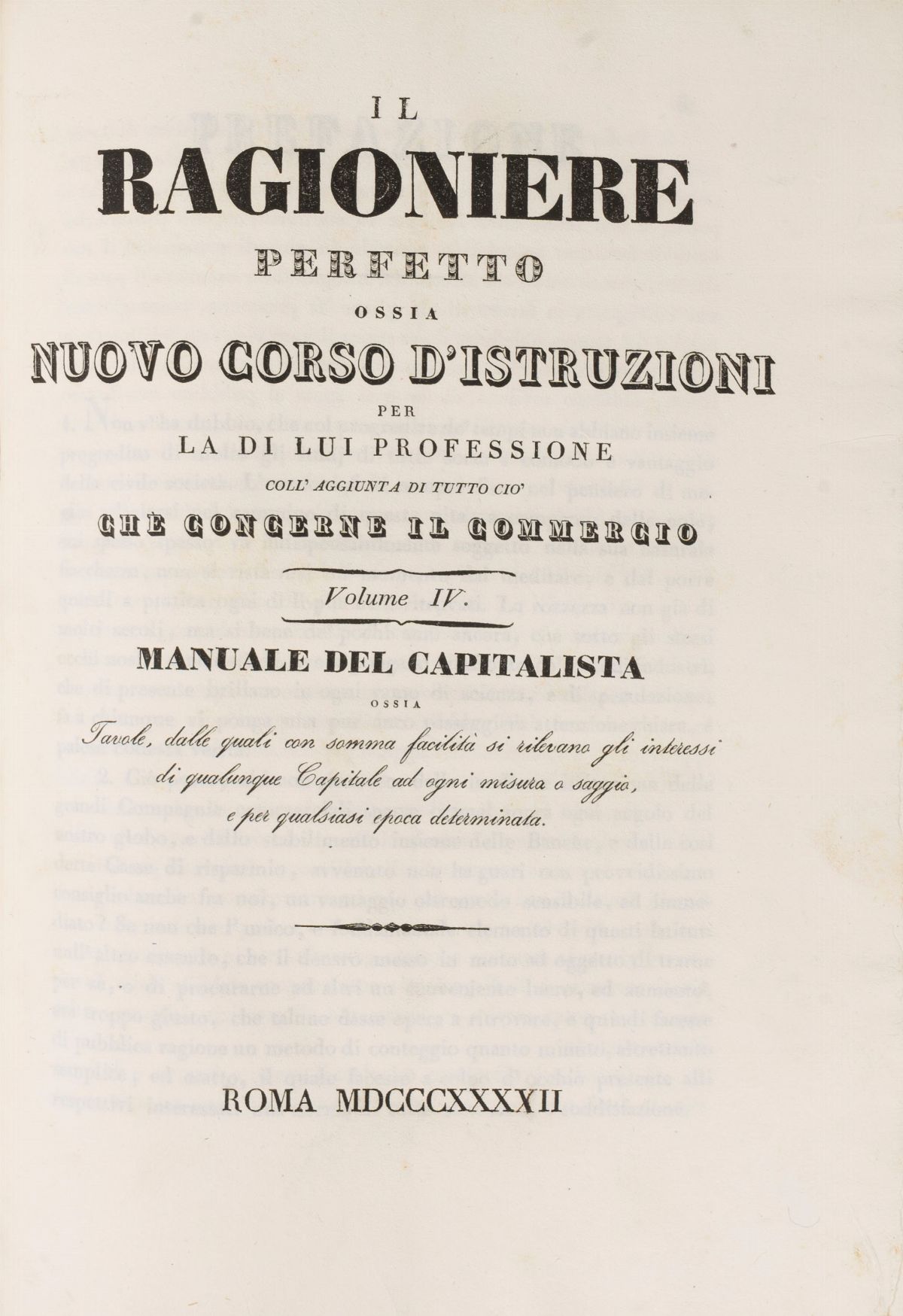 Rome, Alessandro Monaldi, 1839. Large 4vo. 5 volumes in 2 tomes. With numerous in-text tables, some of which are folded. Light foxing. Small, lossless tear in the inner margin of one plate. Contemporary half-vellum and marbled paper binding. Minor defects.