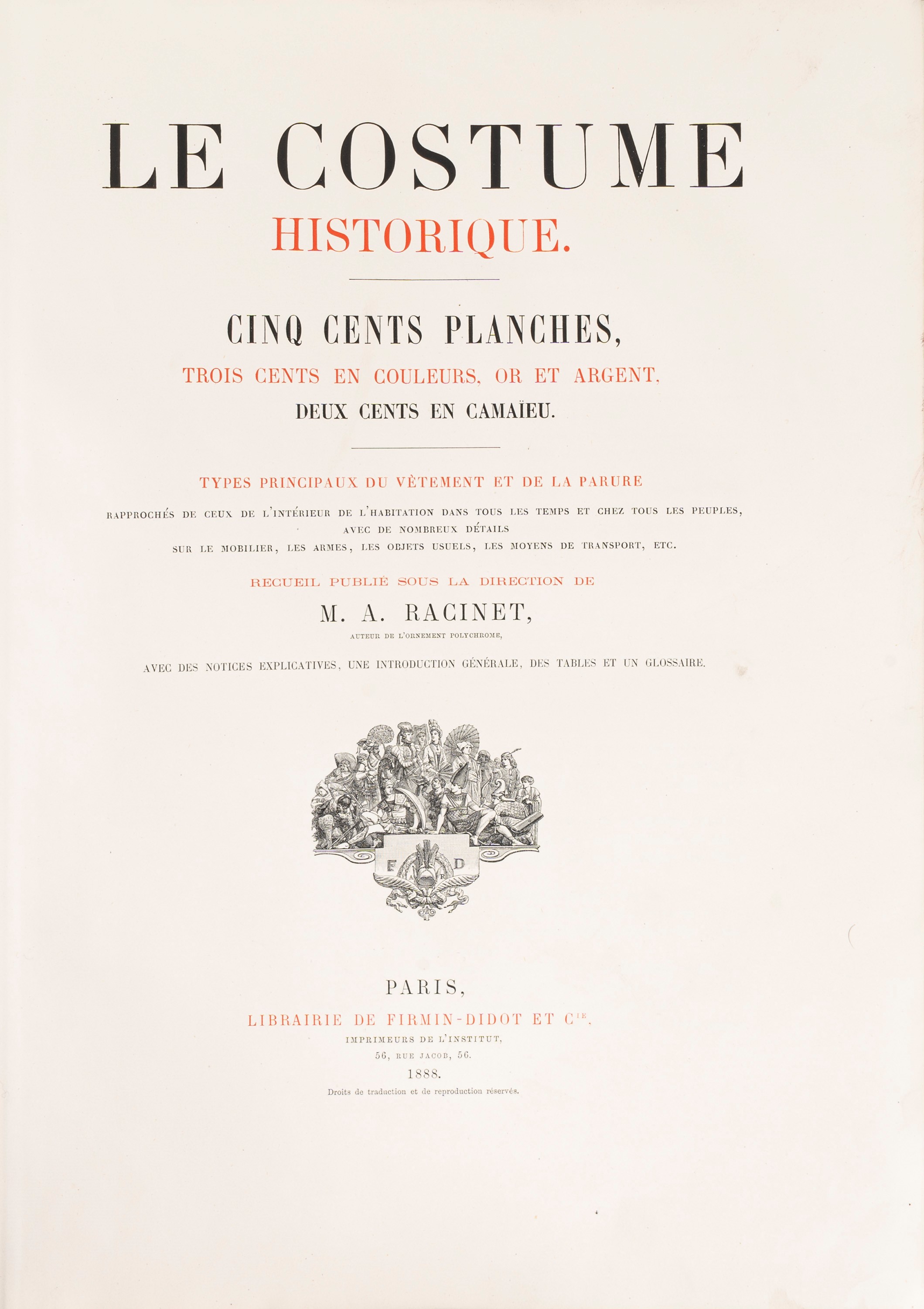 Le Costume Historique. Five cents planches, three cents in colors, gold and silver, two cents in cash, 1888