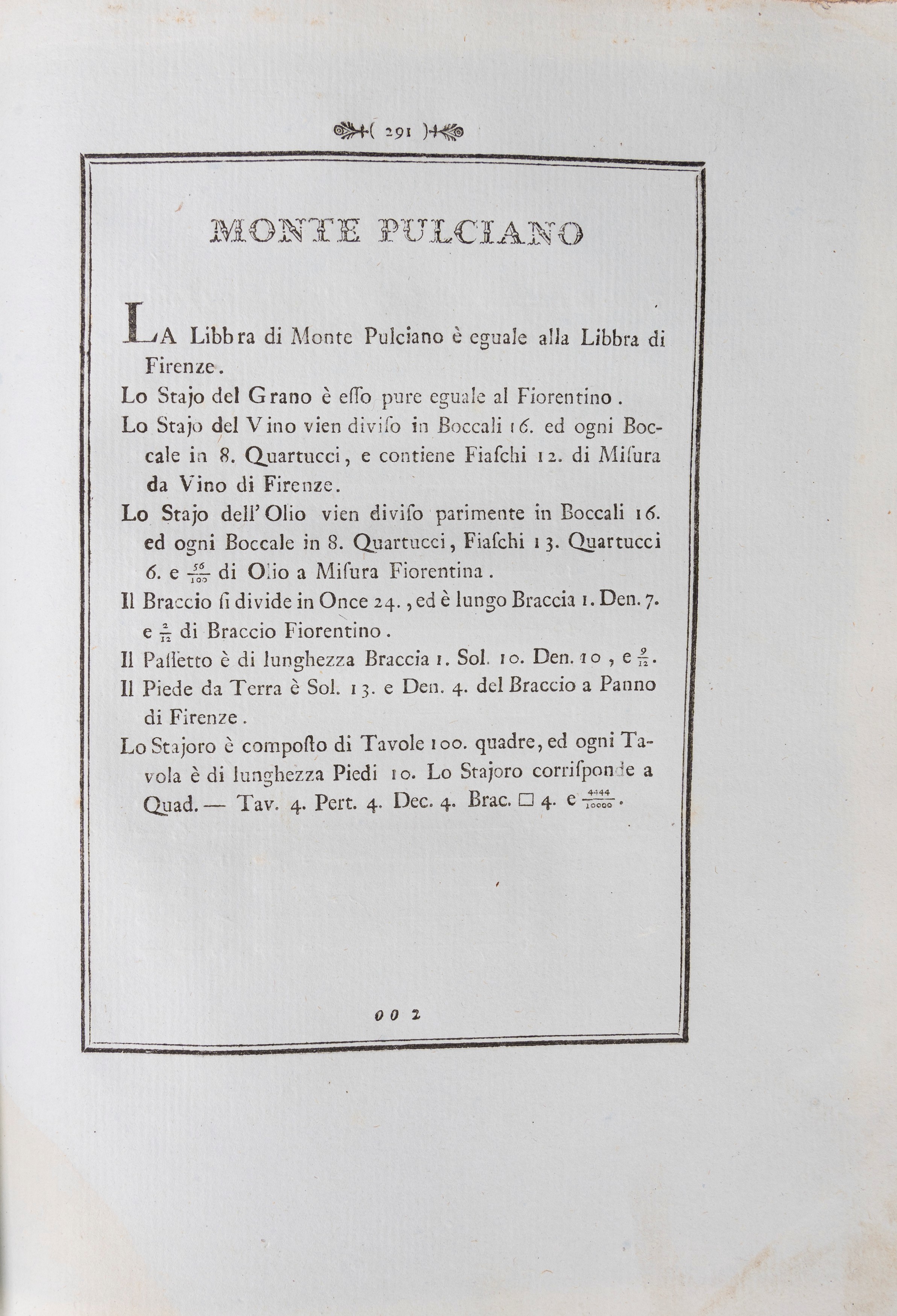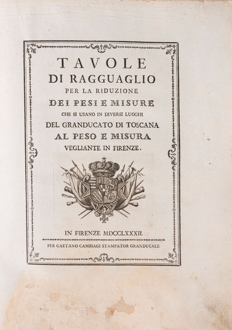 Comparison tables for the reduction of weights and measures used in various places in the Grand Duchy of Tuscany to the weight and measure in force in Florence, 1782