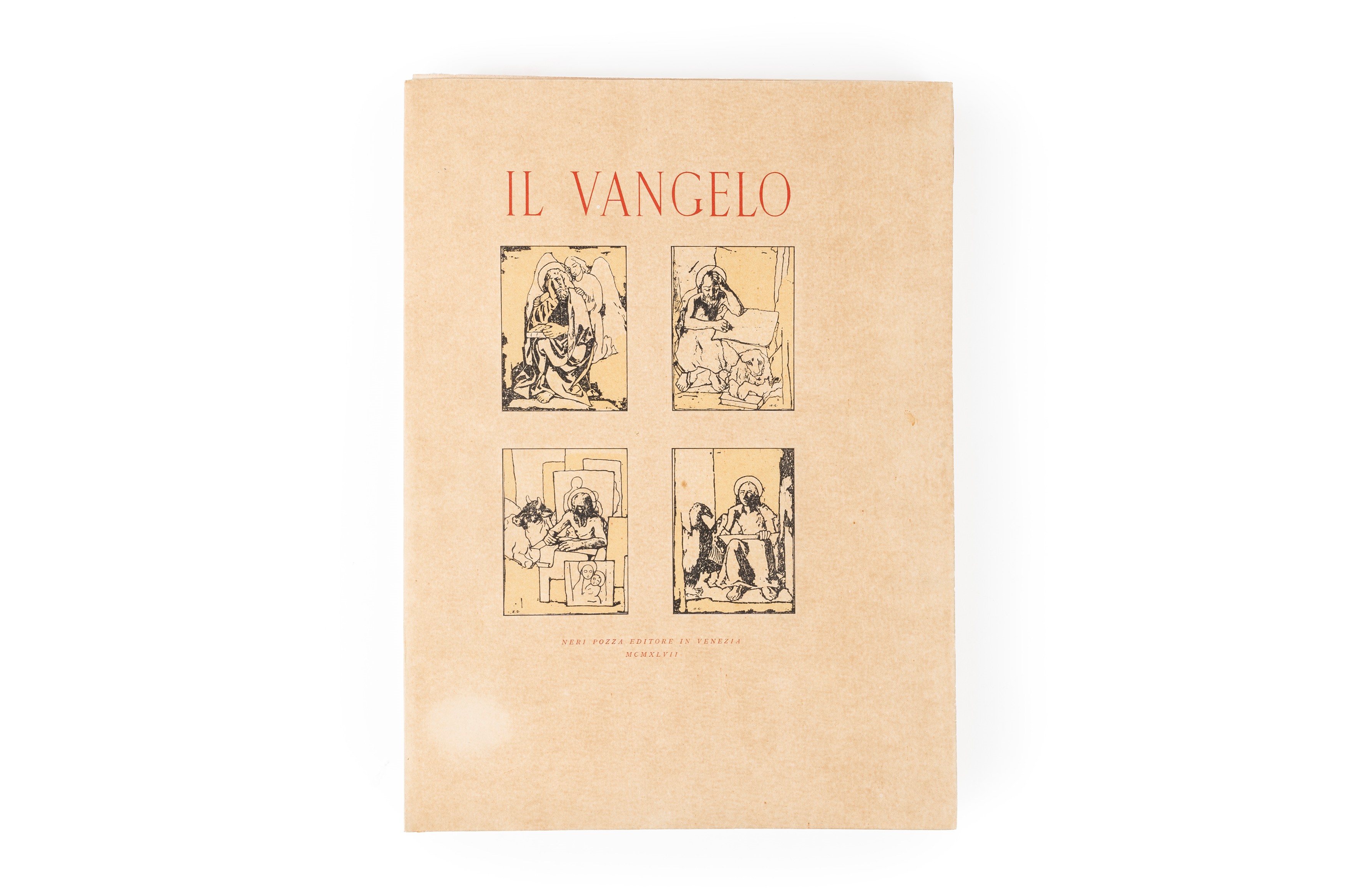 Venice, Neri Pozza, 1947. 4vo. Illustrated paperback, with red titles on the front cover, loose copies, hardback slipcase with defects. With four color lithographs by Felice Casorati outside the text. Our copy is number 442, of a print run of 1,025.