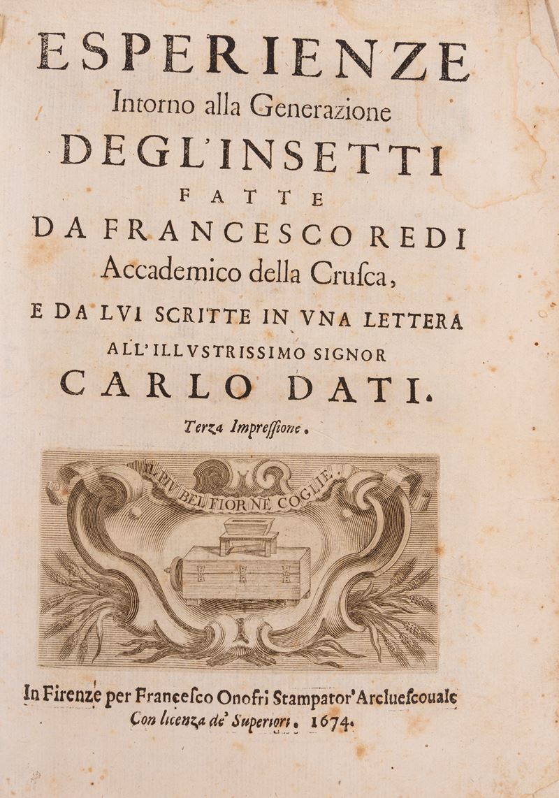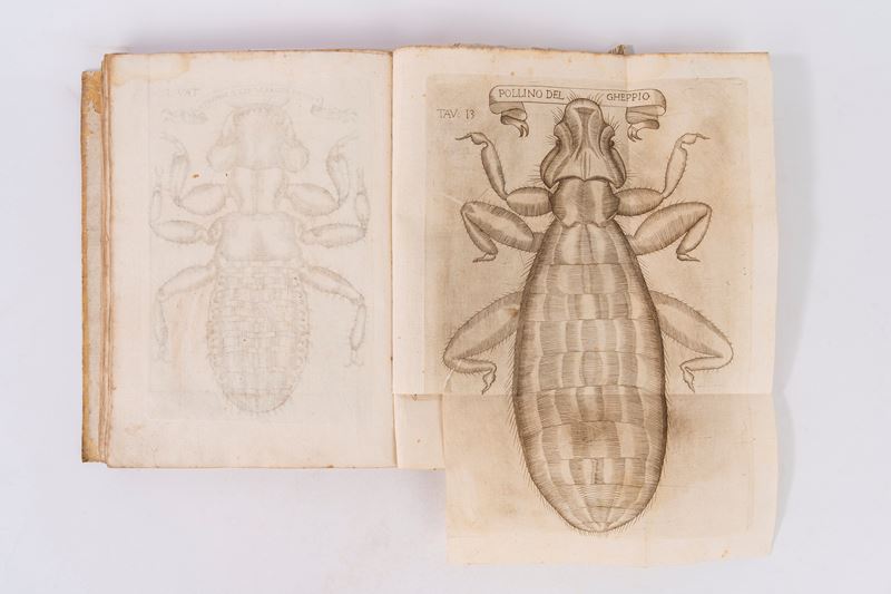 Florence, Francesco Onofri, 1674. In 4°. Half-title, title page with printer's device, with 8 plates and 29 numbered plates (plate 13 with a small tear without loss at the fold, plates 26 and 29 with tears and losses), light foxing, contemporary parchment binding, author's name on the spine, losses on the spine, minor defects.