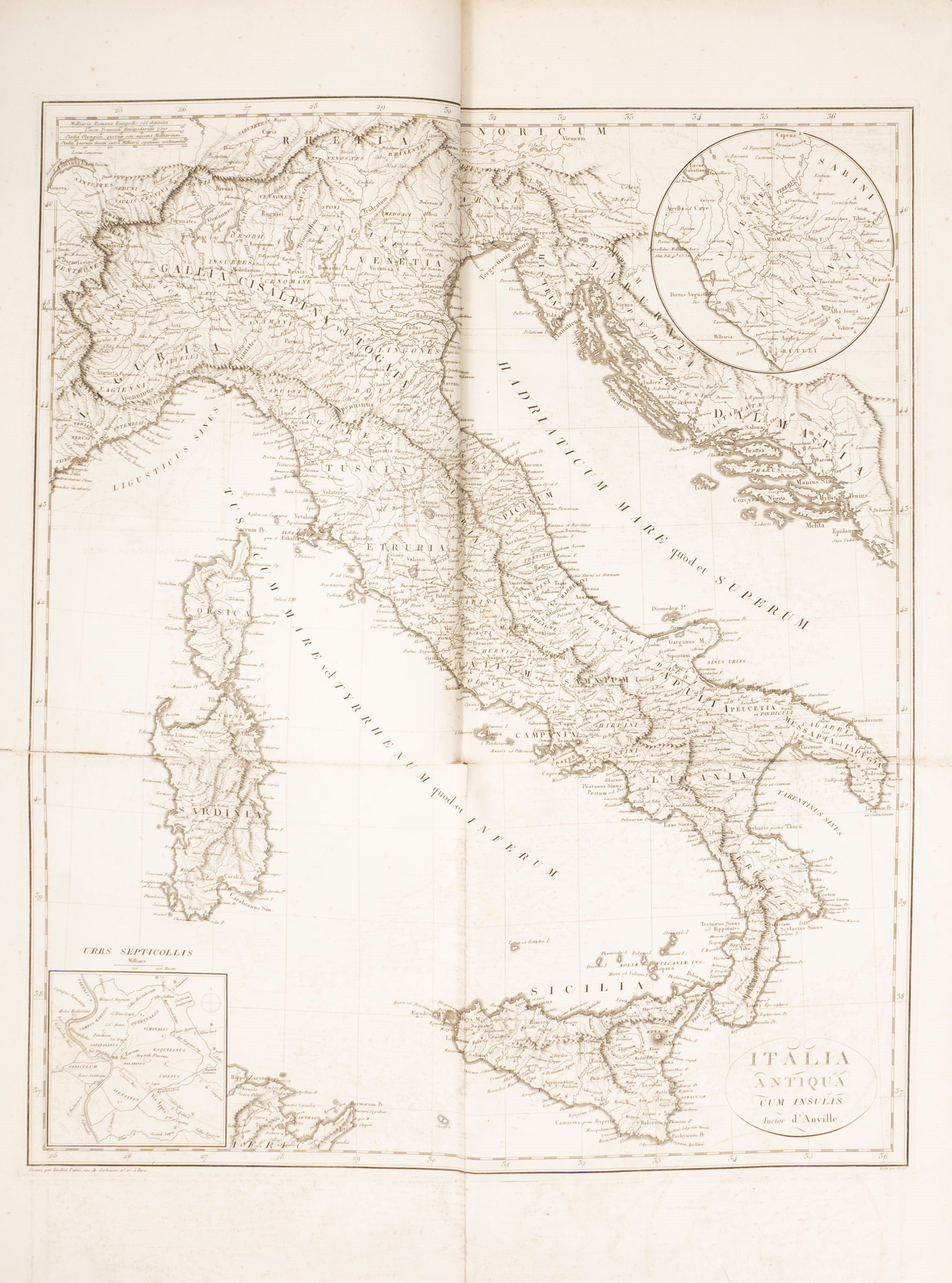 Florence, Piatti, 1810. In 2° (430 x 315 mm); XI, [1] pages. Text in two columns, copper-engraved endpaper, 1 folded map of Italy, 60 copperplates, 2 of which are double-page, 60 copperplates, 2 of which are double-page. Worn title page, some foxing and some staining, half-parchment binding, cardboard back covers.