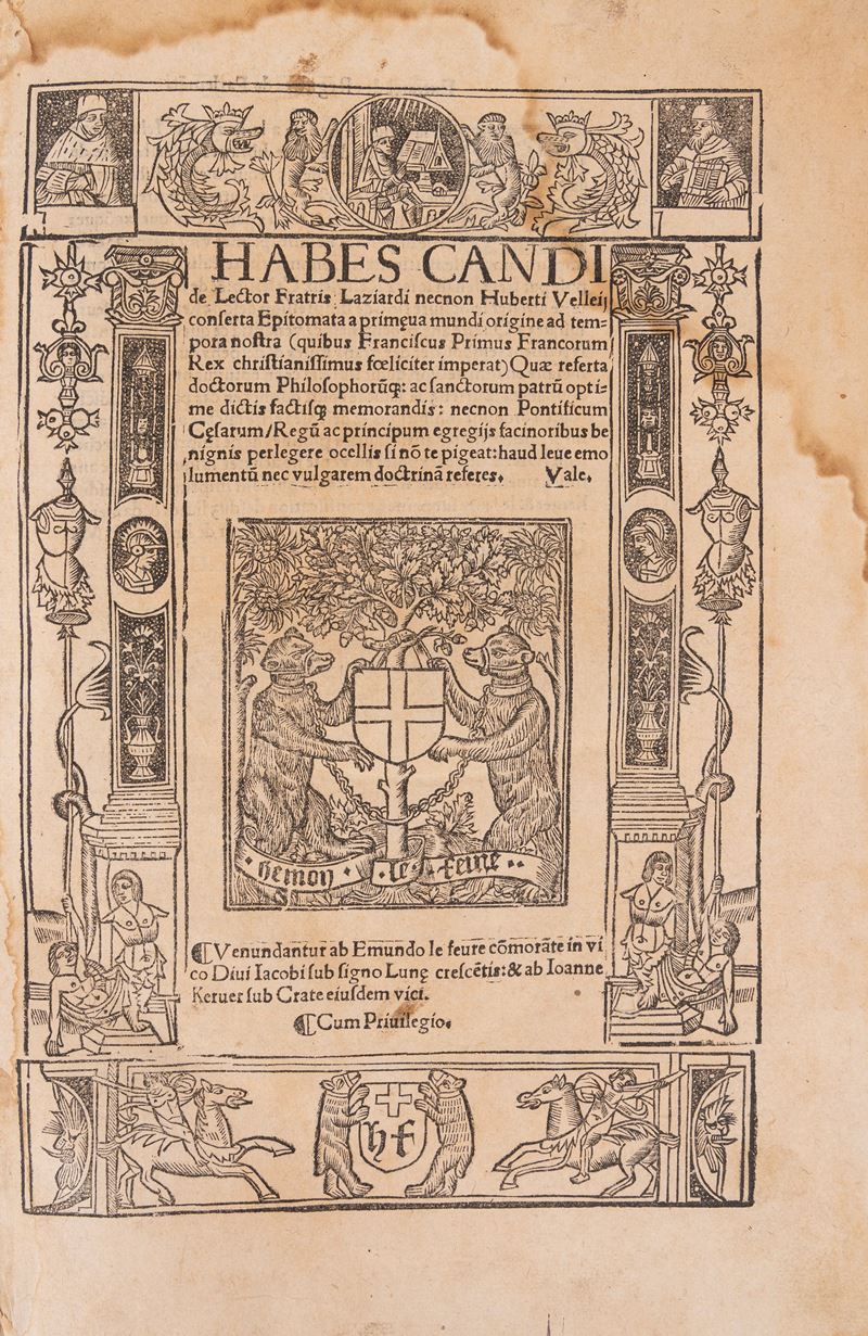 Habes candide Lector Fratris Laziardi necnon Huberti Vellei preserves Epitomata a prim[a]eva mundi origin ad tempora nostra, 1521