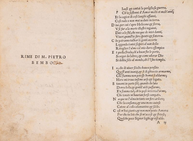 In his Rime , published first in 1530 and then in 1535, Pietro Bembo carried out a significant "refoundation of Petrarchism": the fifteenth-century imitation of Petrarch, which until then had displayed a hybrid, reworked, and often haphazard nature, was overcome in favor of a complete disguise of the Tuscan writer's literary personality. His poetic corpus recounts youthful errors and illusions, a painful and tormented relationship with God, and a spiritual maturity achieved only in adulthood. Bembo thus establishes, in his songbook, an imitation of that historical trajectory of personal intimacy already visible in the fourteenth-century poet's works. The structure of the Rime, which comprises 165 texts, follows the principle of a single model for each genre of literary communication, first discussed in an exchange of letters between 1512 and 1513 with Giovanni Francesco Pico della Mirandola.