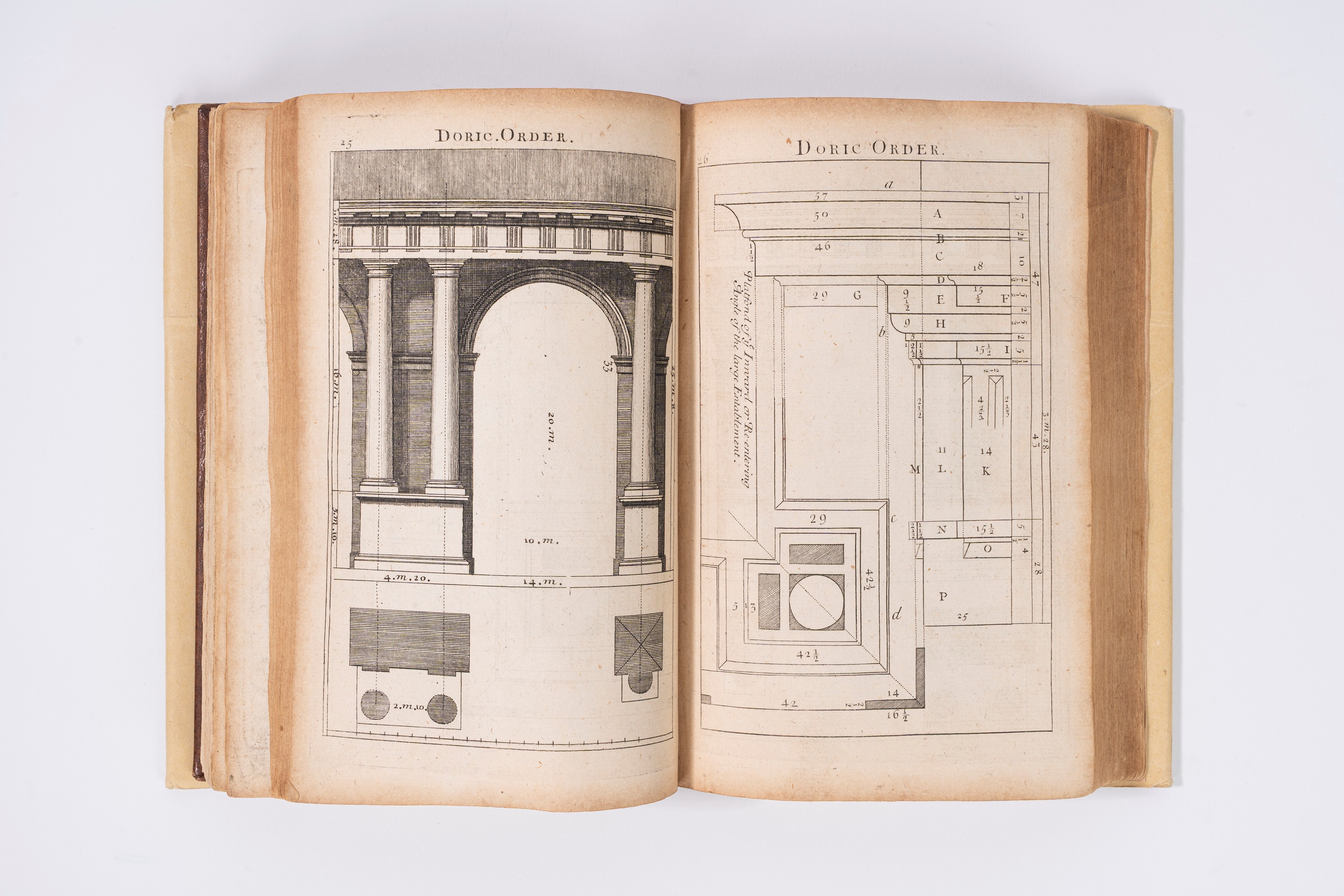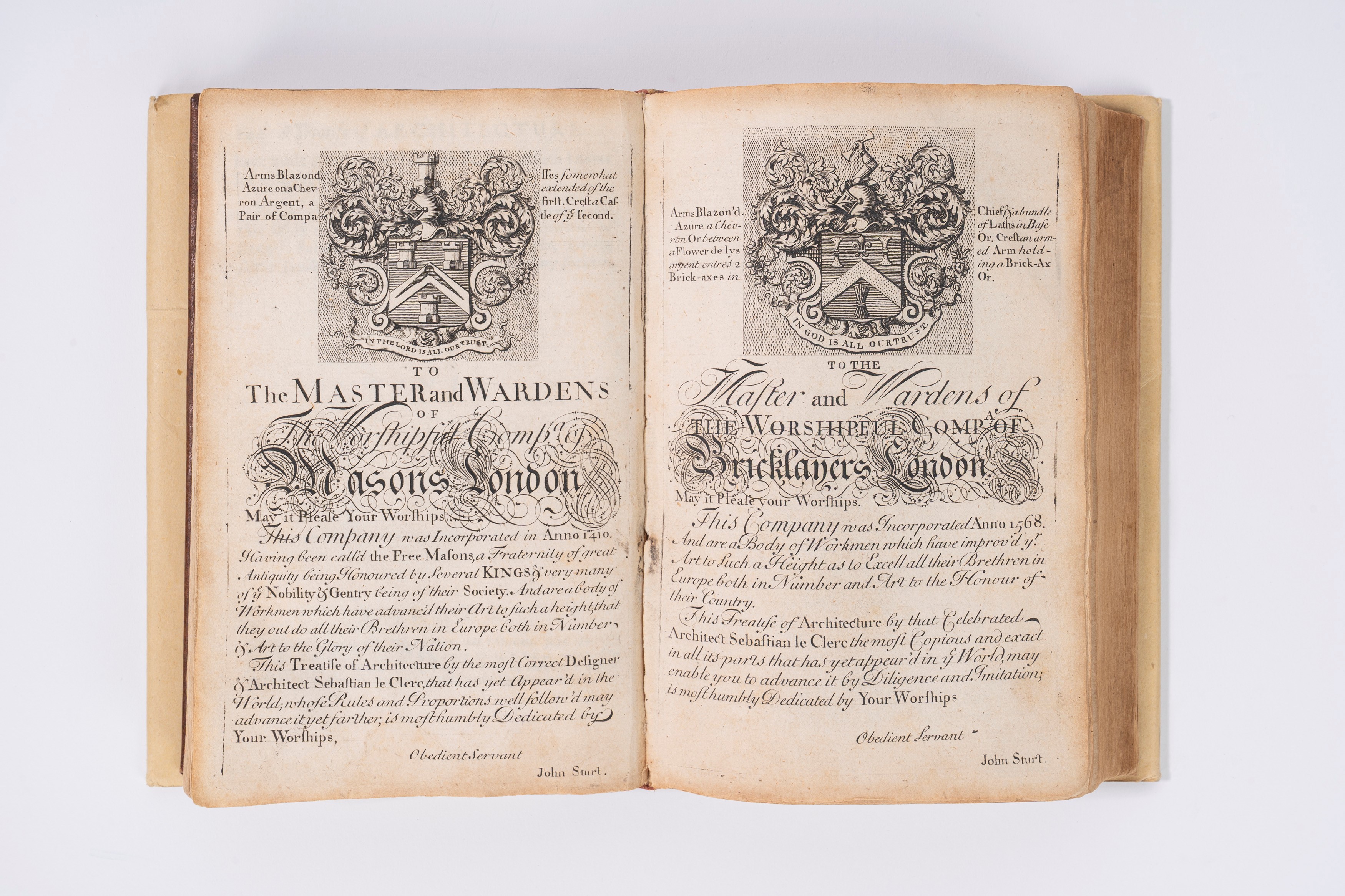 London, 1724. 4vo. Full leather binding. Spine with five raised bands, author and title stamped in gilt. Portrait of Sebastian Le Clerc. Title page with vignette. Headings, initials, and endpapers. The volume includes a section of 181 full-page plates (the numbering includes both 61A and 61B, and 79 is missing). Some marginal tears and light browning.