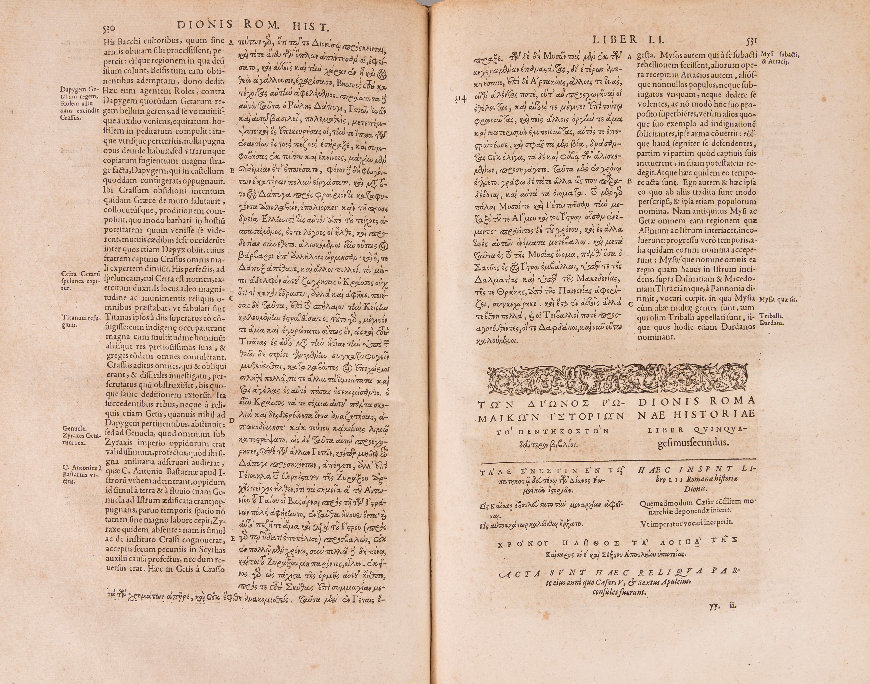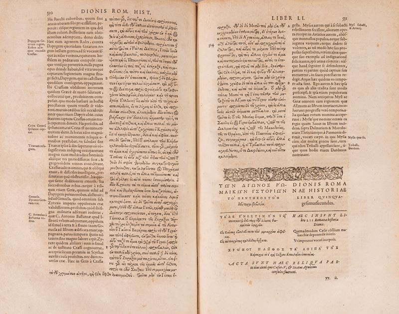 Tōn Diōnos tou Kassiou Rōmaikōn Historiōn biblia pente kai eikosi. Dionis Cassii Romanarum historiarum libri XXV, 1591